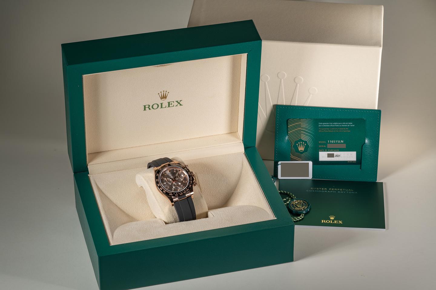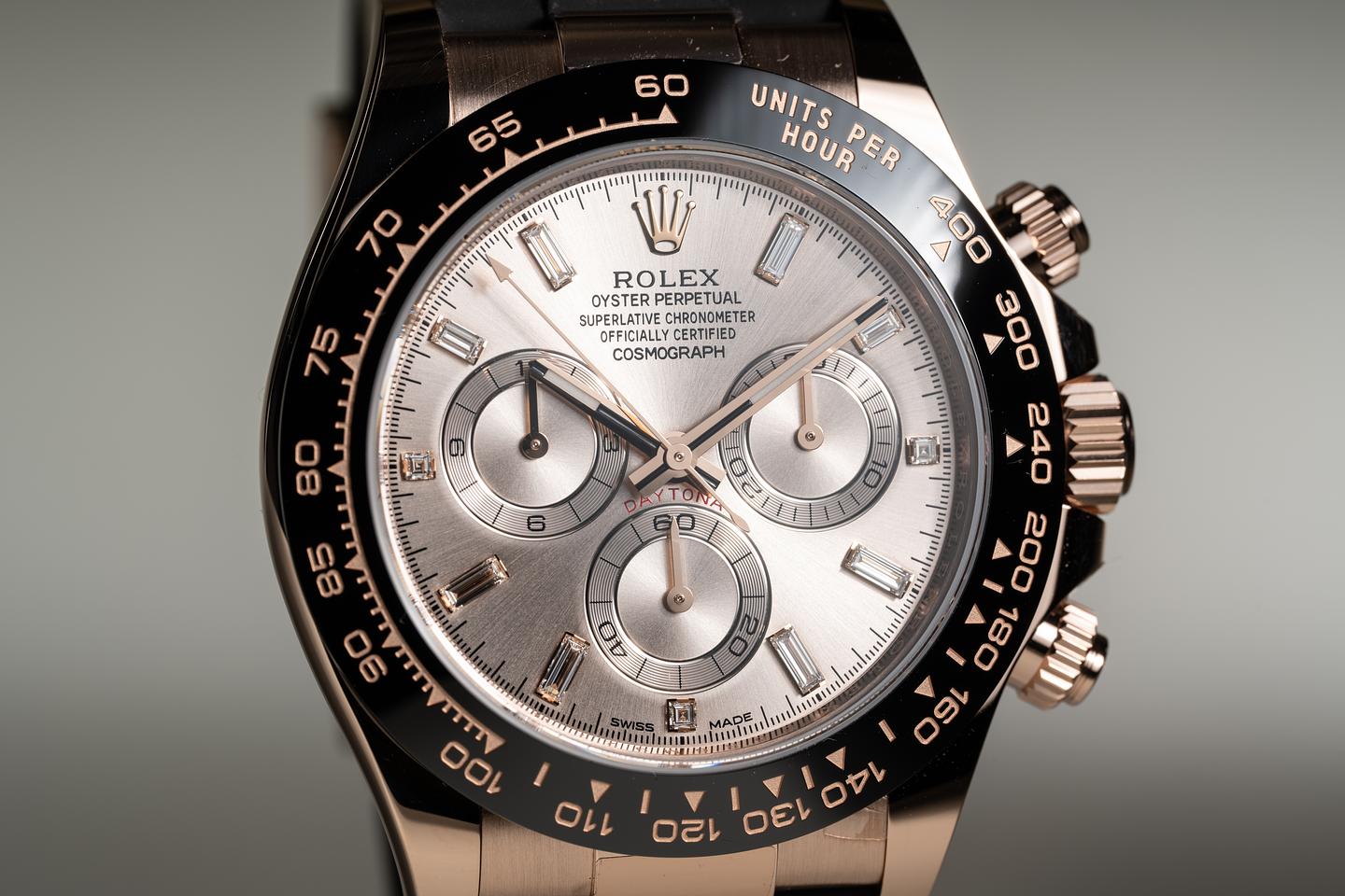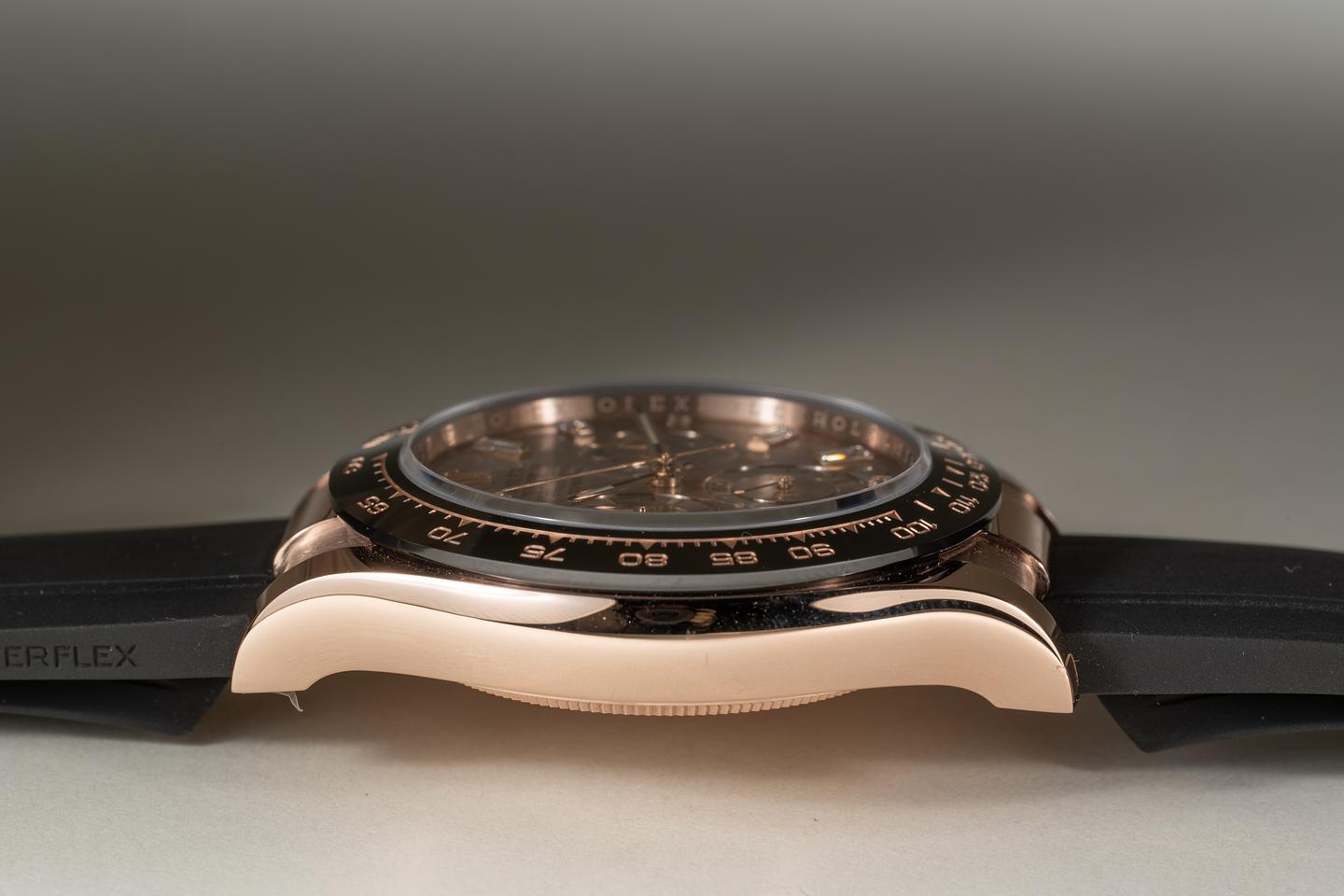 Case: The 18k Everose case is excellent with a few stickers still on the case. The black ceramic bezel is also in excellent condition showing no visible wear.