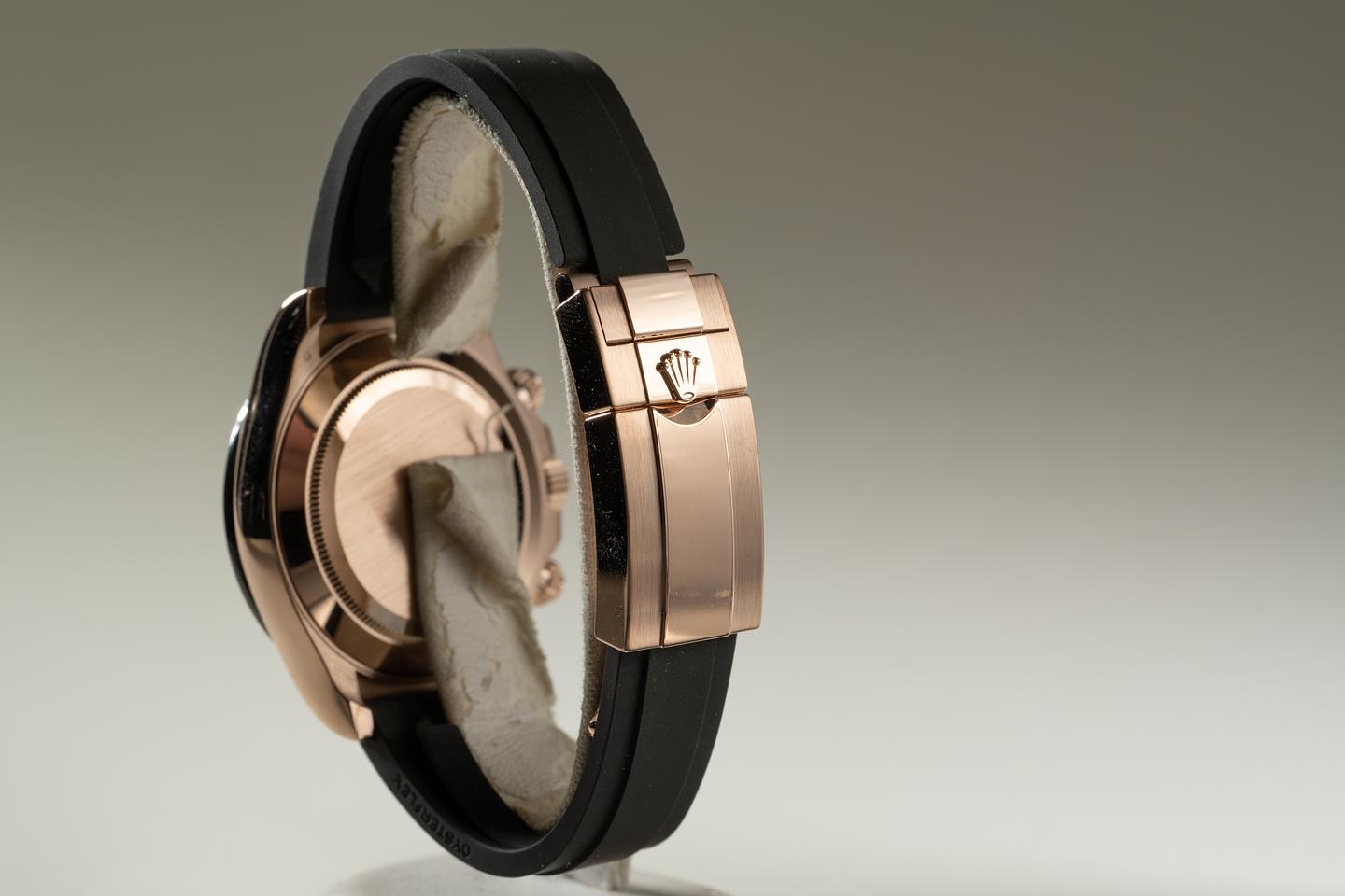 Bracelet: The black Oysterflex bracelet is excellent showing only very light wear. The 18k everose clasp is also in excellent condition showing only very light wear.