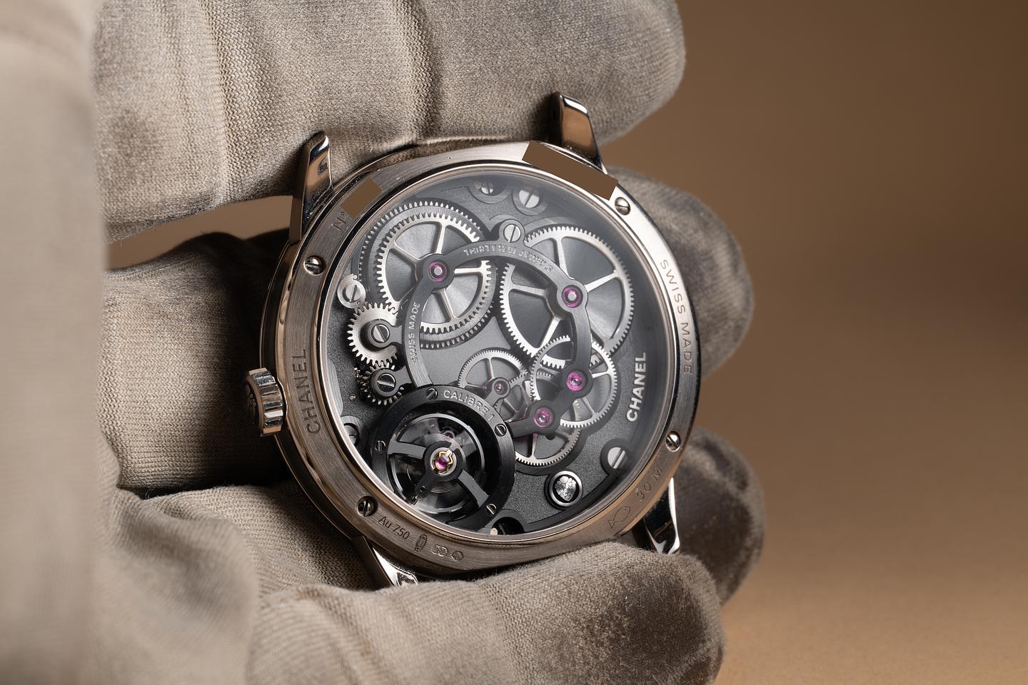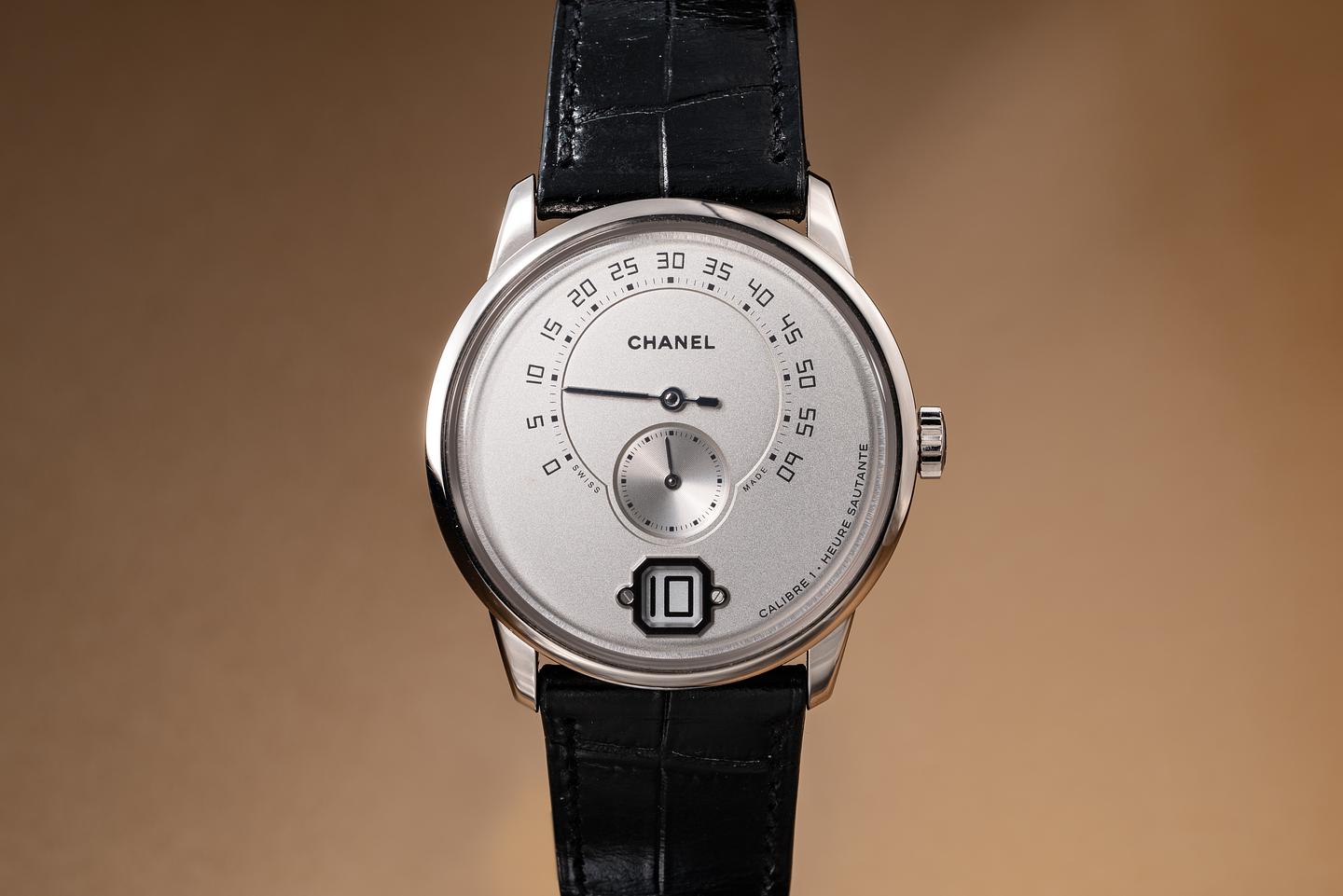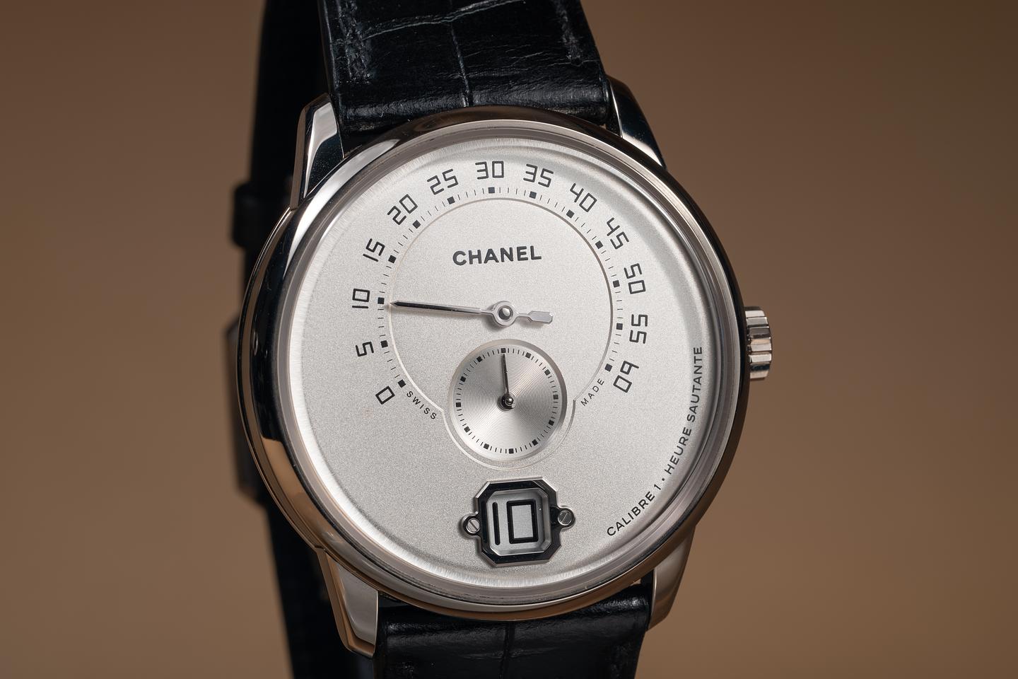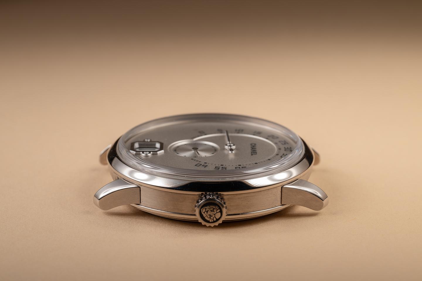 Bracelet: The Chanel alligator-pattern calfskin strap is excellent, showing only light wear from use. The 18K white gold Chanel deployant buckle is also in excellent condition, showing only very light wear from use.