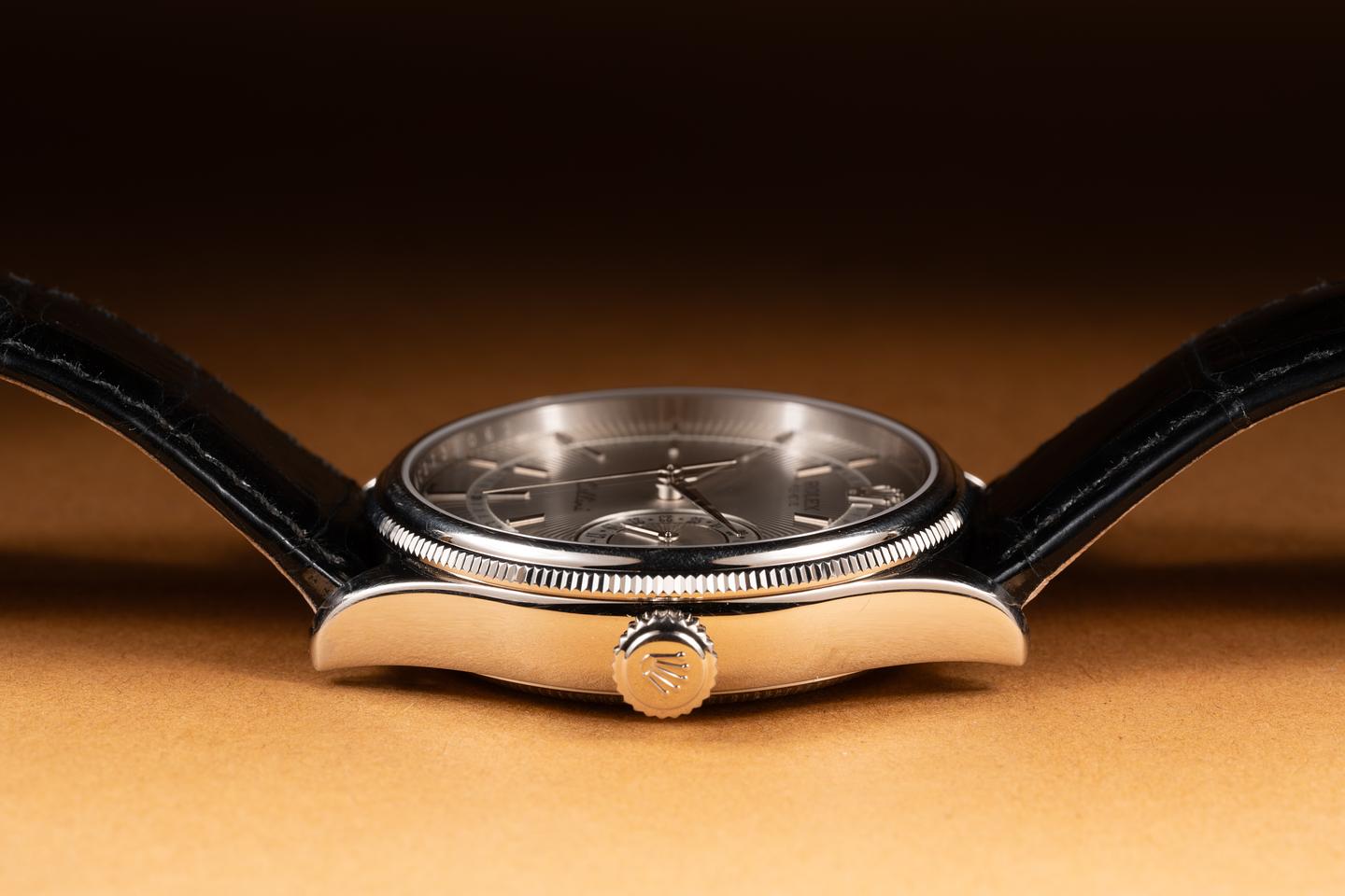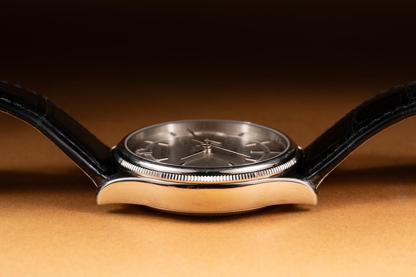 Bracelet: The black Rolex alligator strap is excellent showing some light wear from use.
