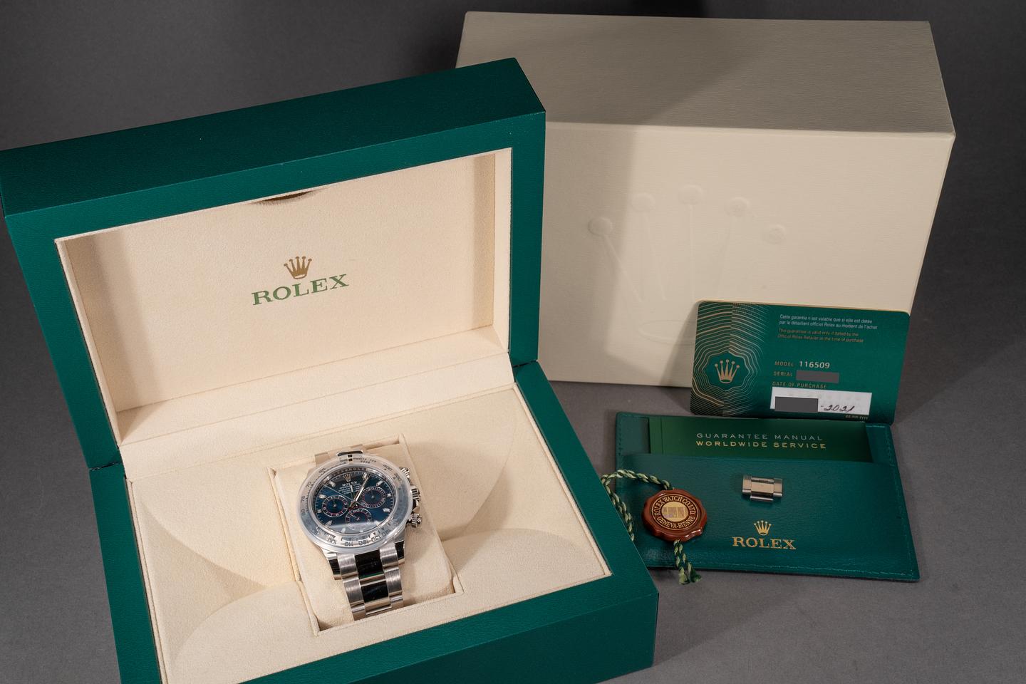 Bracelet: The 12.5 link 18k white gold Oyster bracelet is excellent showing no perceivable stretch.