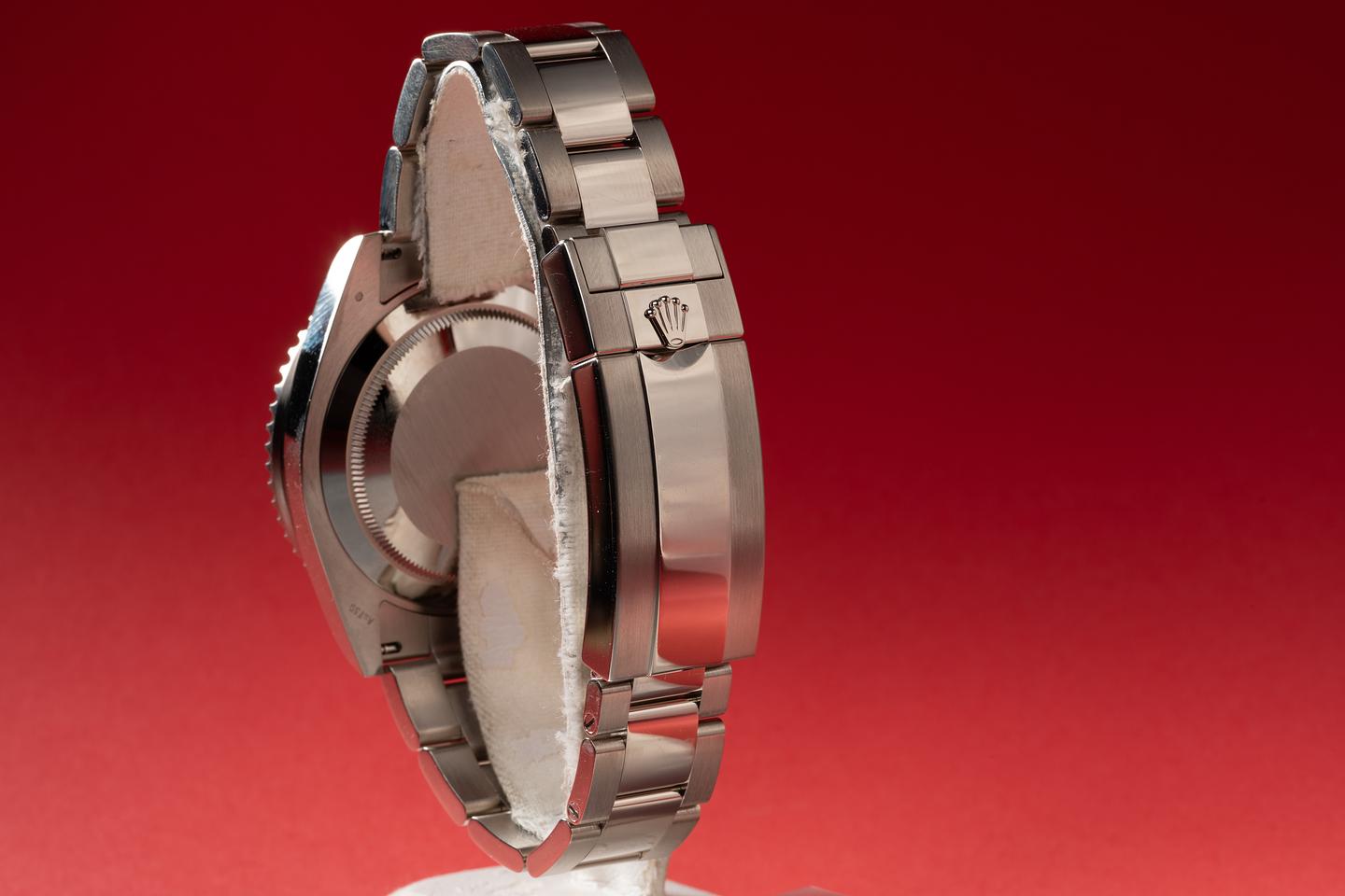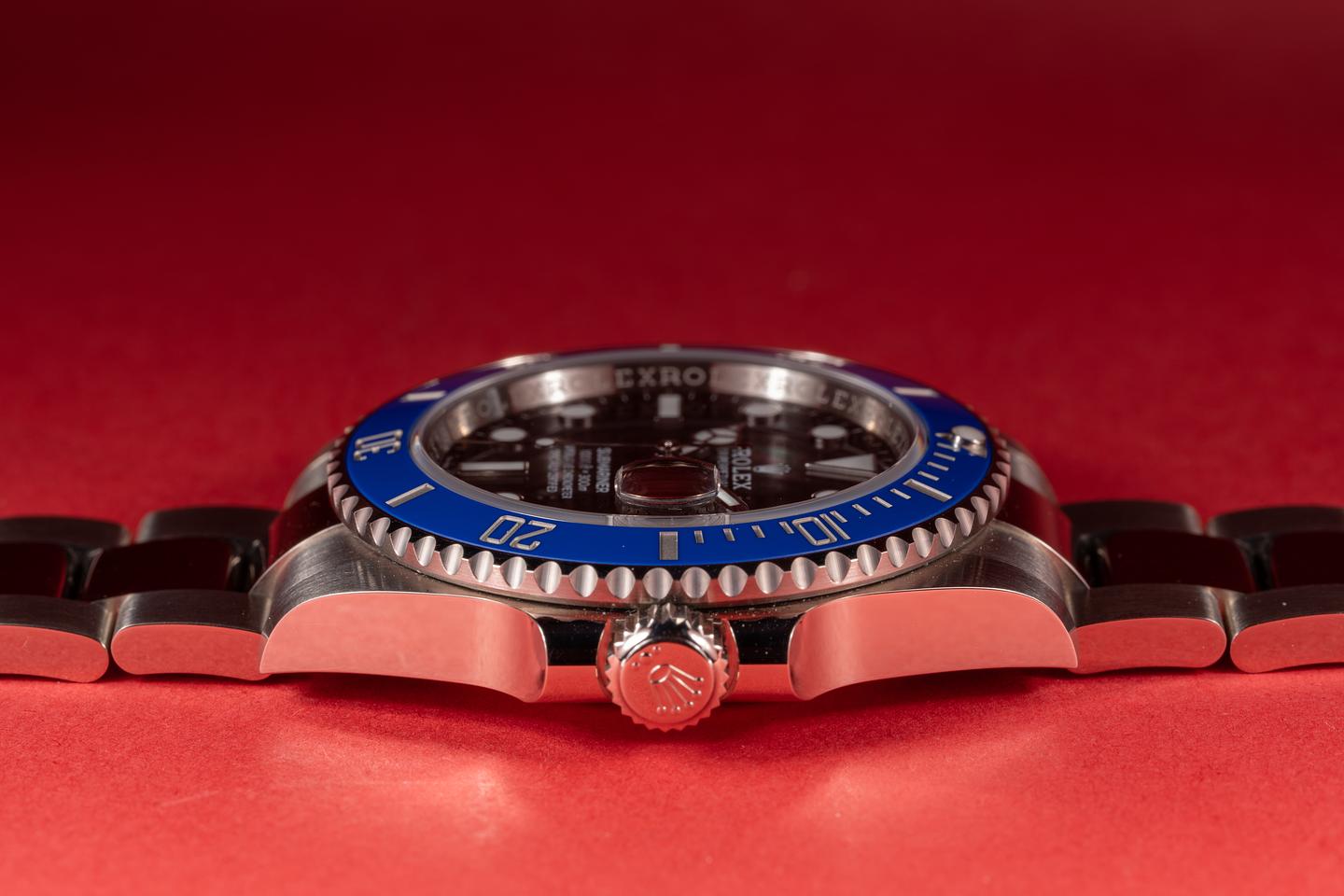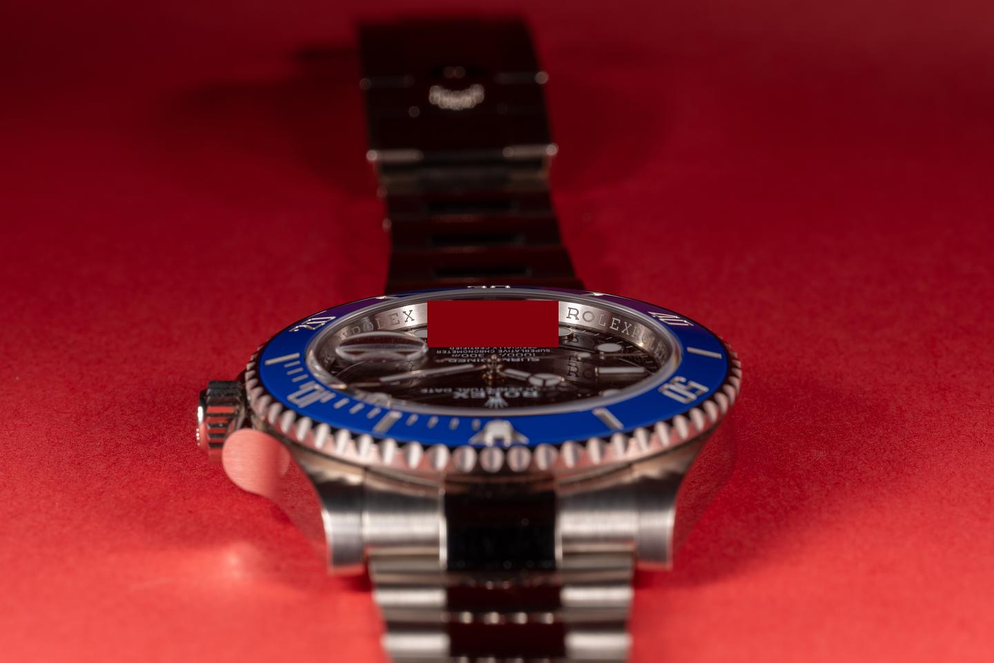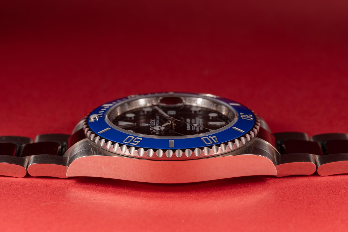 Case: The thick and even case is excellent showing only very light wear from use. The blue ceramic bezel is also in excellent condition showing only very light wear from use.