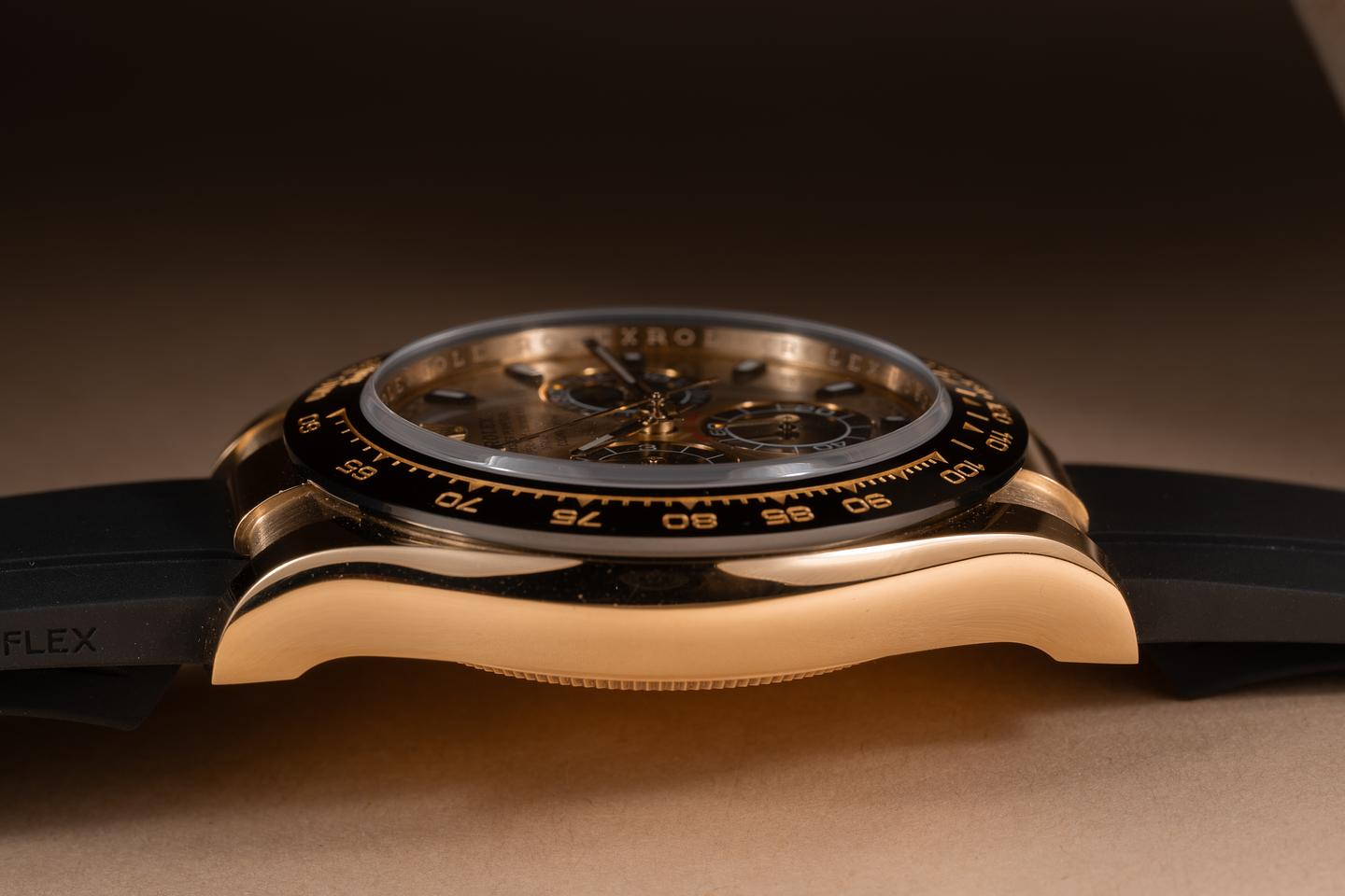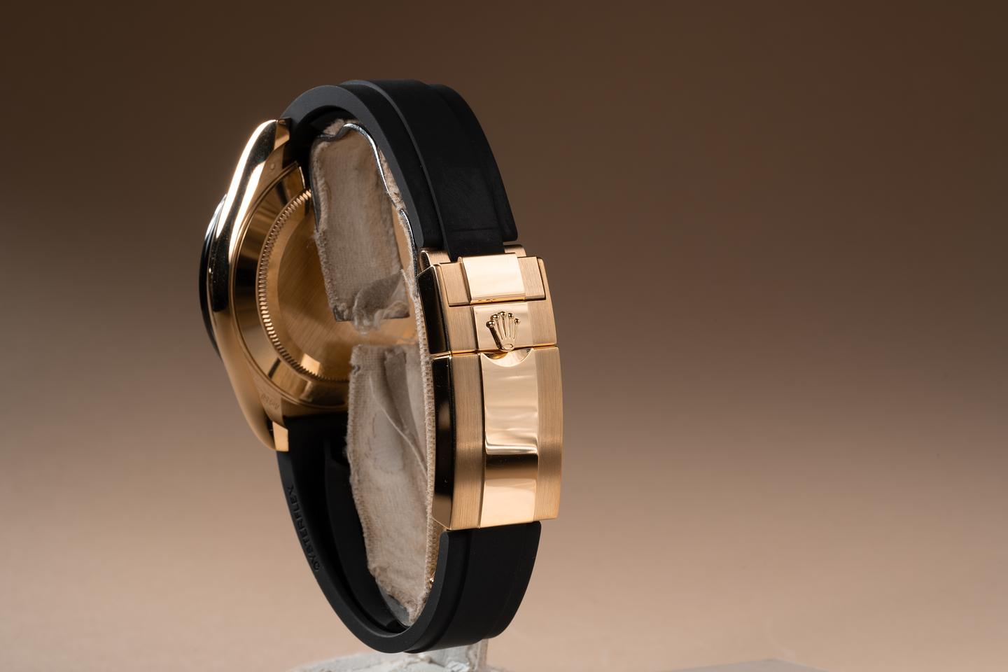 Case: The 18k yellow gold case is excellent showing only very light wear from use. The black ceramic bezel is also in excellent condition showing no visible wear.