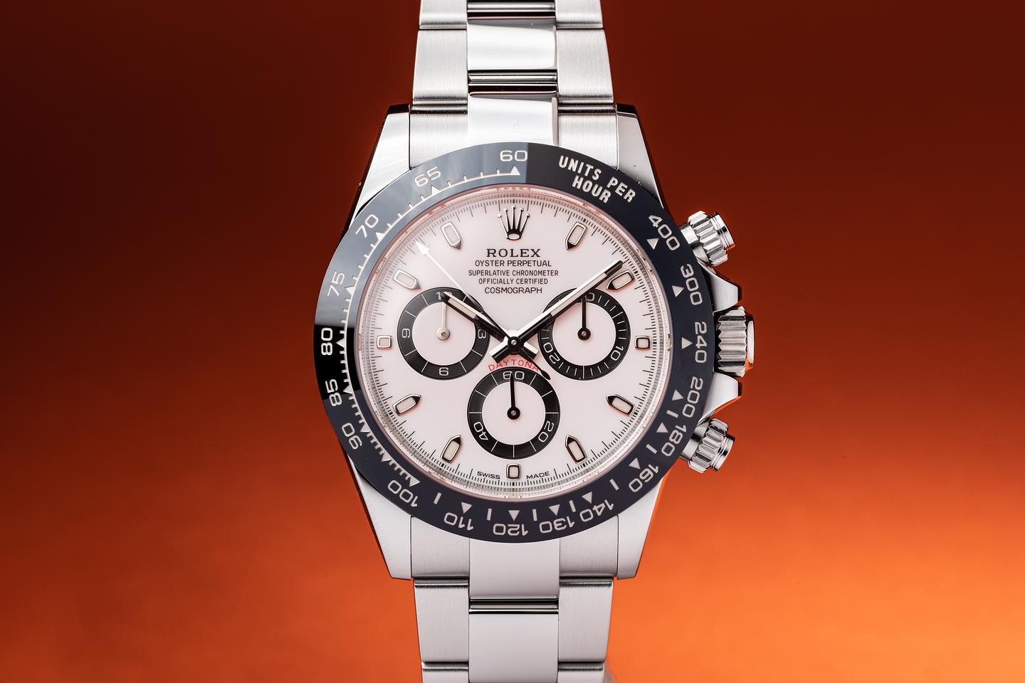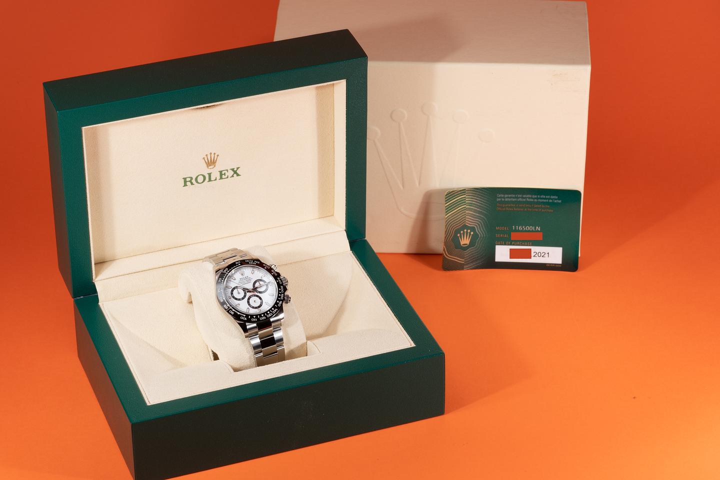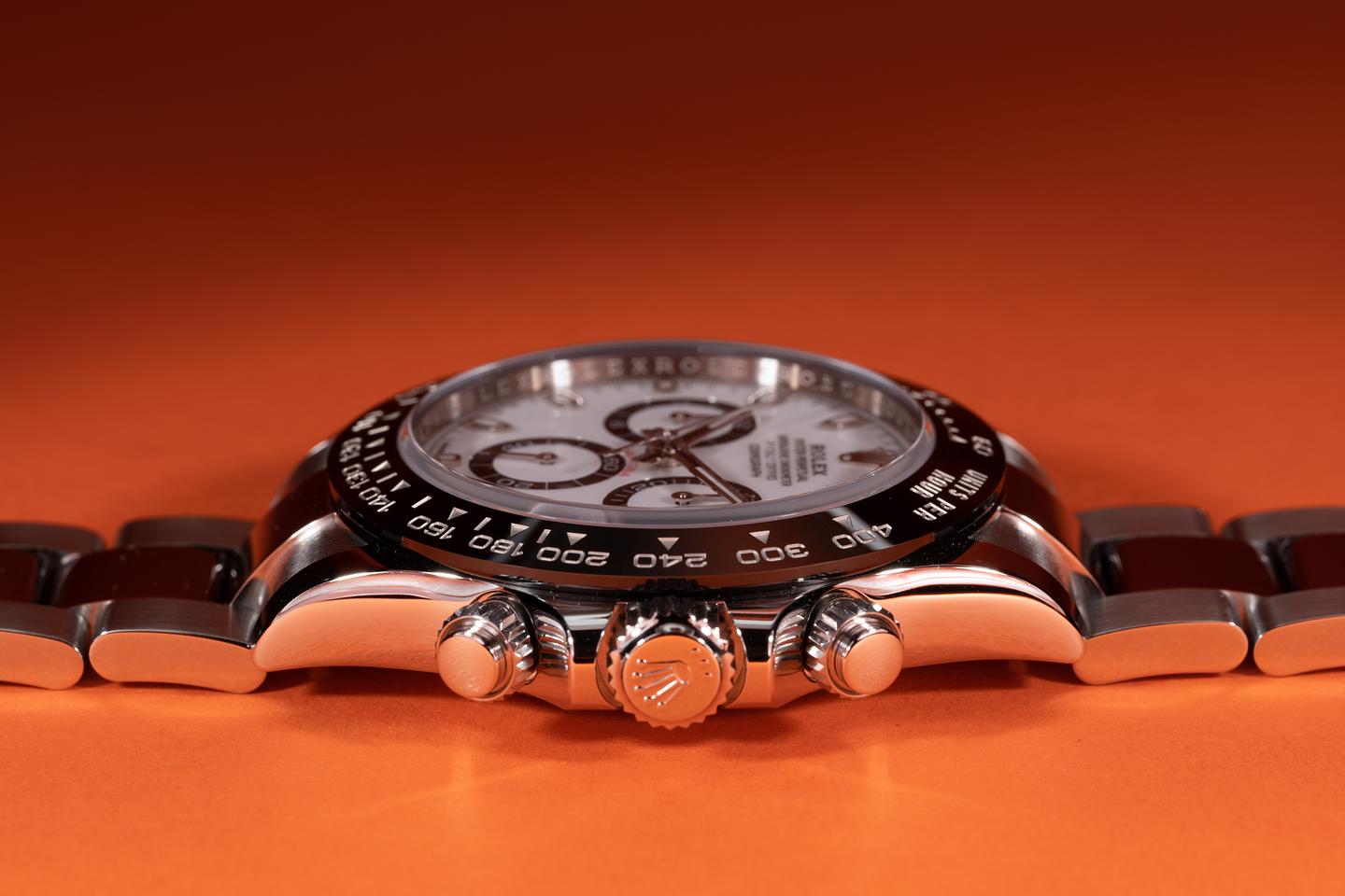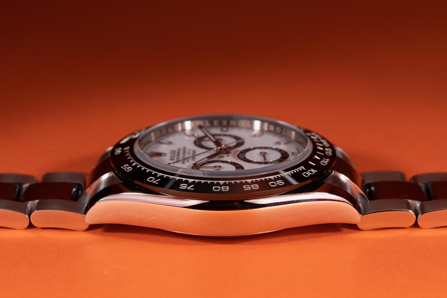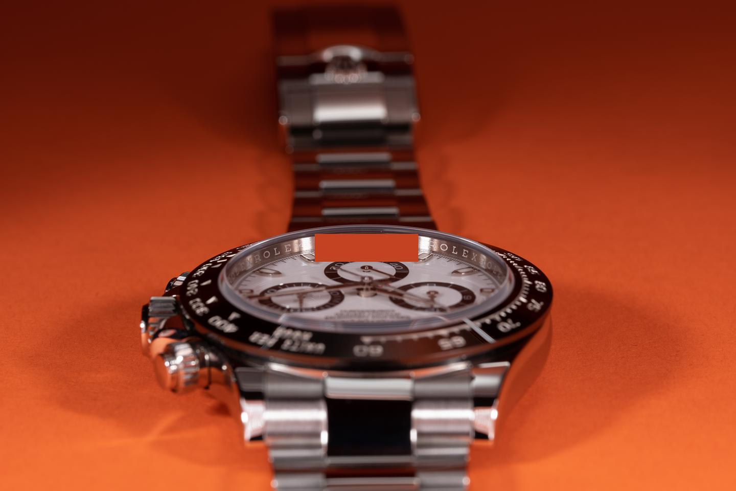 Case: The case appears to be unworn showing only extremely light shop wear. The black Cerachrom bezel is mint showing no visible wear.