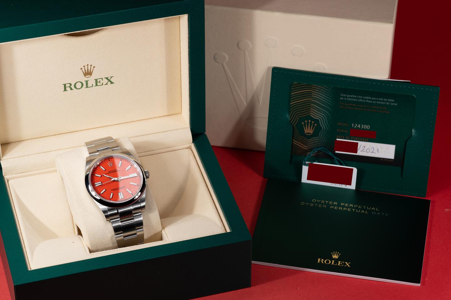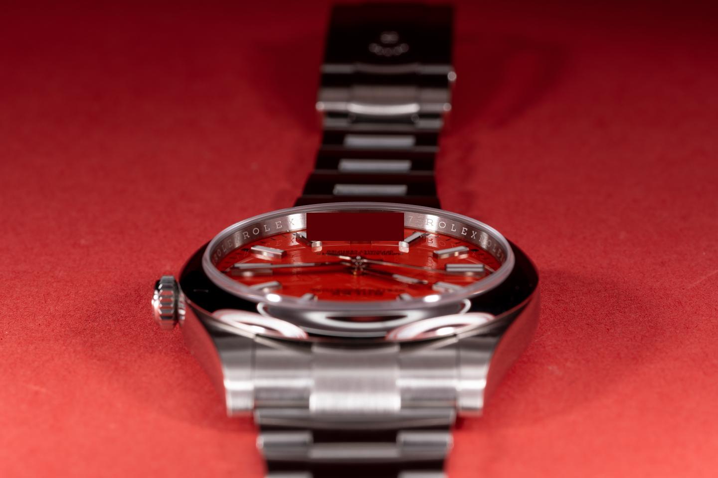 Dial: The coral red dial is mint and the original factory hands are matching.