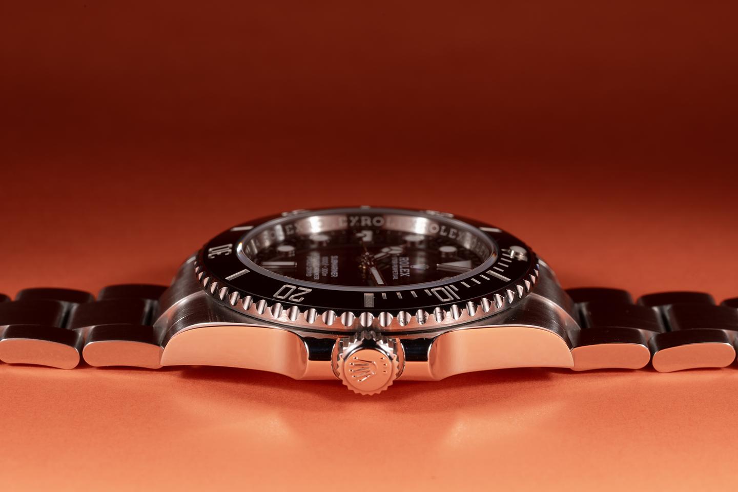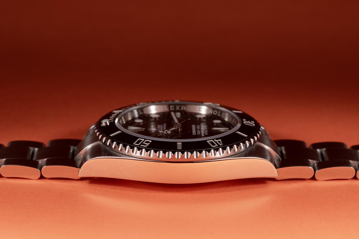 Case: The thick case is excellent showing only light wear from use.The black ceramic bezel is also in excellent condition showing no visible wear.