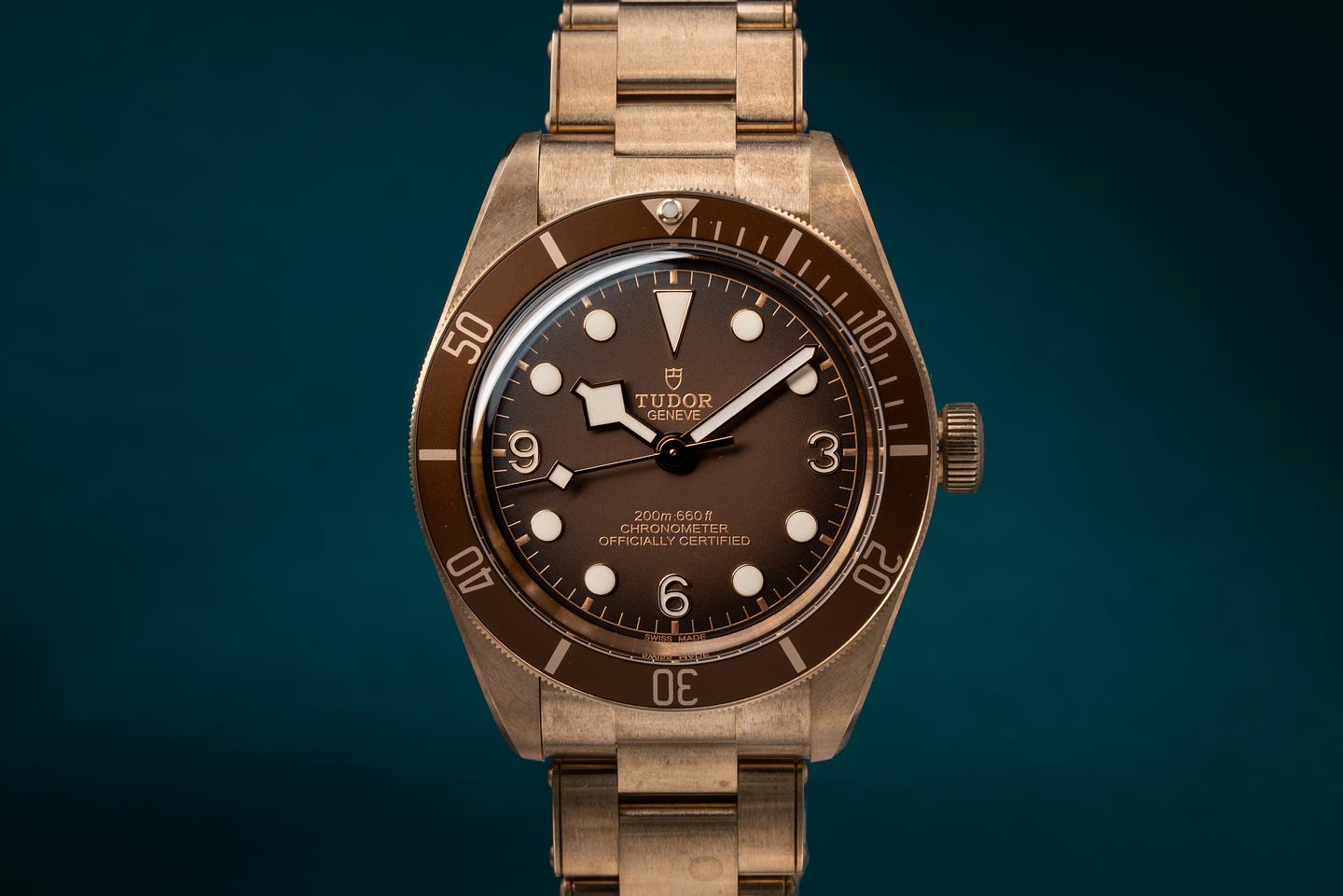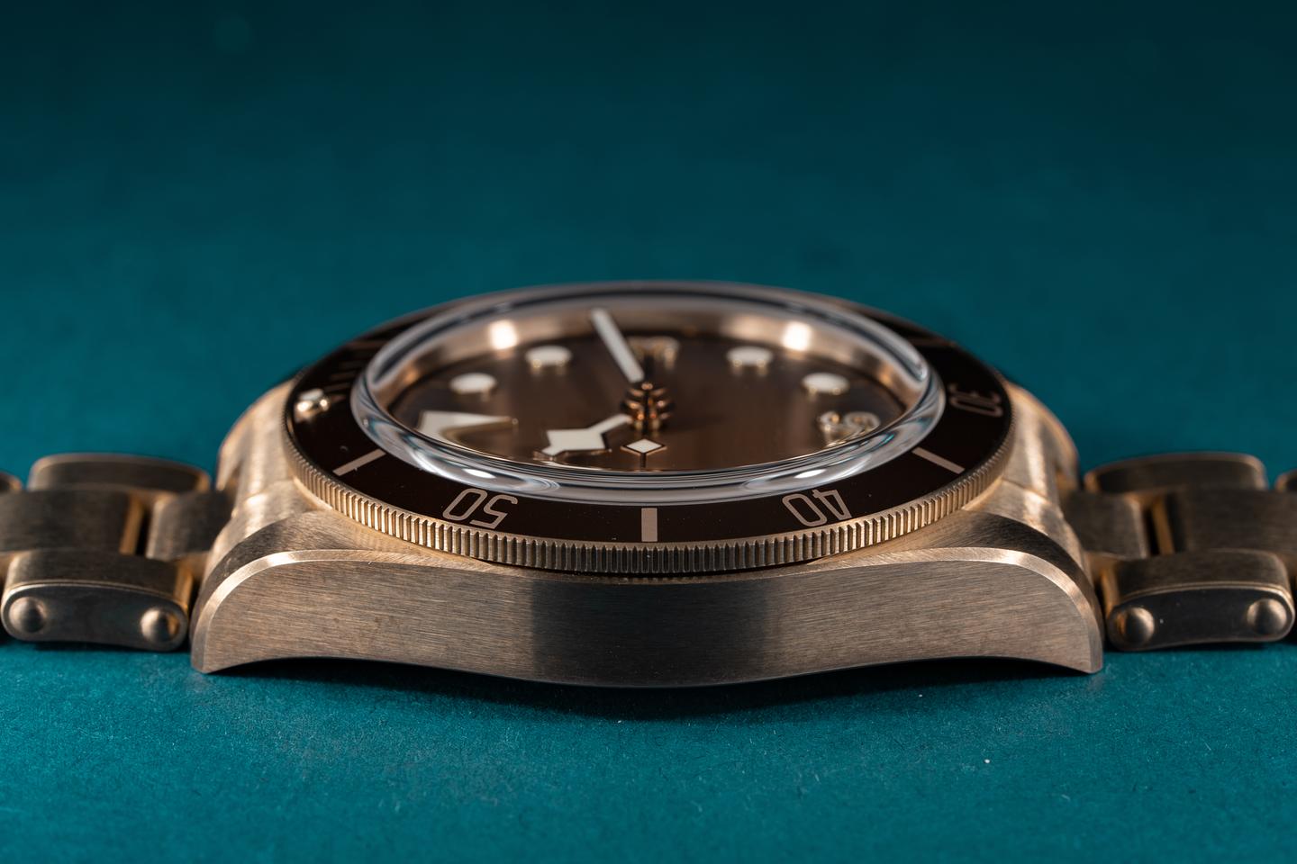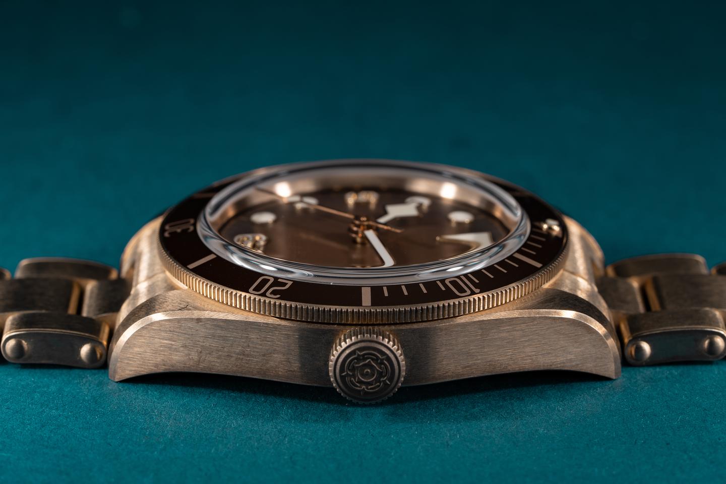 Case: The bronze case is excellent showing prominent factory bevels and only very light wear from use. The brown bezel insert is also in excellent condition showing only extremely light wear.