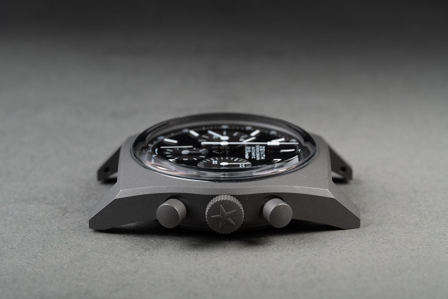Case: The 37mm matte black titanium case is excellent showing sharp beveling and overall only light were from use. There is a small scratch on the case at the base of the 1 o'clock lug.