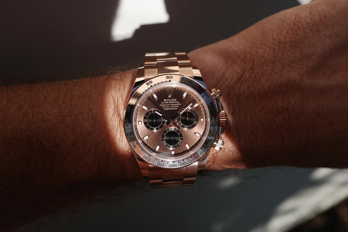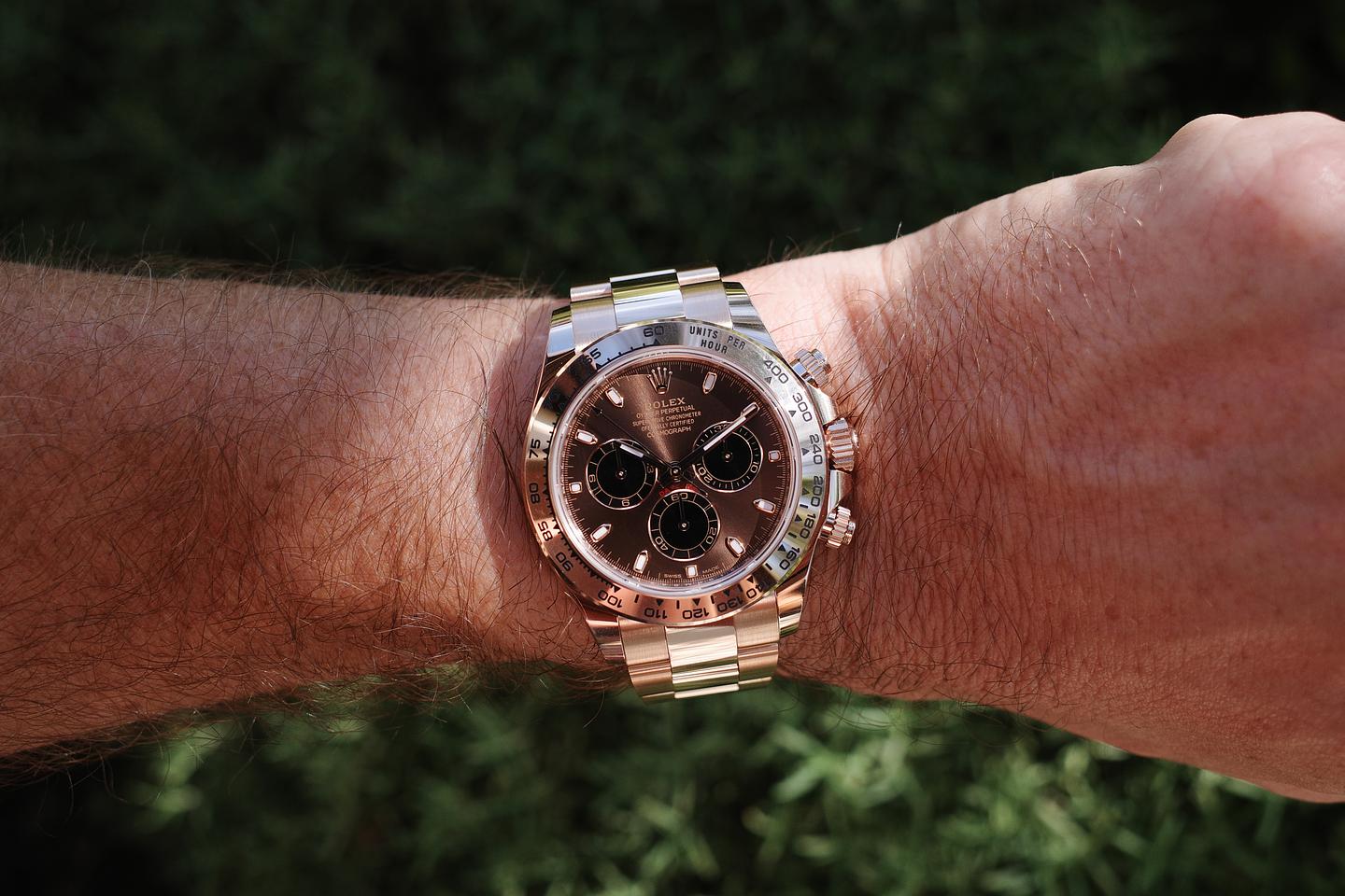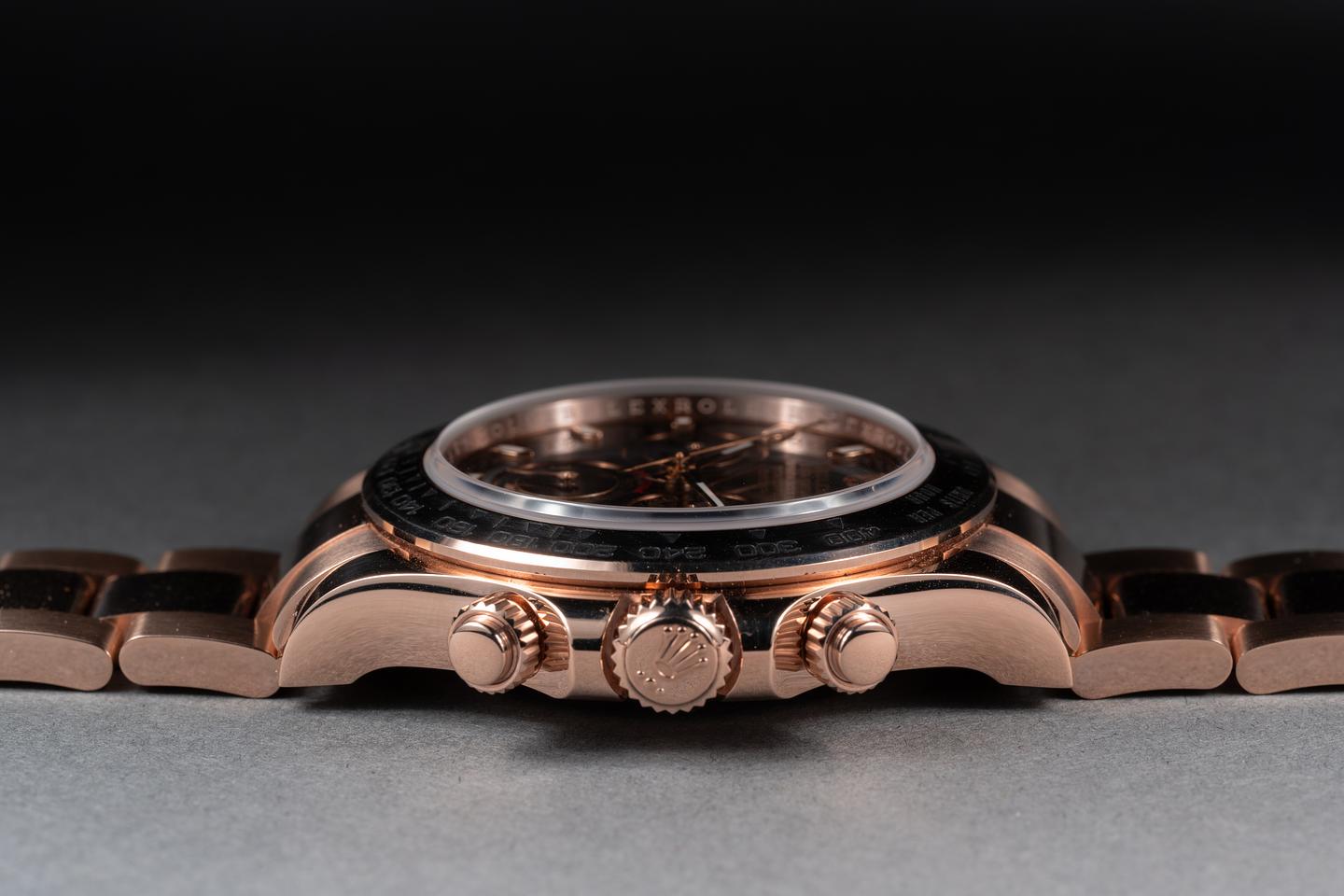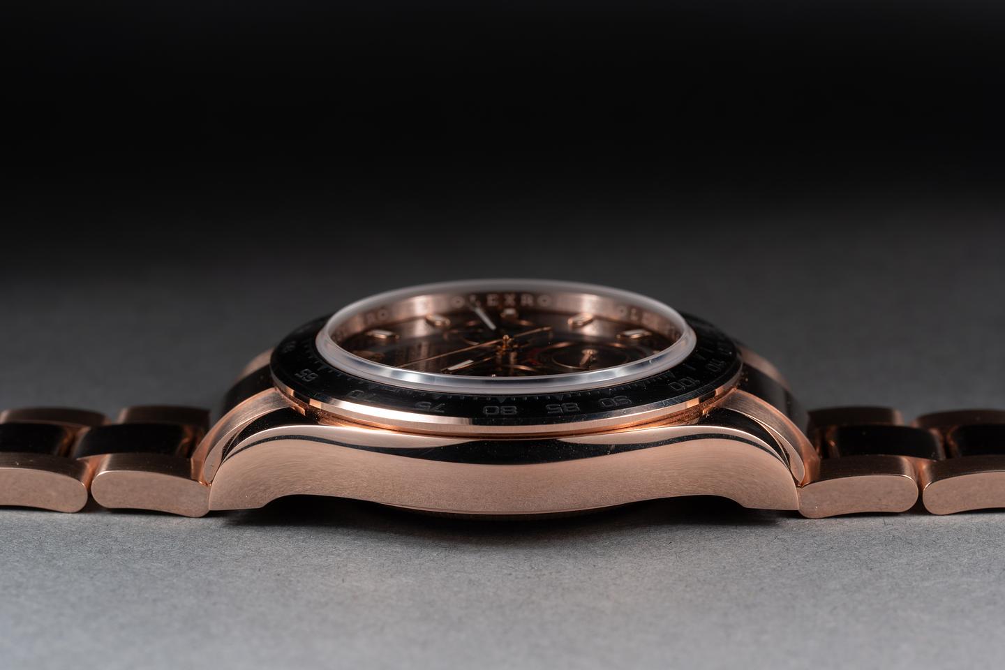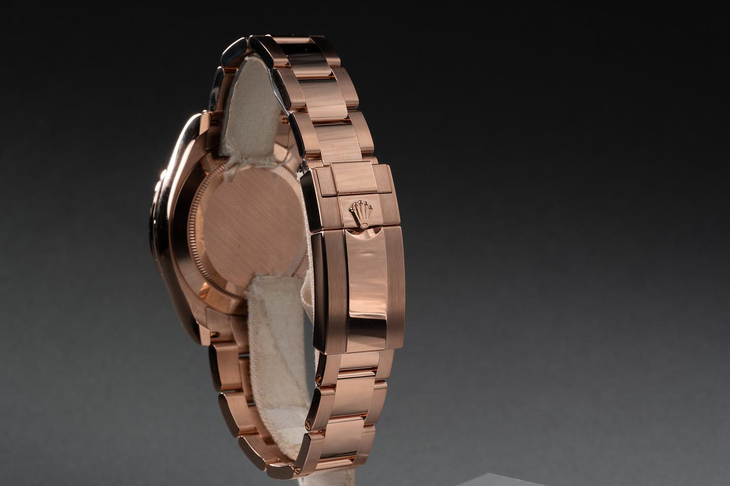 Case: The 18k everose gold case is excellent showing only very light wear from use. The 18k everose bezel is excellent showing only very light wear from use.