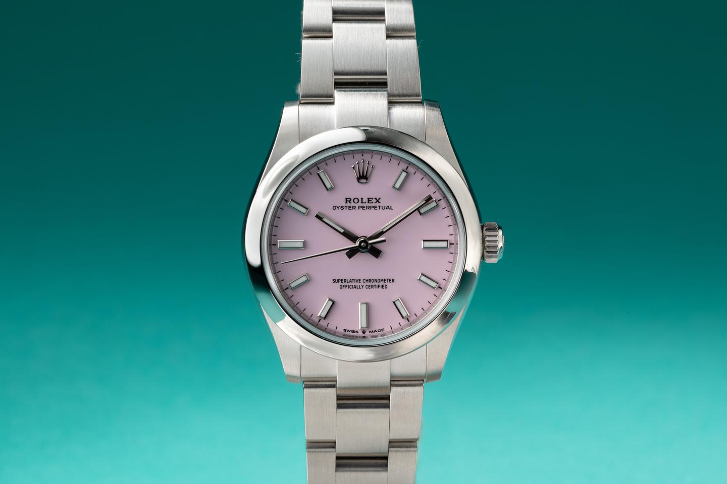 Dial: The candy pink dial is mint and the original factory hands are matching.
