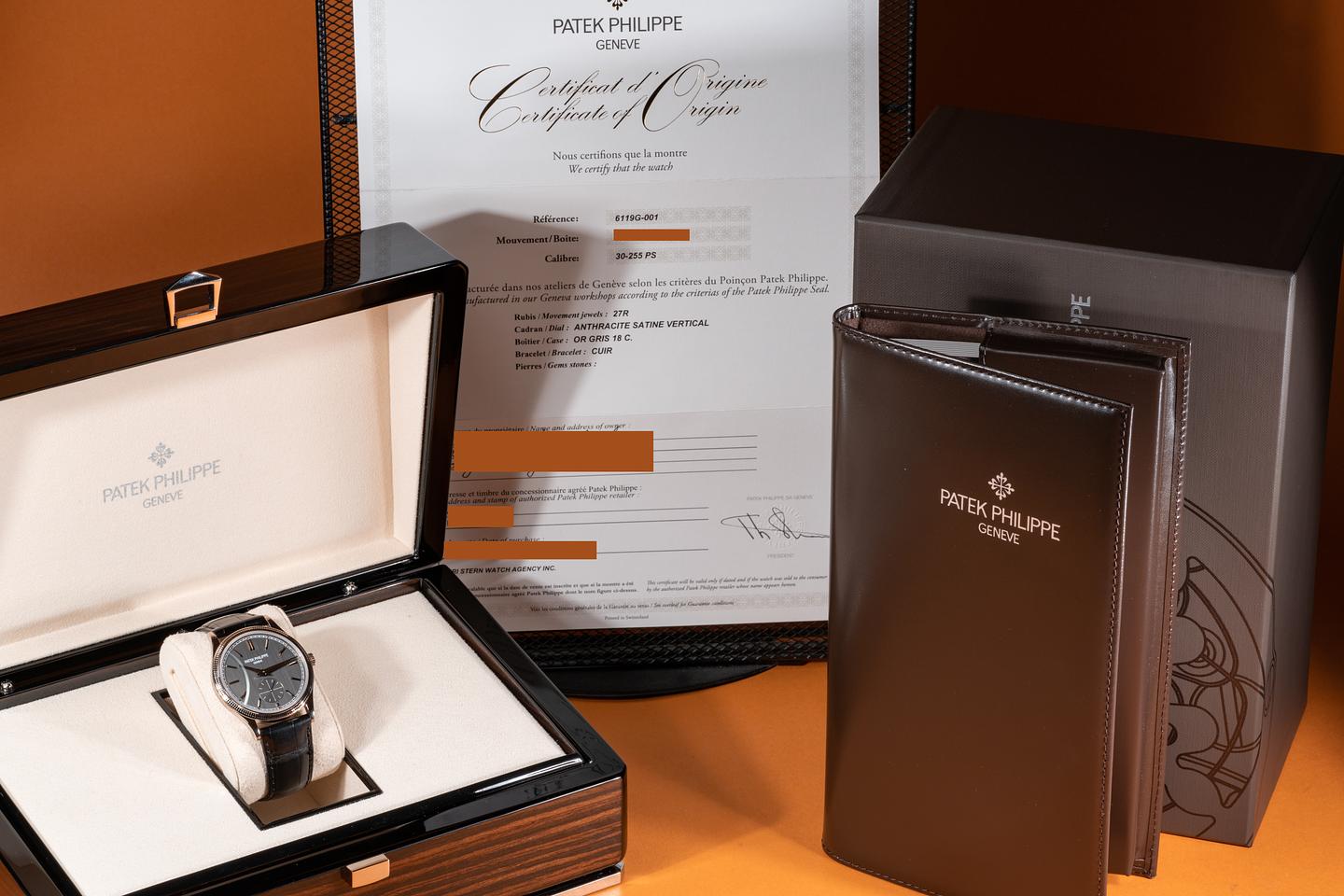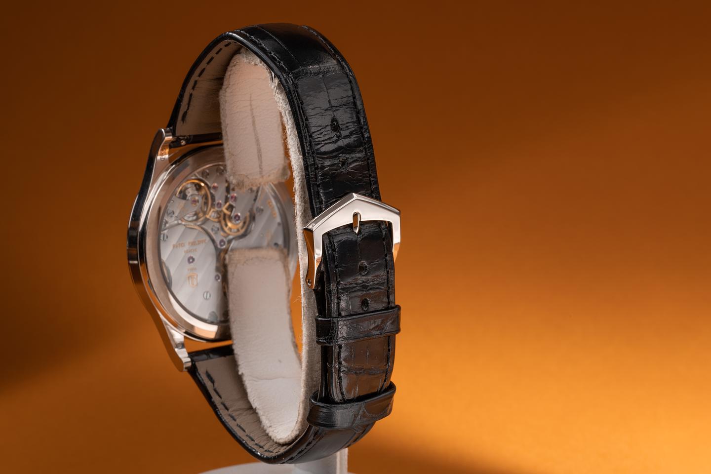 Bracelet: The Patek black leather alligator strap is excellent showing some light wear from use.