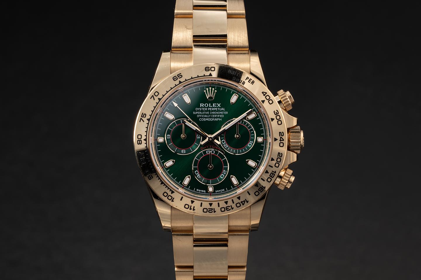 Dial: The green dial is excellent, showing no visible wear. The original factory hands are matching.