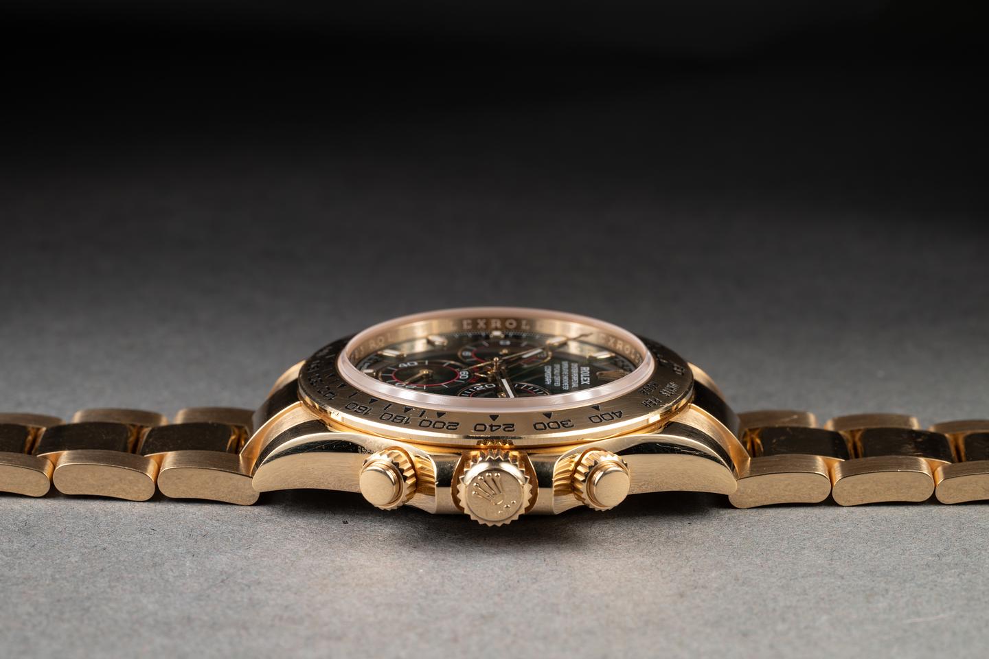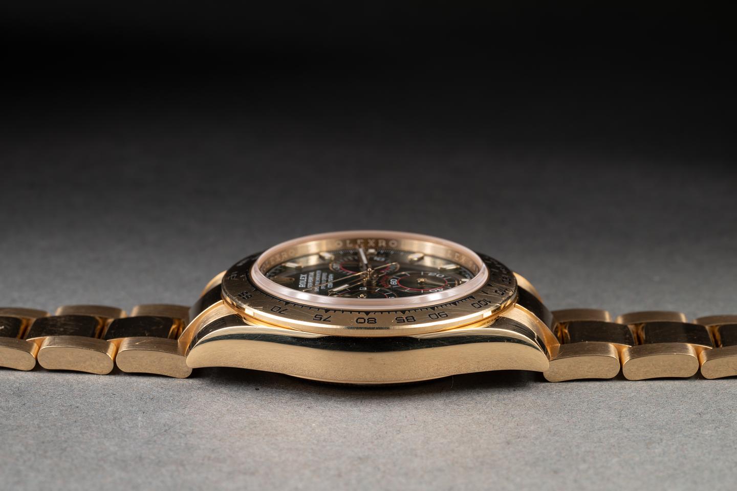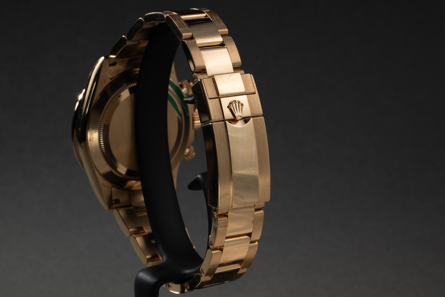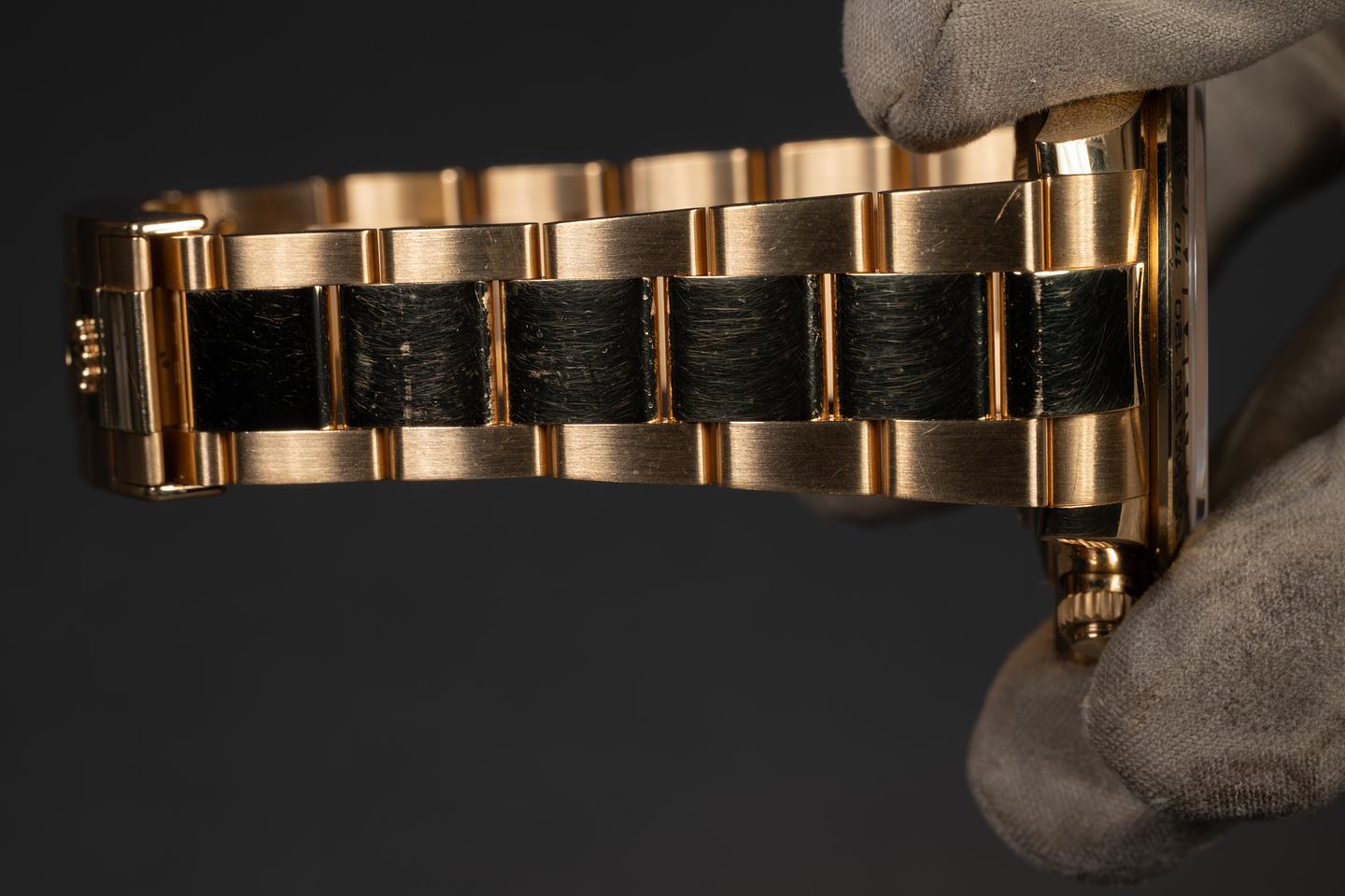 Case: The unpolished 18K yellow gold case is excellent, showing some light wear from use. The unpolished 18K yellow gold bezel is also in excellent condition, showing some light wear and dings from use. Think John Mayer after the Tour is over vibe.
