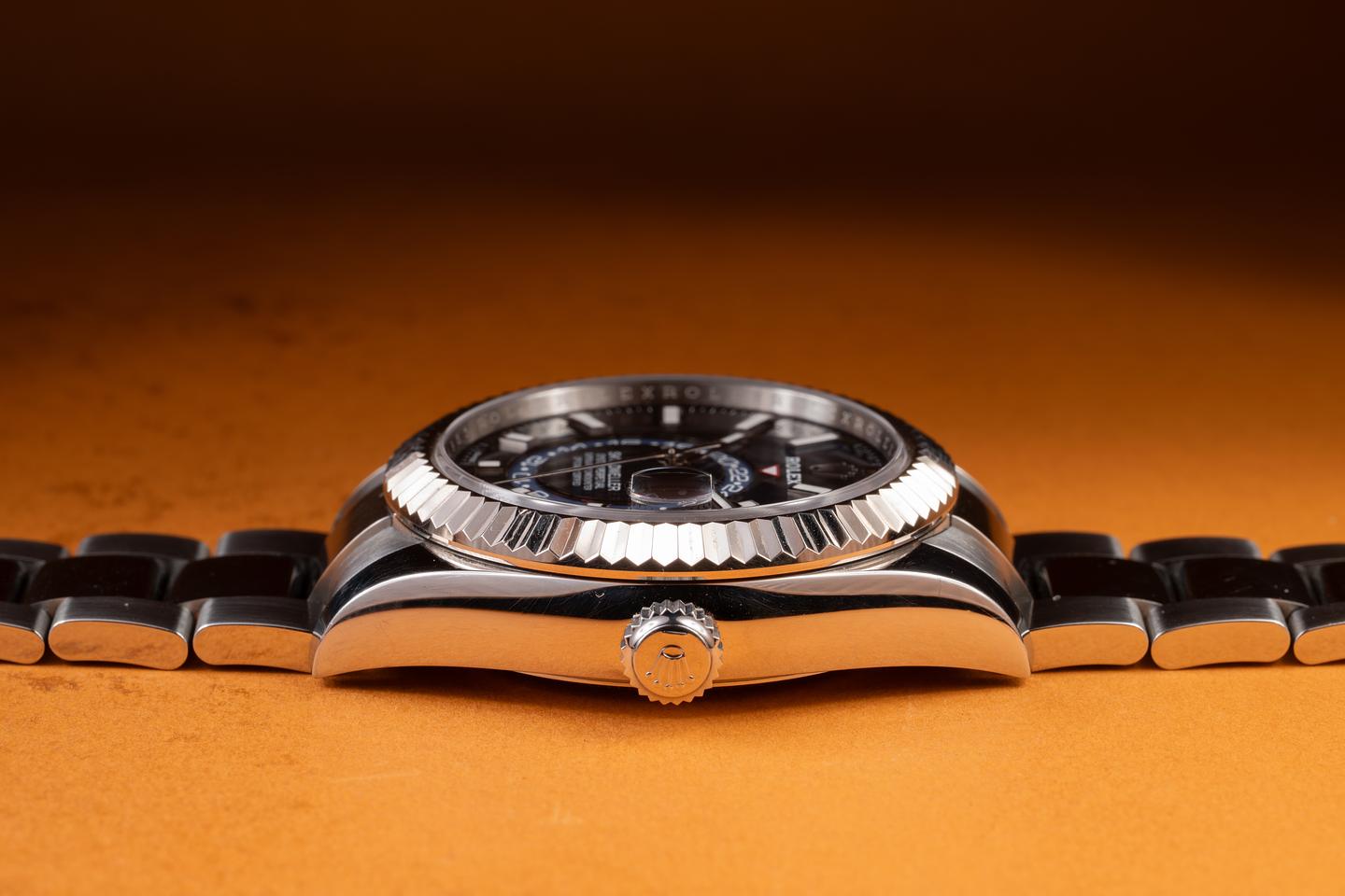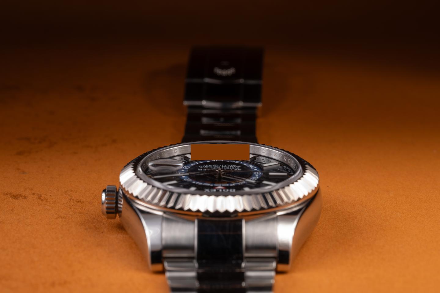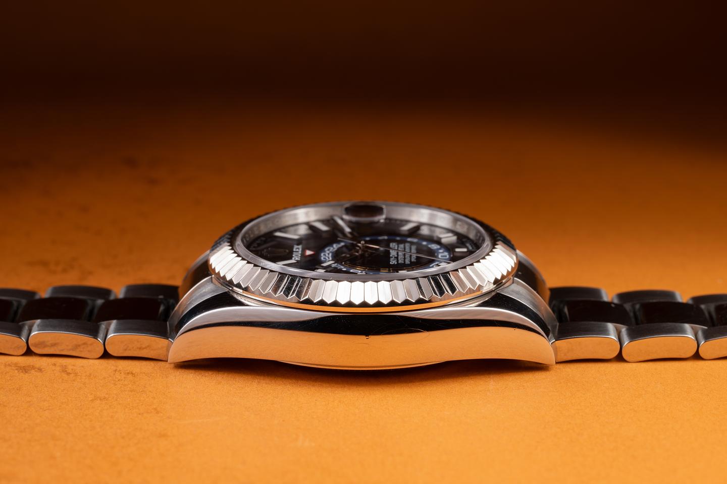 Case: The 42mm case is excellent, showing only light wear from use. The 18K white gold fluted bezel is also in excellent condition showibg only light wear from use.