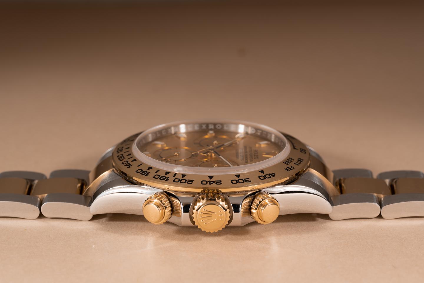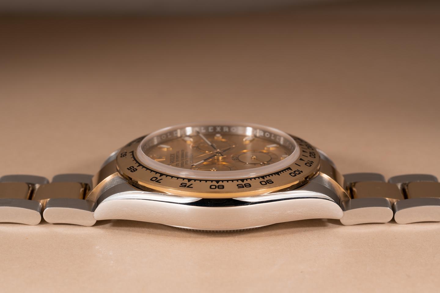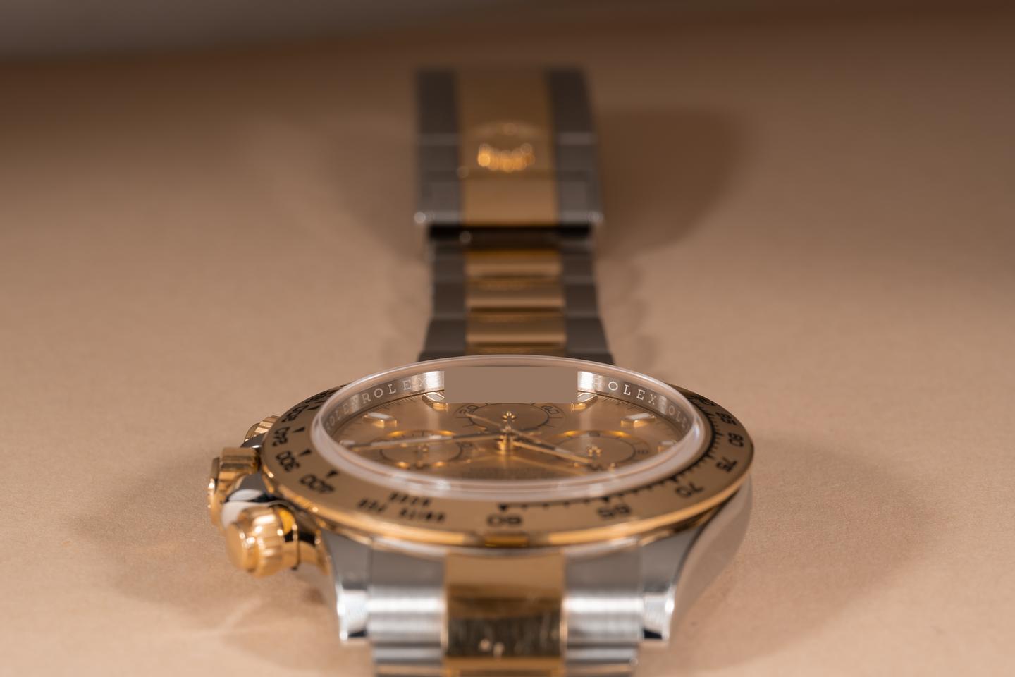 Case: The thick and even case is excellent showing only light wear from use. The 18k yellow gold bezel is also in excellent condition showing only light wear from use.