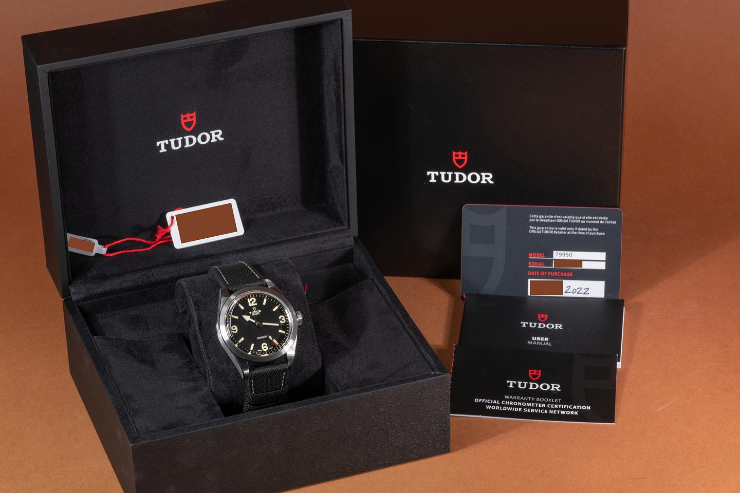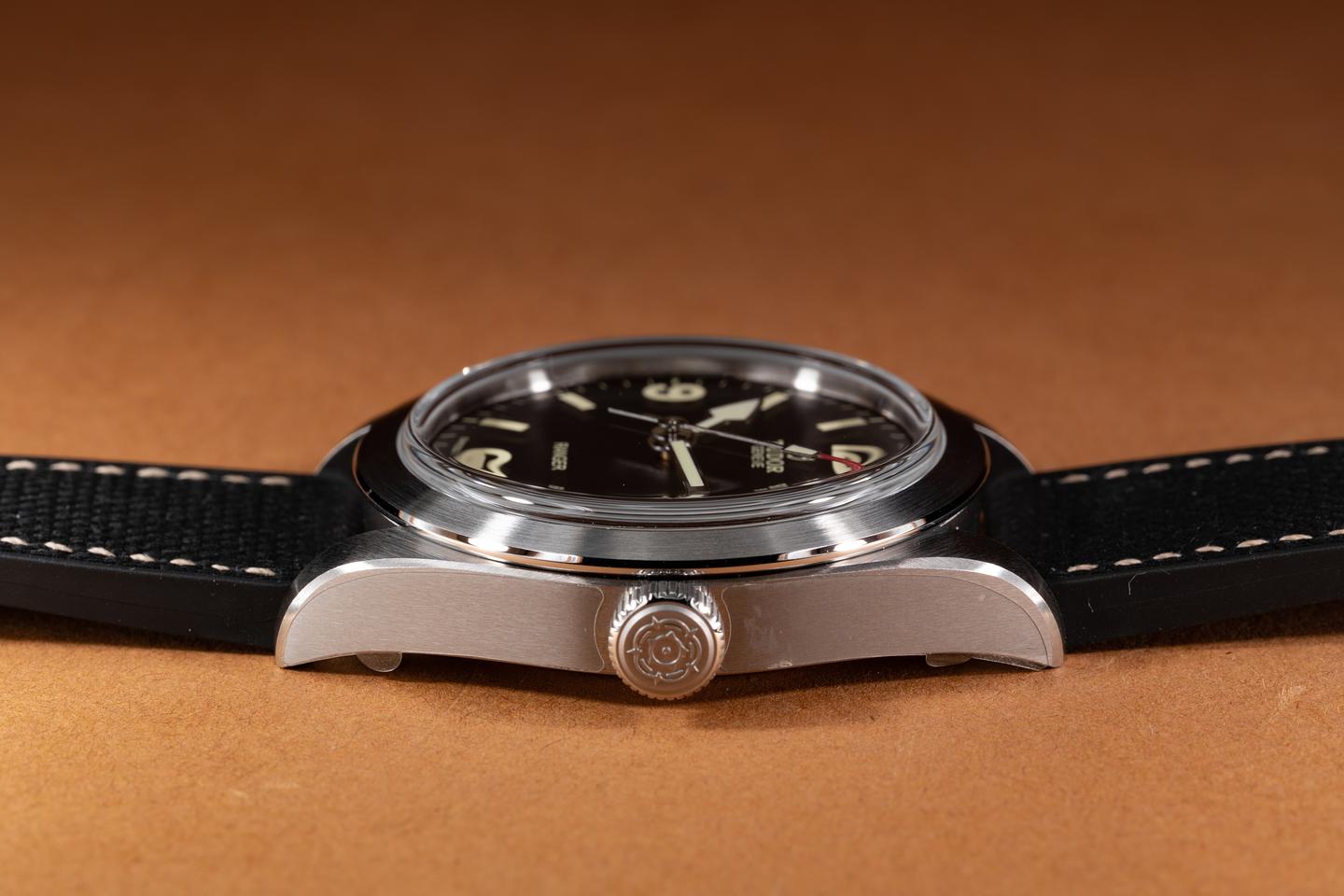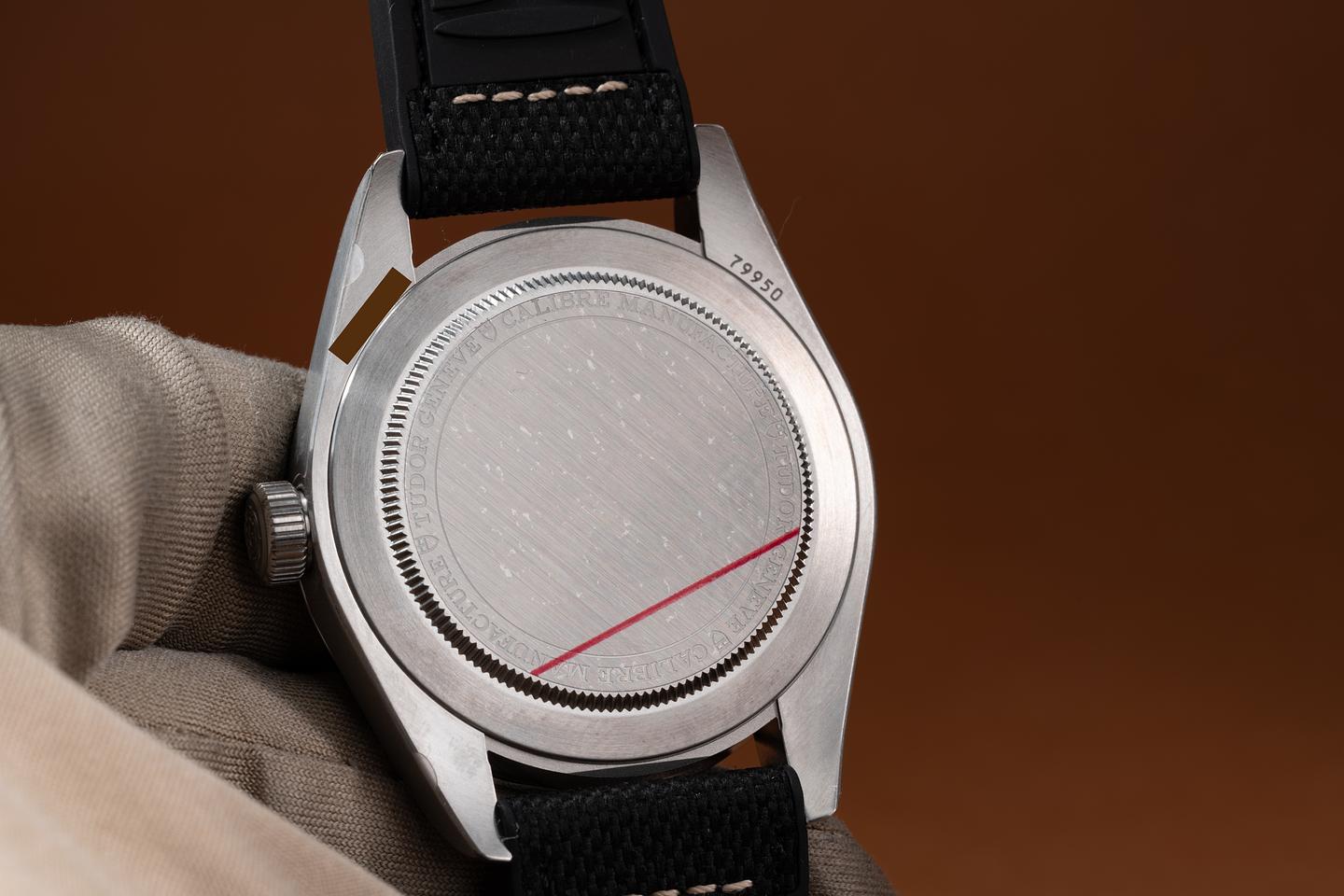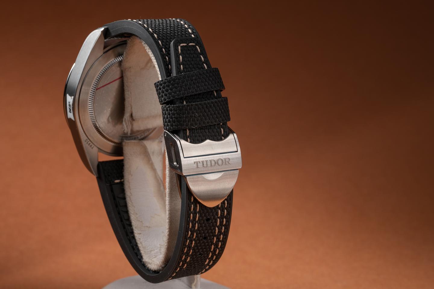 Bracelet: The Tudor black rubber strap is mint and the stainless clasp is matching.