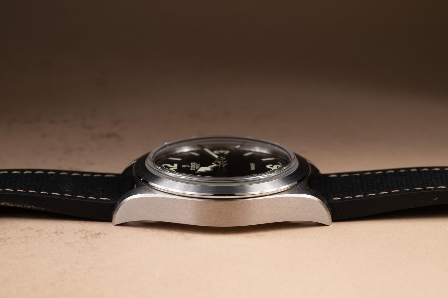 Case: The sharp 39mm case is excellent, showing only extremely light wear from use. The brushed stainless bezel is also in excellent condition, showing only extremely light wear from use.
