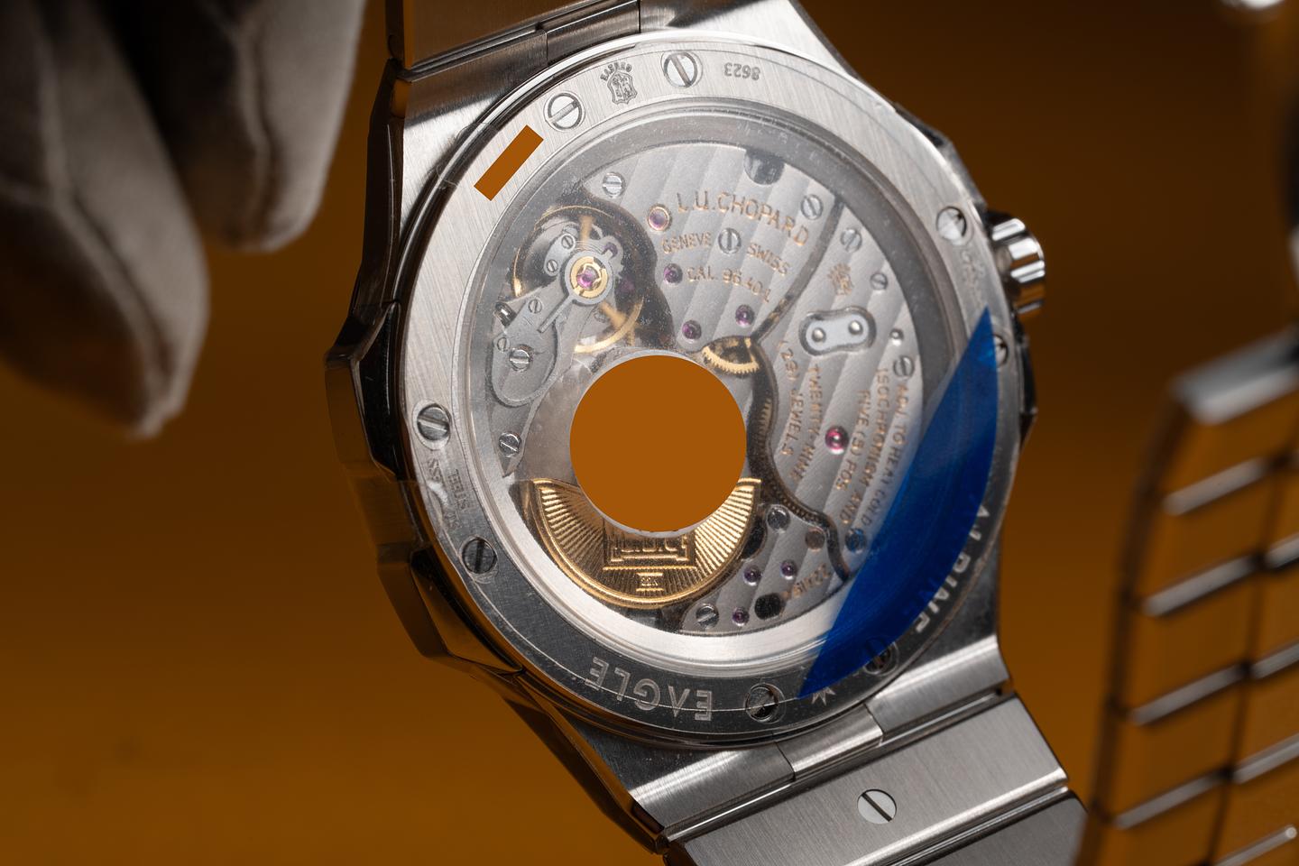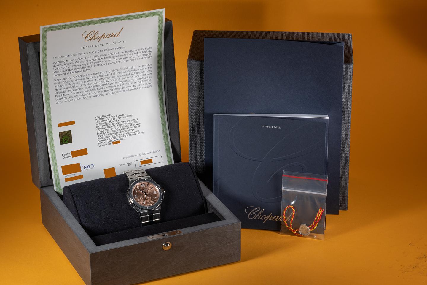 Bracelet: The 24 link Chopard bracelet is mint with the factory protective stickers still in tact.