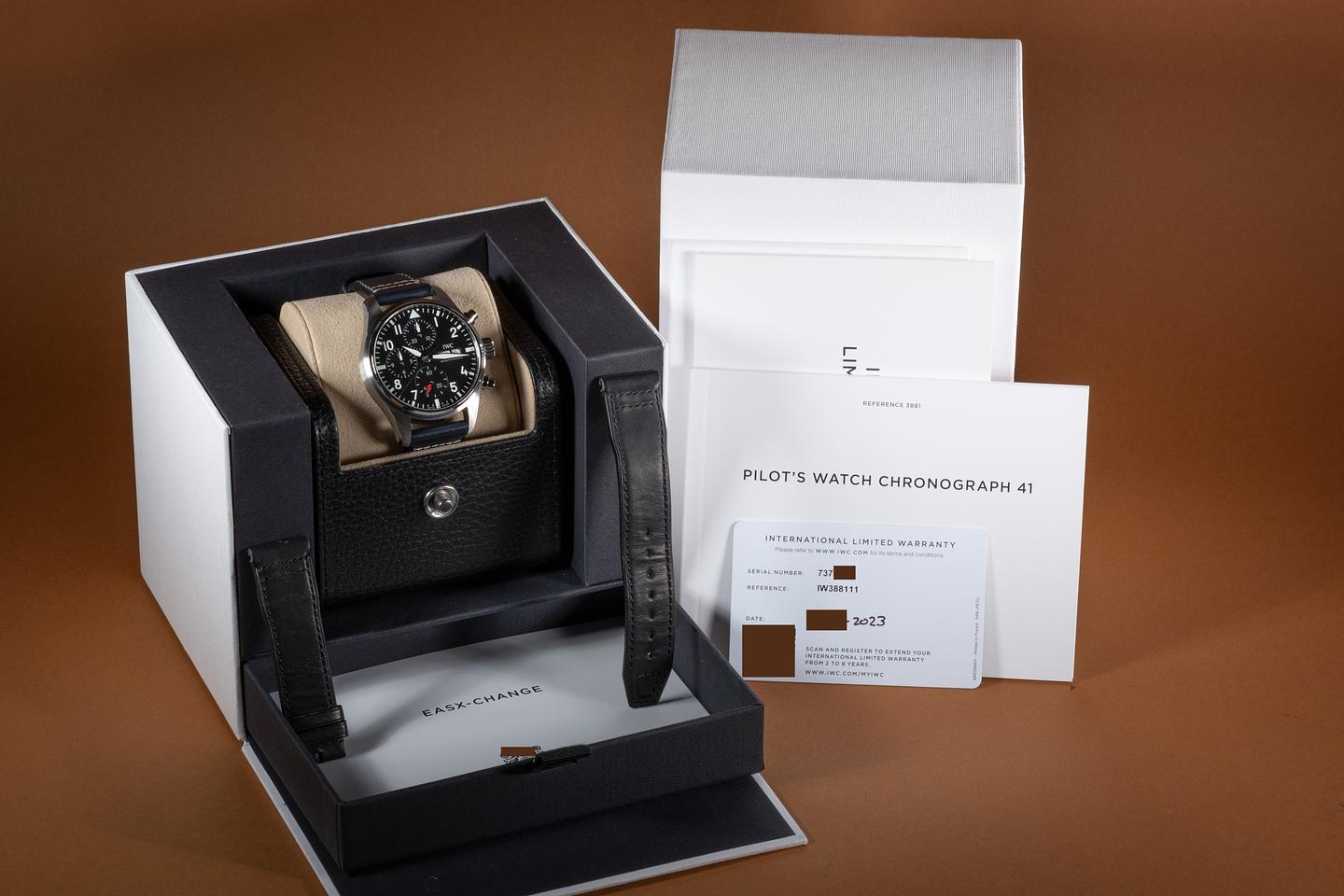Accessories: Box, Papers & Extra Black IWC leather strap showing light wear.