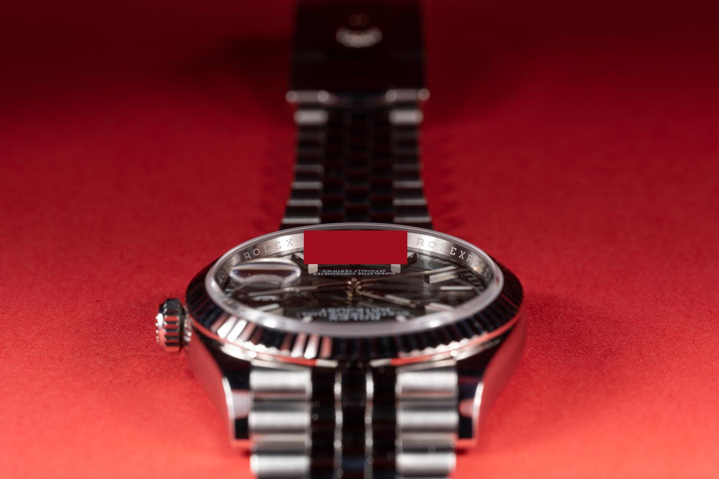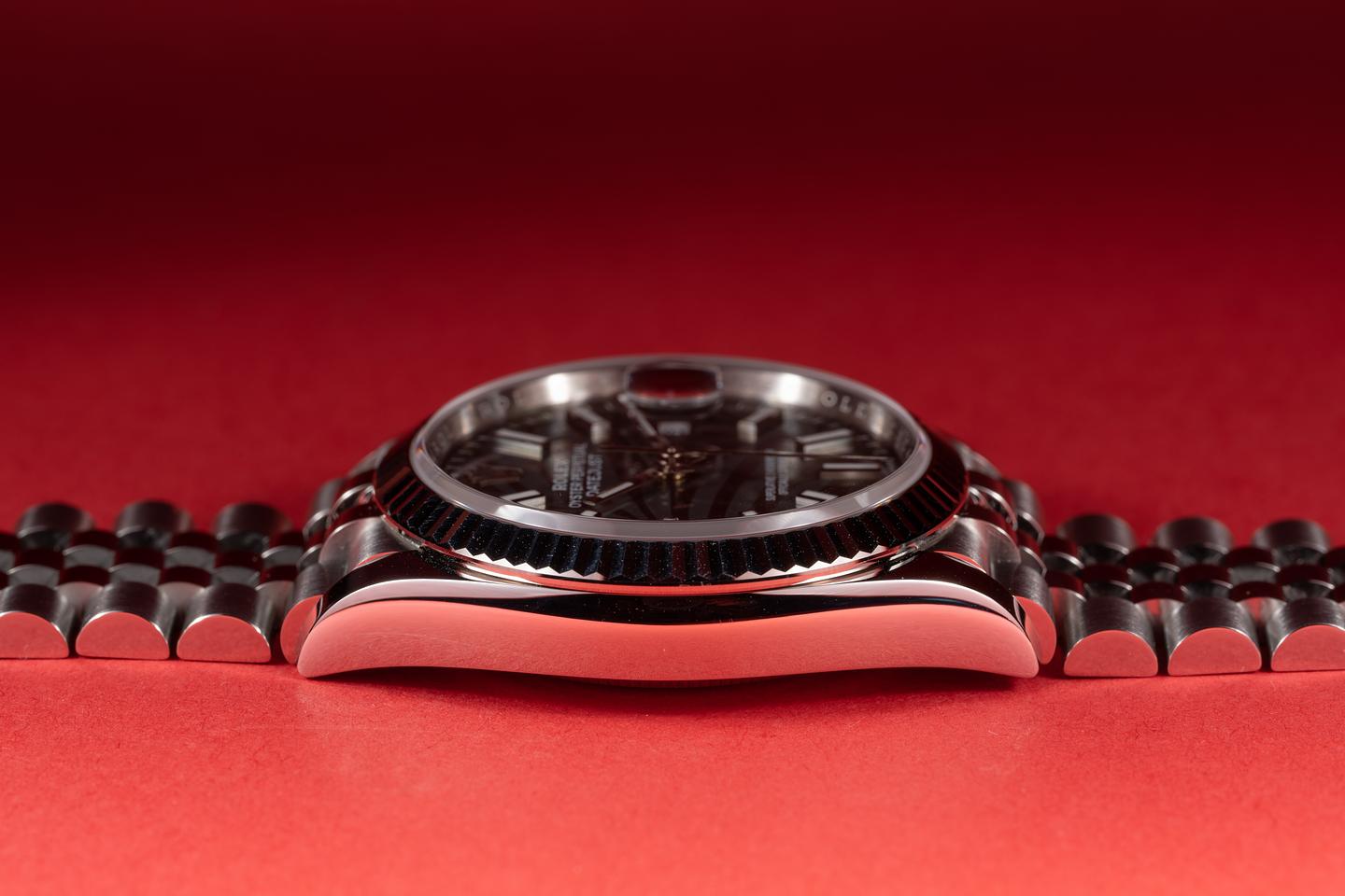 Case: The 36mm case is excellent showing only very light wear from use. The sharp 18k white gold fluted bezel is also in excellent condition showing only very light wear from use.