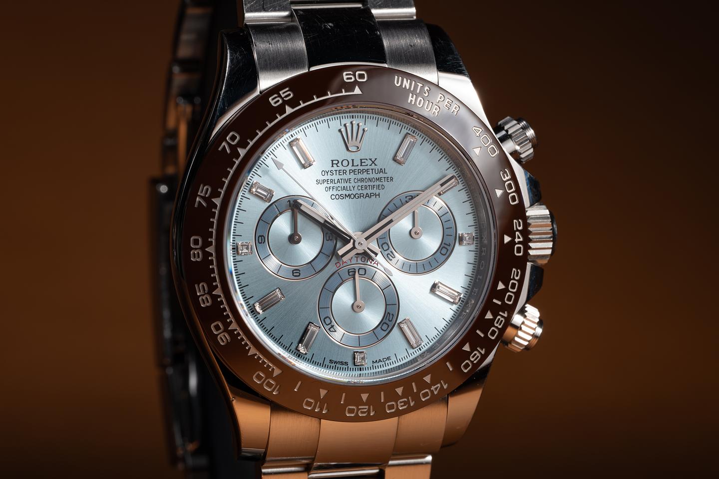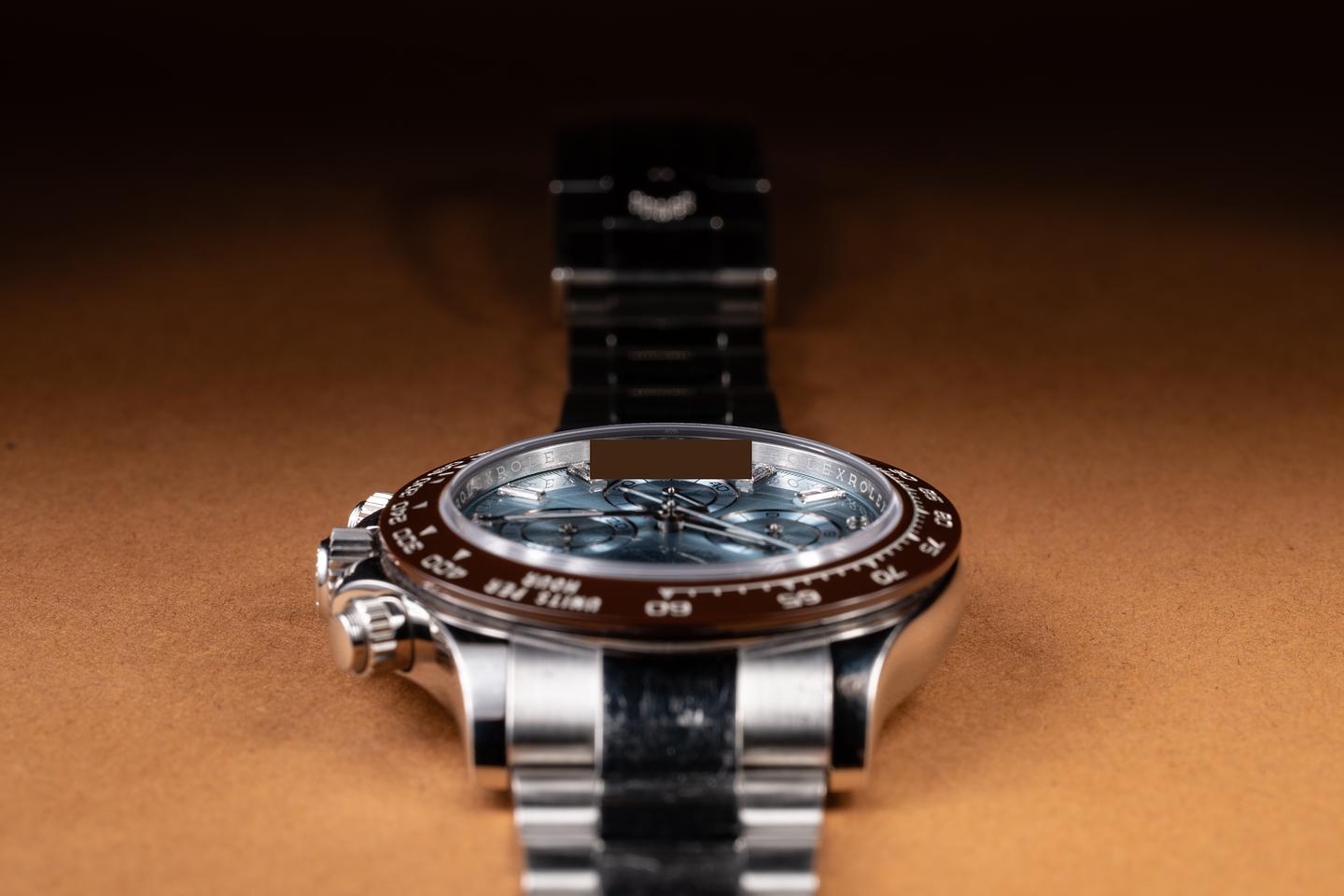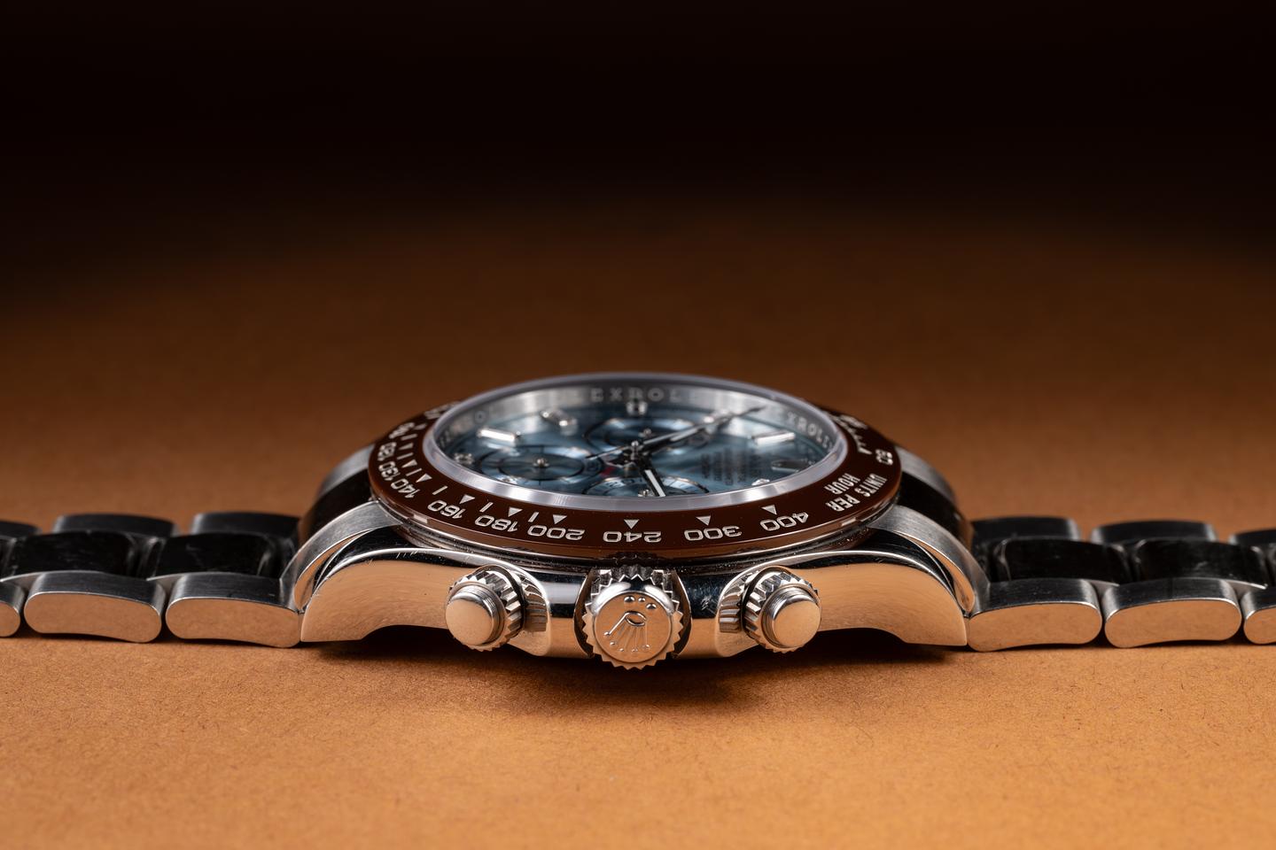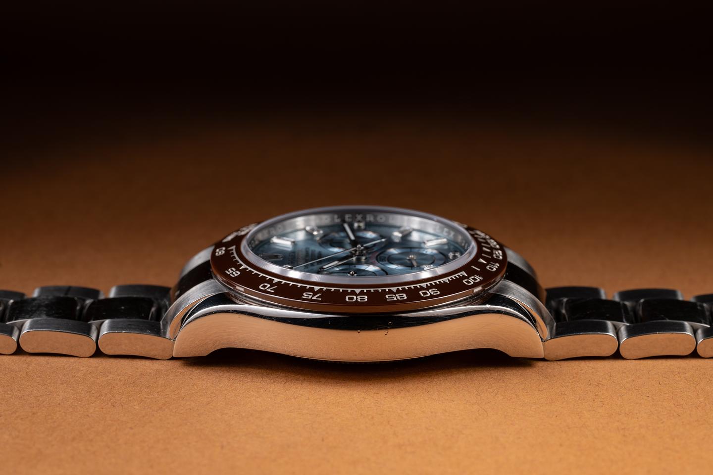 Case: The unpolished platinum case is excellent, showing only light wear from use. The brown ceramic bezel is also in excellent condition showing no visible wear.