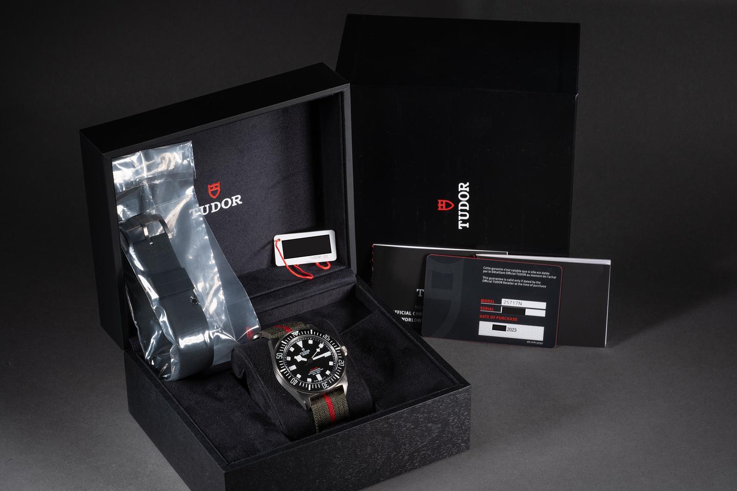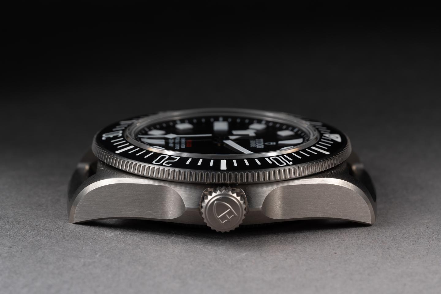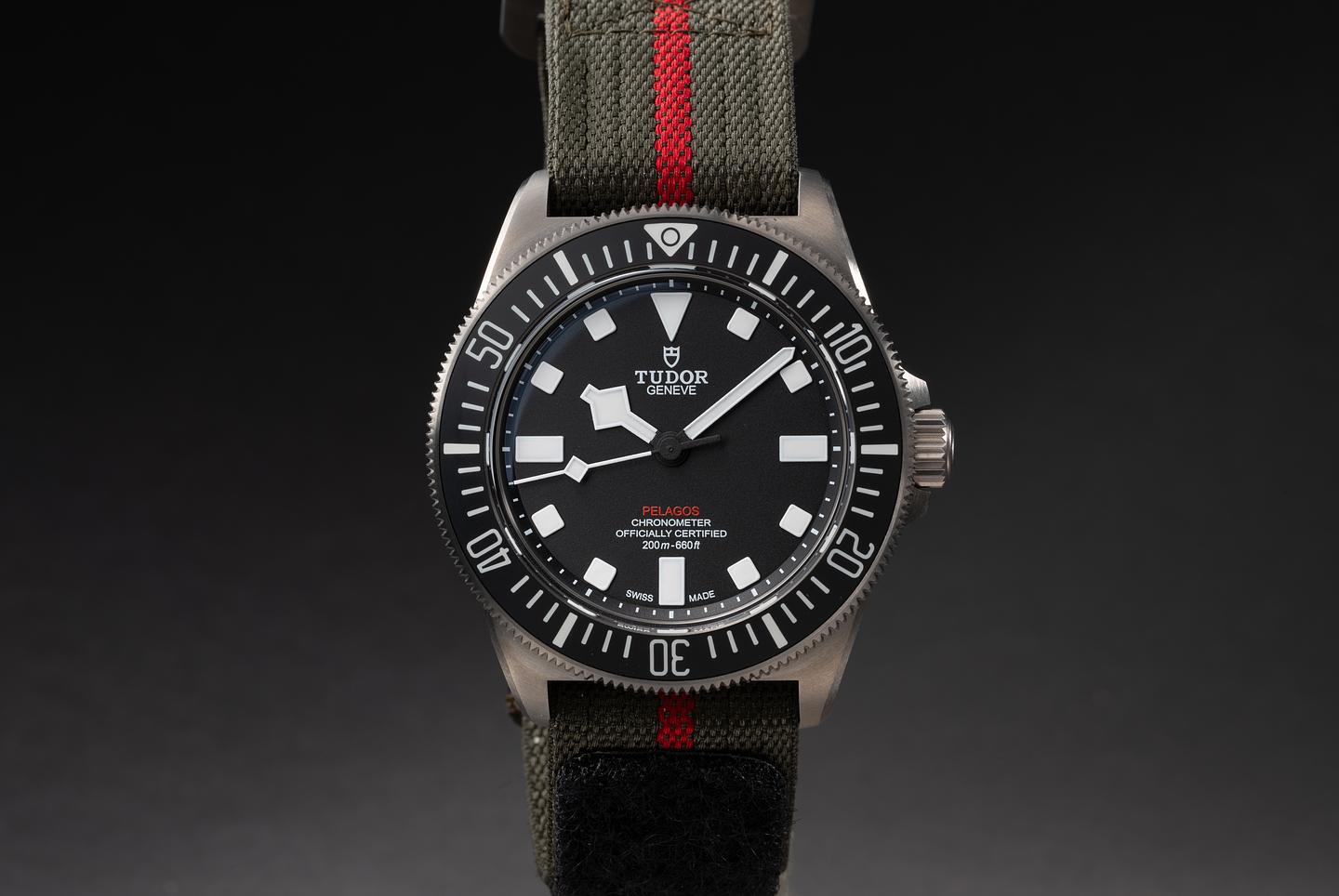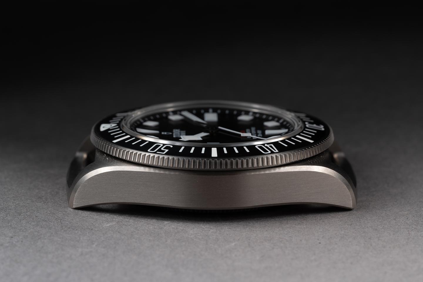 Case: The 42mm titanium case is excellent showing sharp, prominent factory bevels and only extremely light wear. The black bezel insert is also in excellent condition showing only extremely light wear.