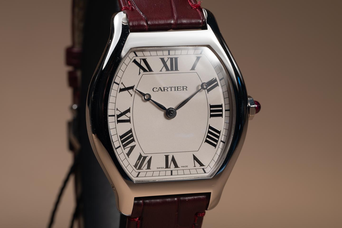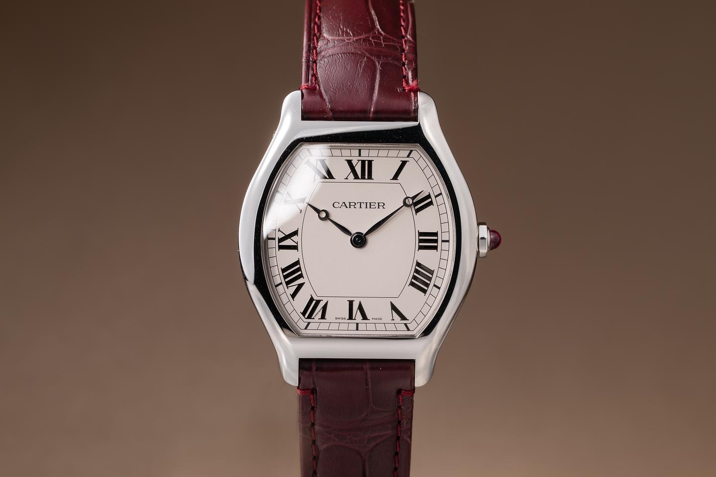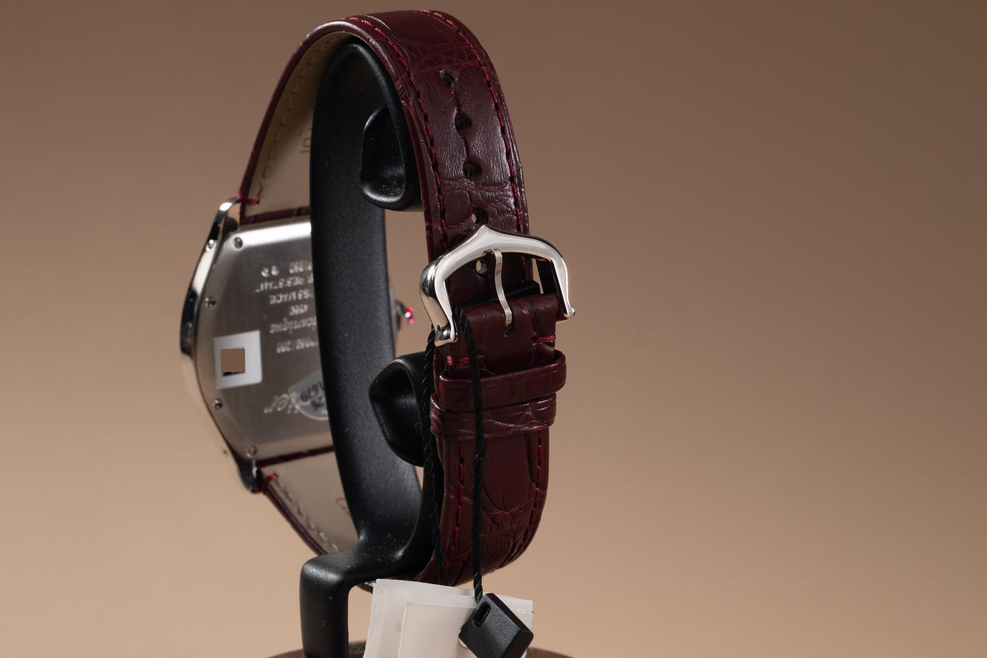 Bracelet: The burgundy leather strap and platinum buckle are mint.