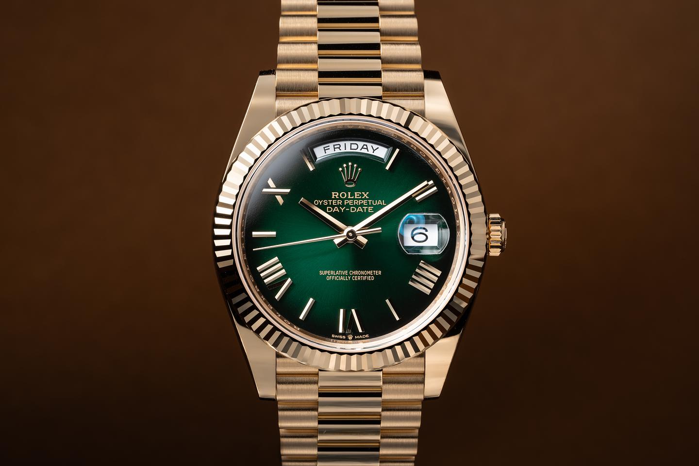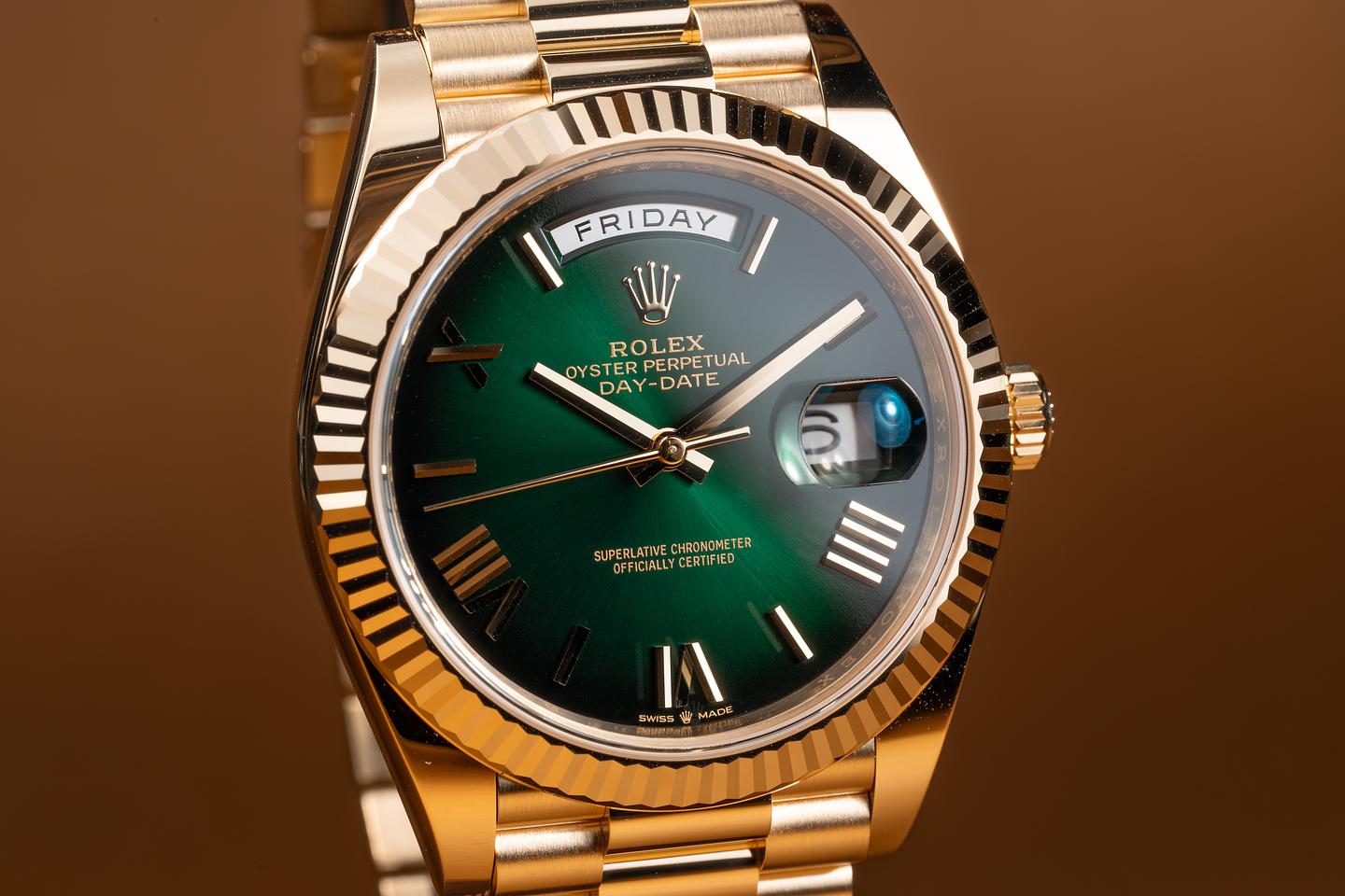 Dial: The green ombre dial is mint and the original factory hands are matching.
