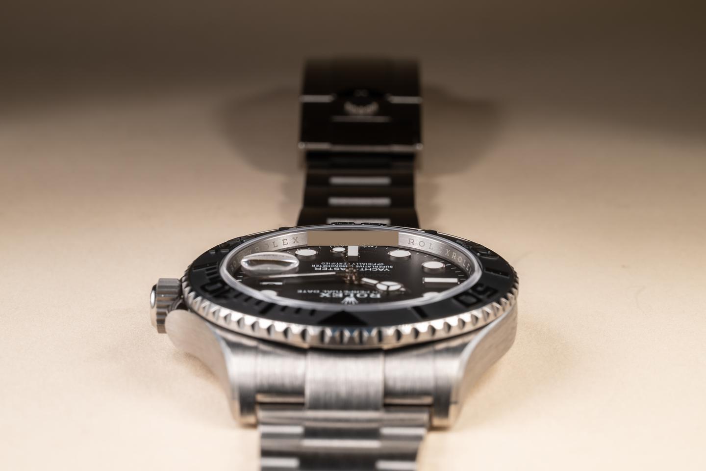 Case: The 42mm titanium case is excellent, showing sharp, prominent bevels, and only very light wear from use. The black bezel insert is also in excellent condition, showing only very light wear from use.