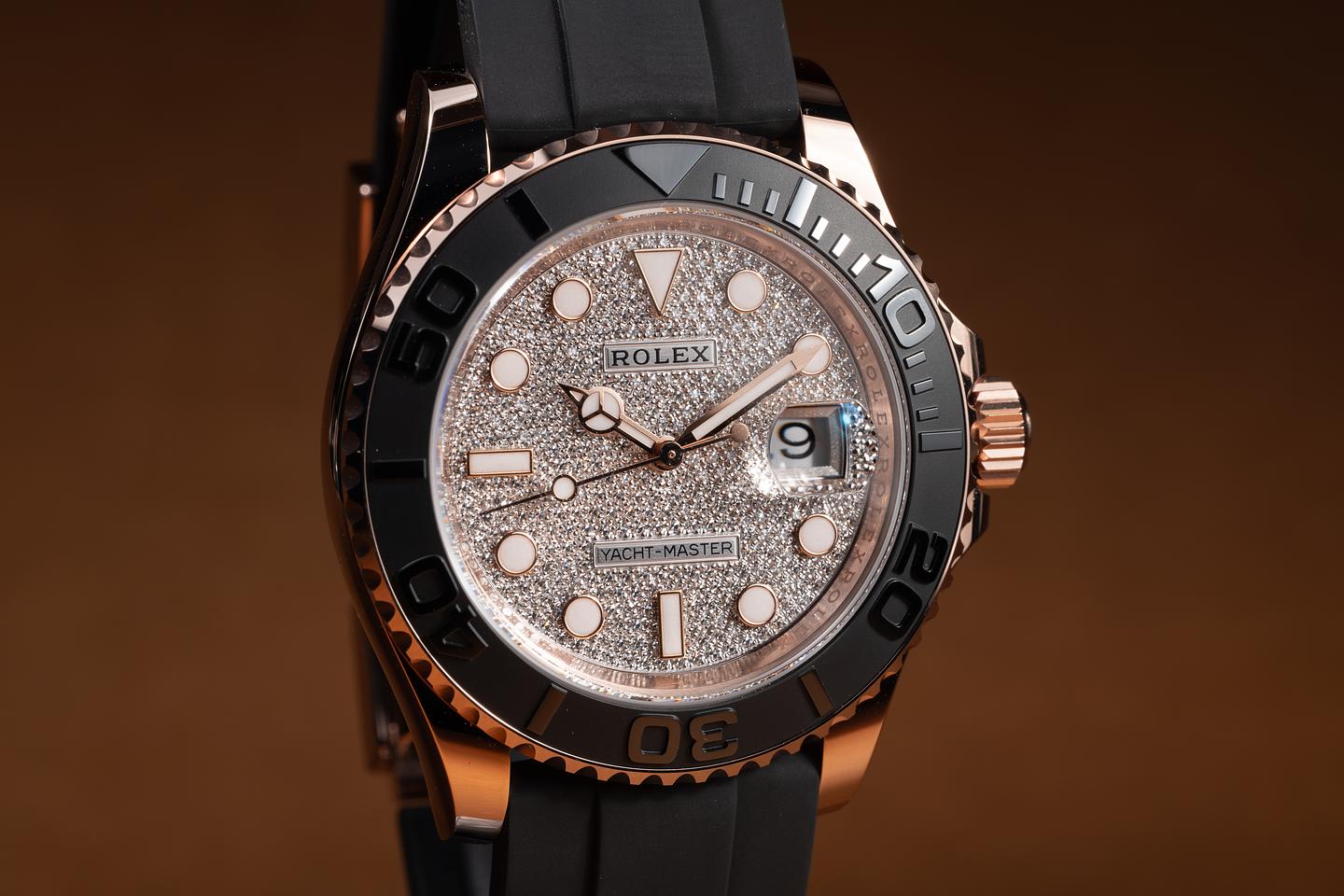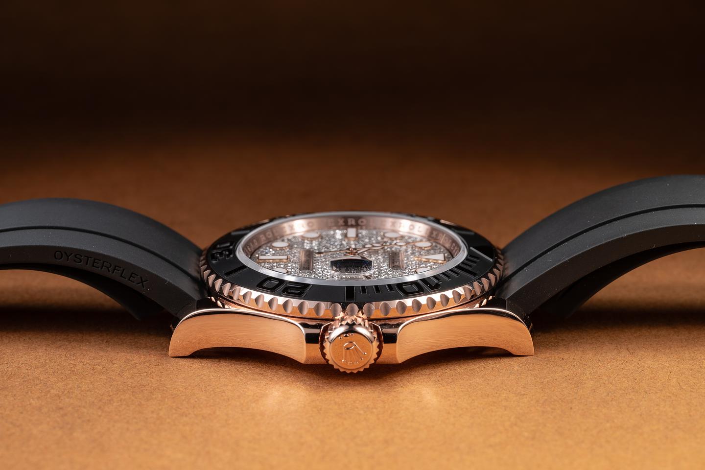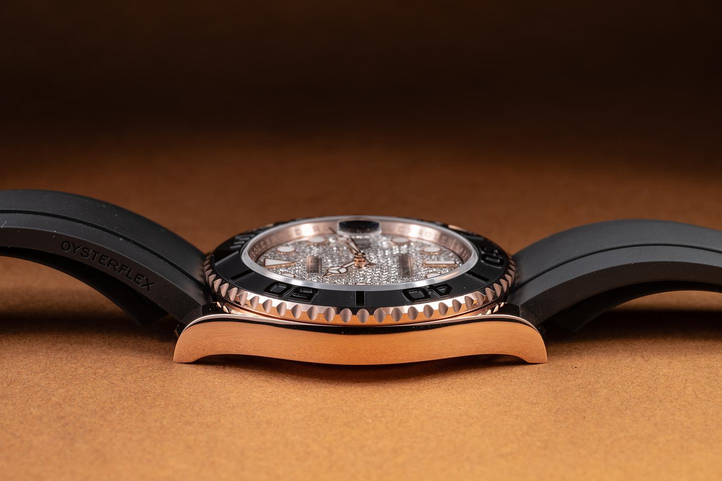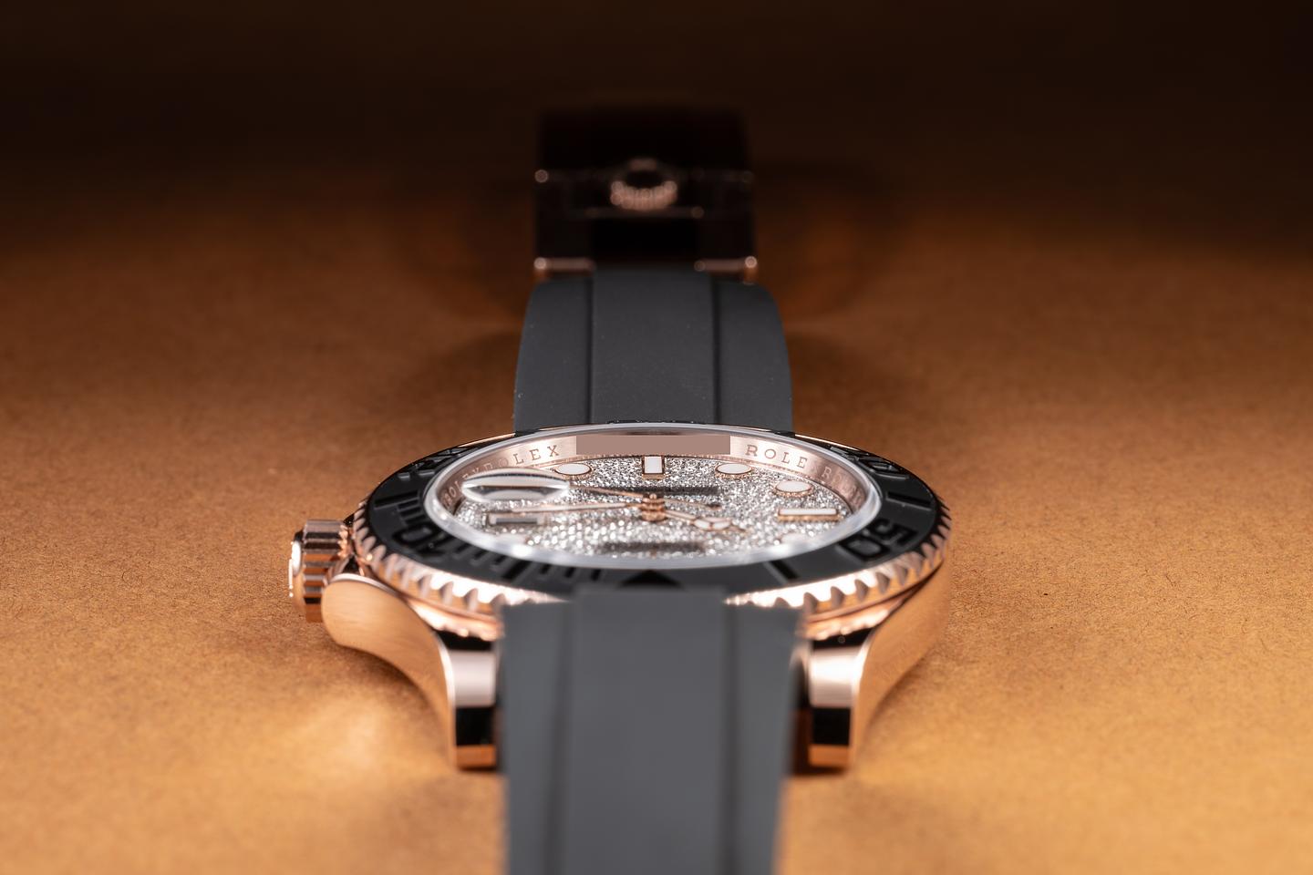 Case: The 18K rose gold case is in mint unworn condition. The black cerachrome bezel is also in excellent condition, showing no visible wear.