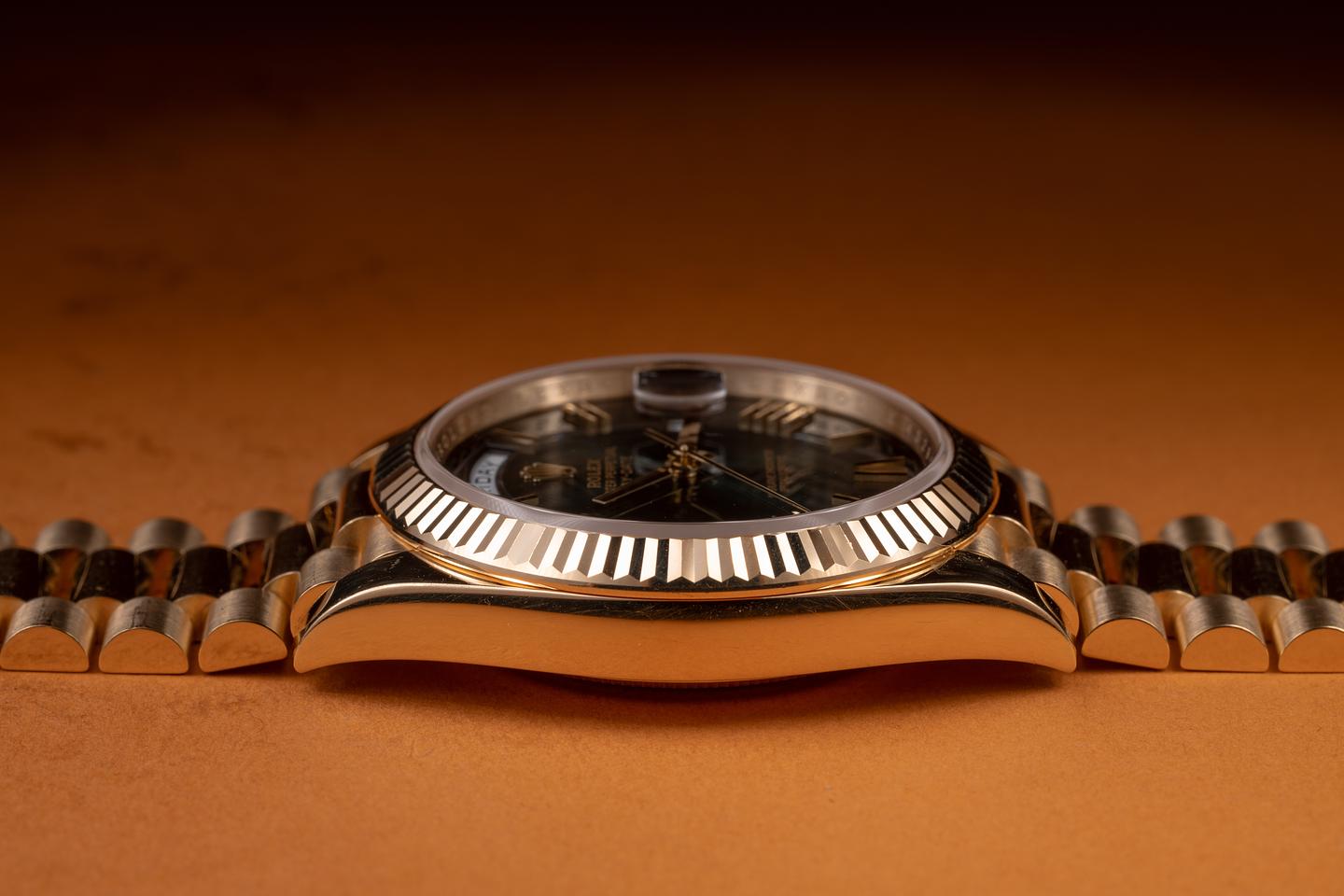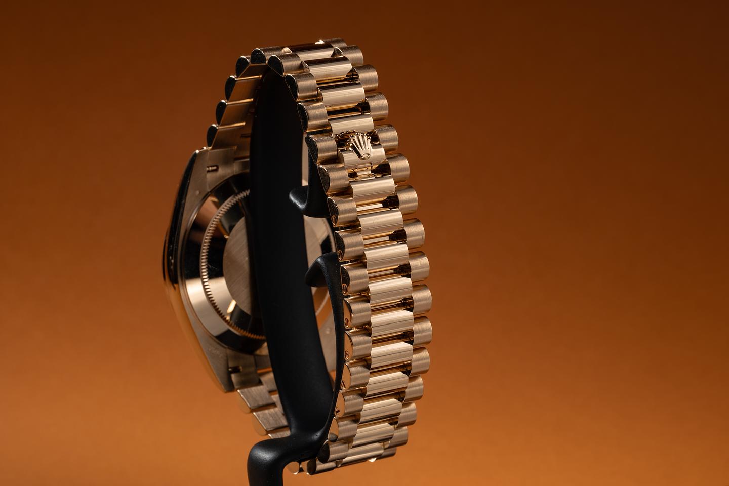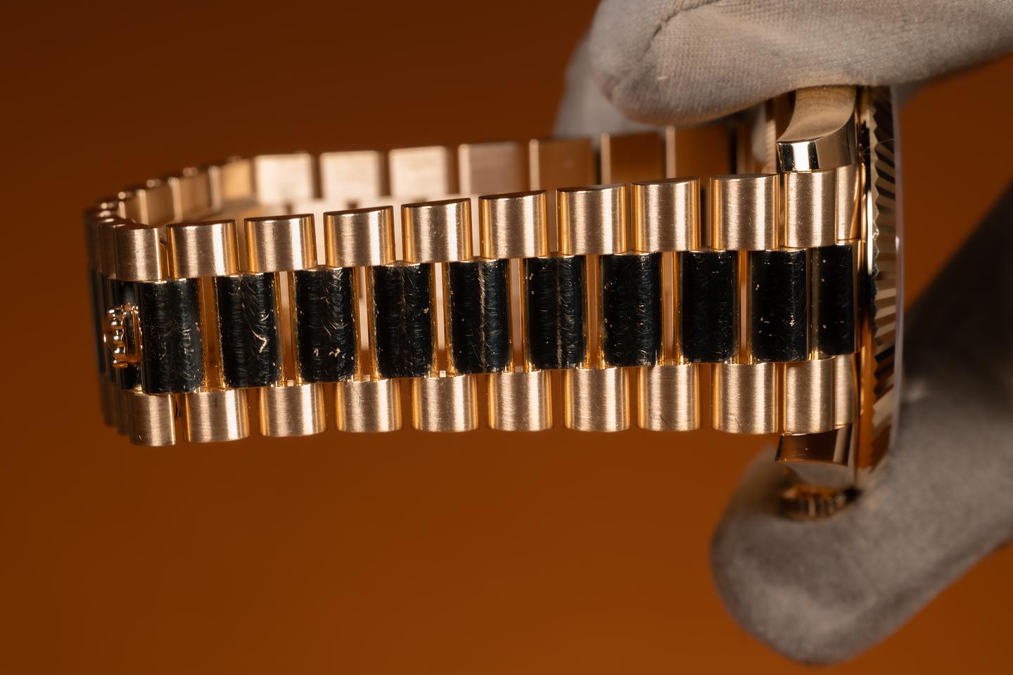 Bracelet: The 24-link 18K yellow gold President bracelet is excellent with very light wear from use and showing no perceivable stretch. There is one additional link included with the watch.