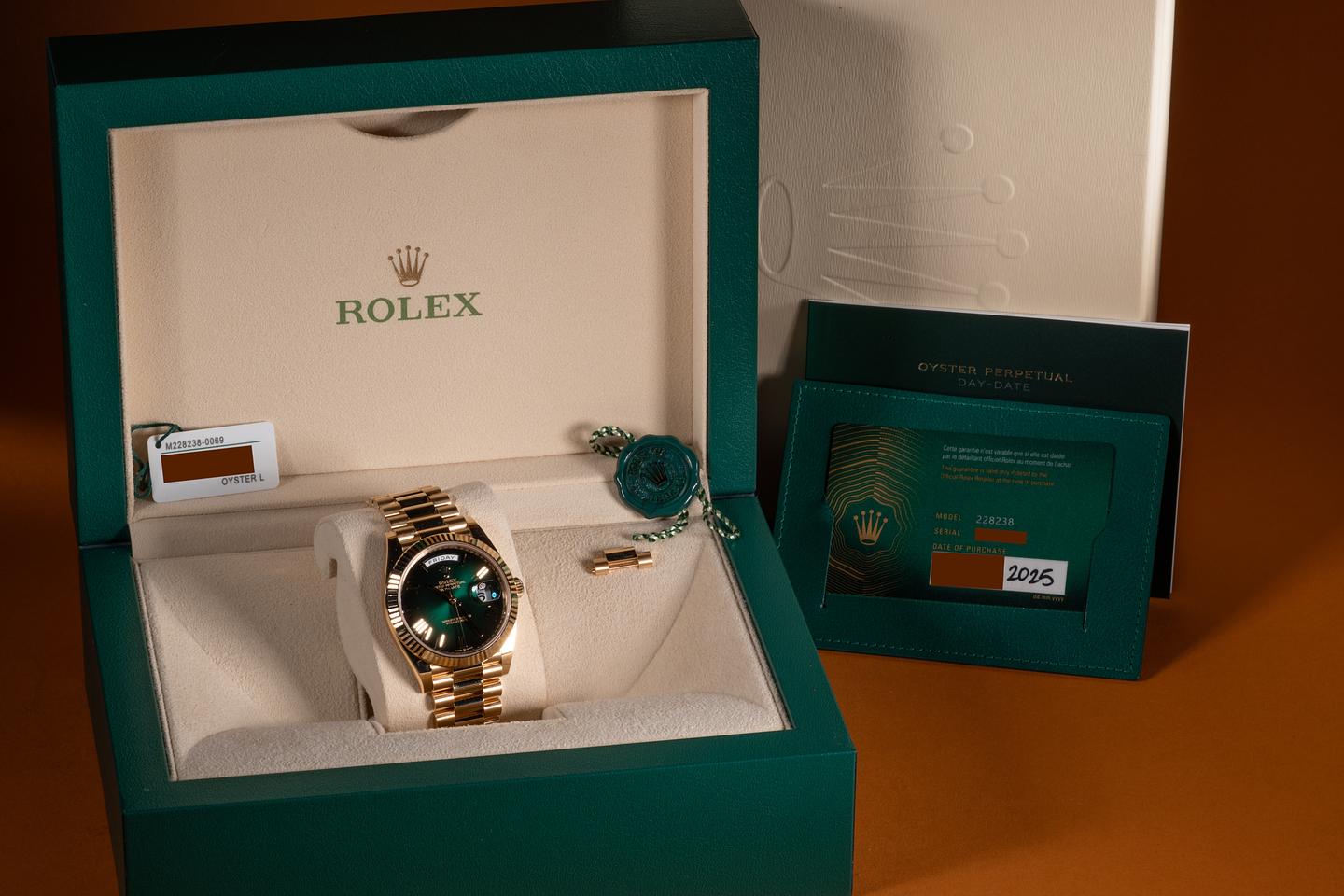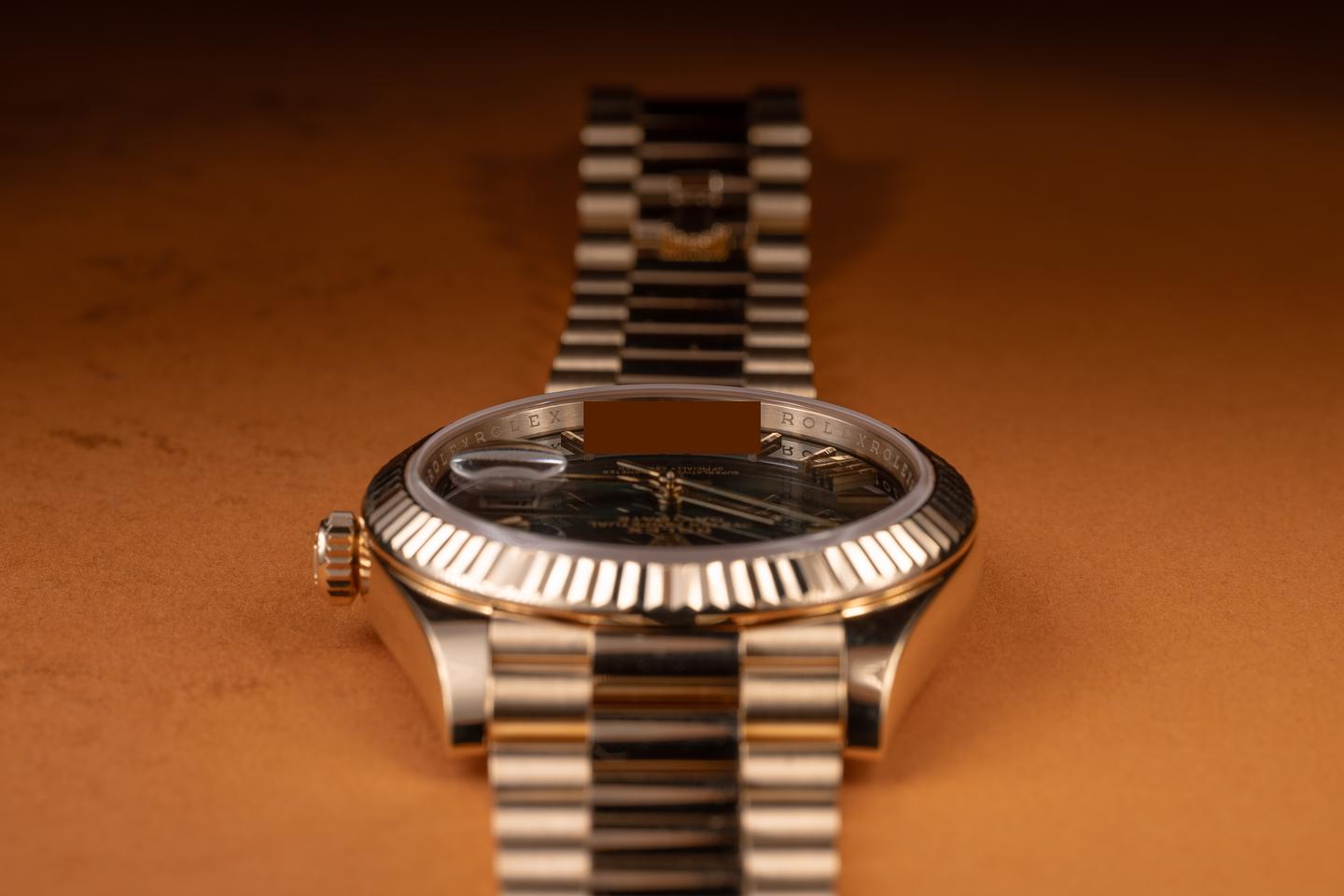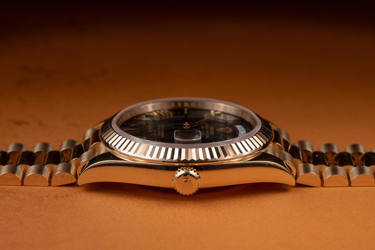 Bracelet: The 24-link 18K yellow gold President bracelet is excellent with very light wear from use and showing no perceivable stretch. There is one additional link included with the watch.