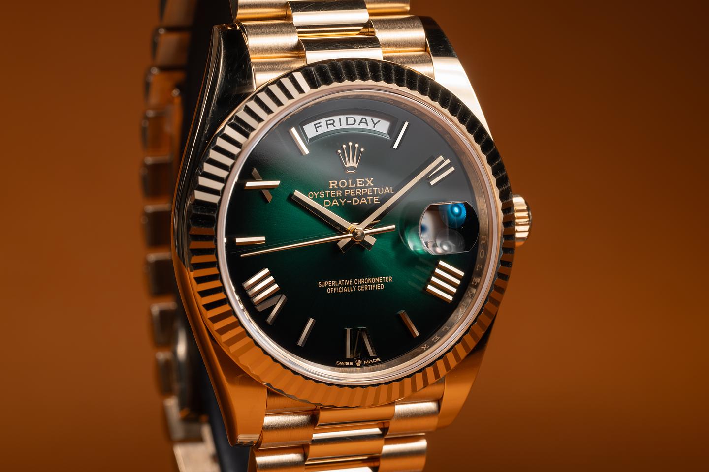 Dial: The green ombré dial is mint, and the original factory hands match.
