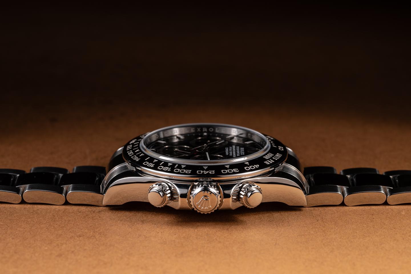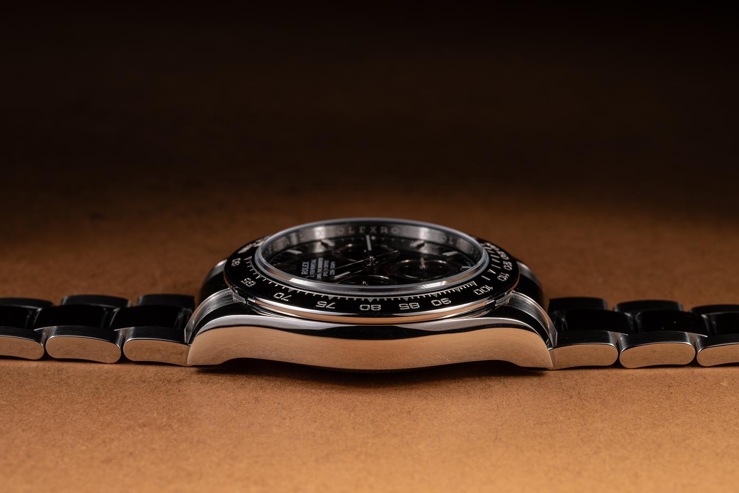 Case: The case is in mint, unworn condition. The black bezel is in mint, unworn condition.