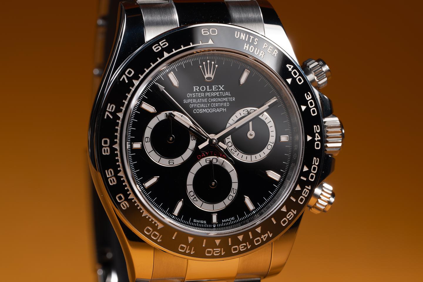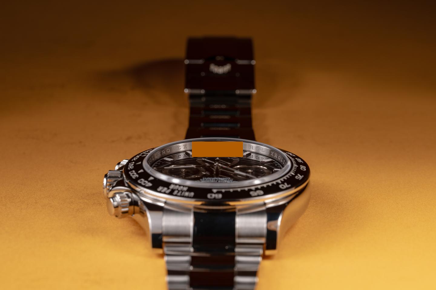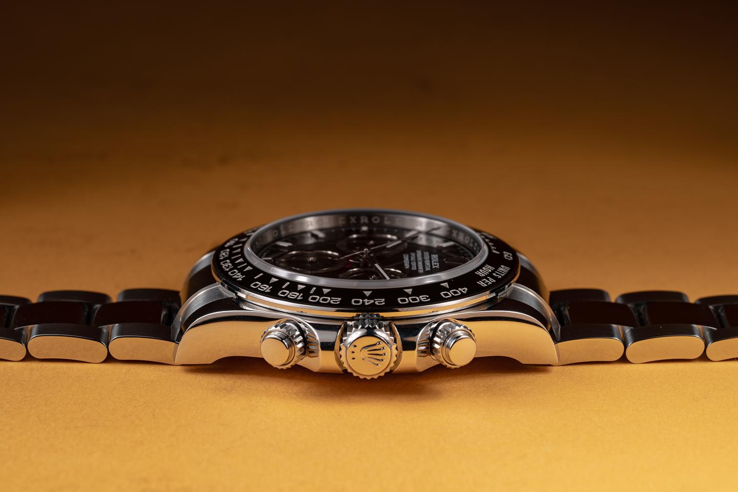 Case: The case is in mint, unworn condition. The black bezel is in mint, unworn condition.