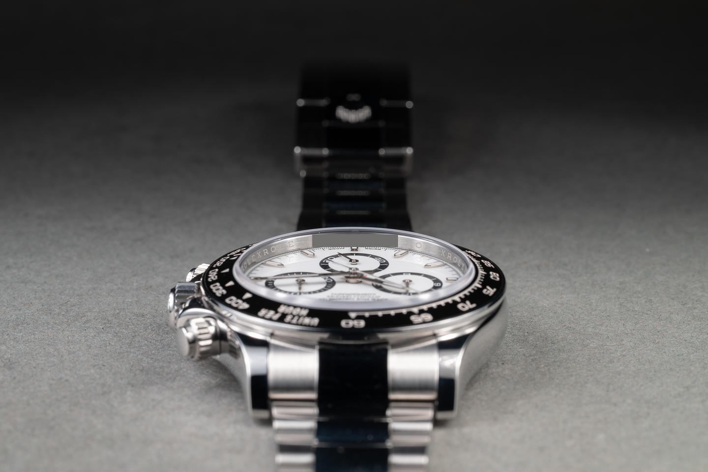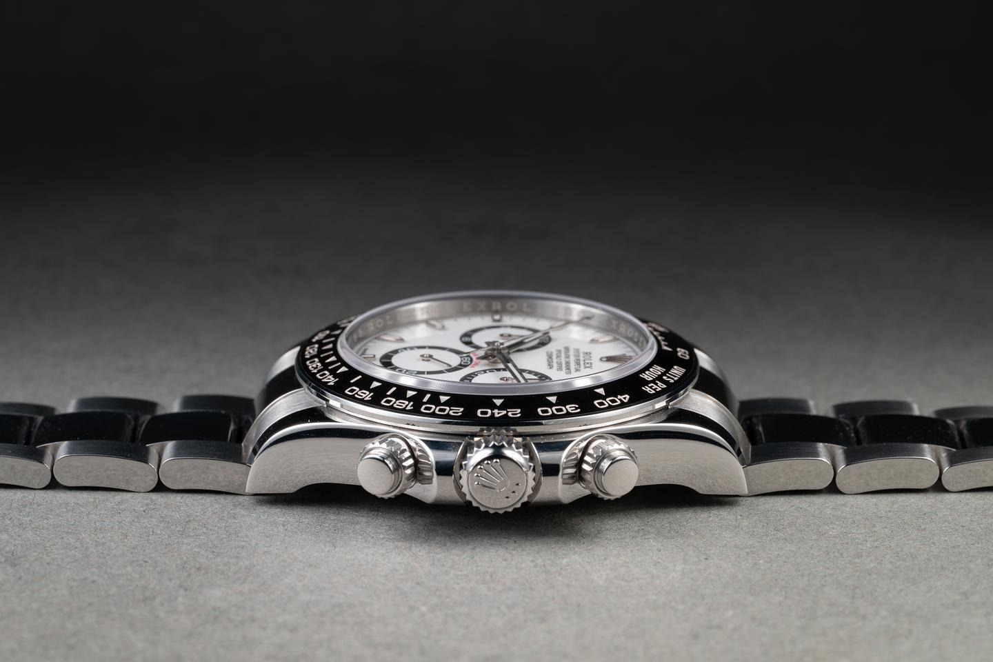 Case: The case is in mint, unworn condition. The black bezel is in mint, unworn condition.