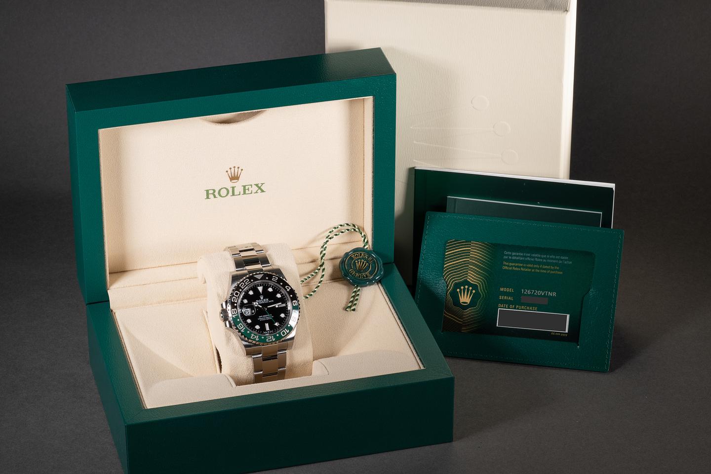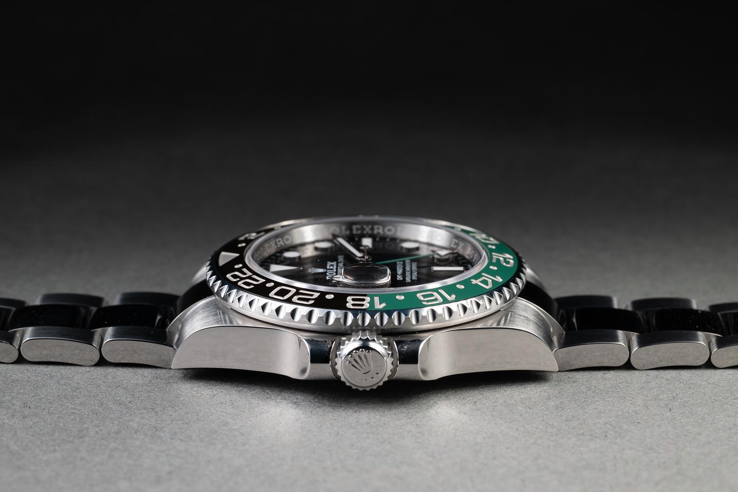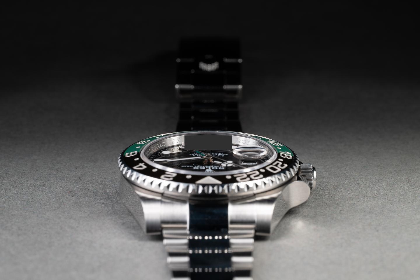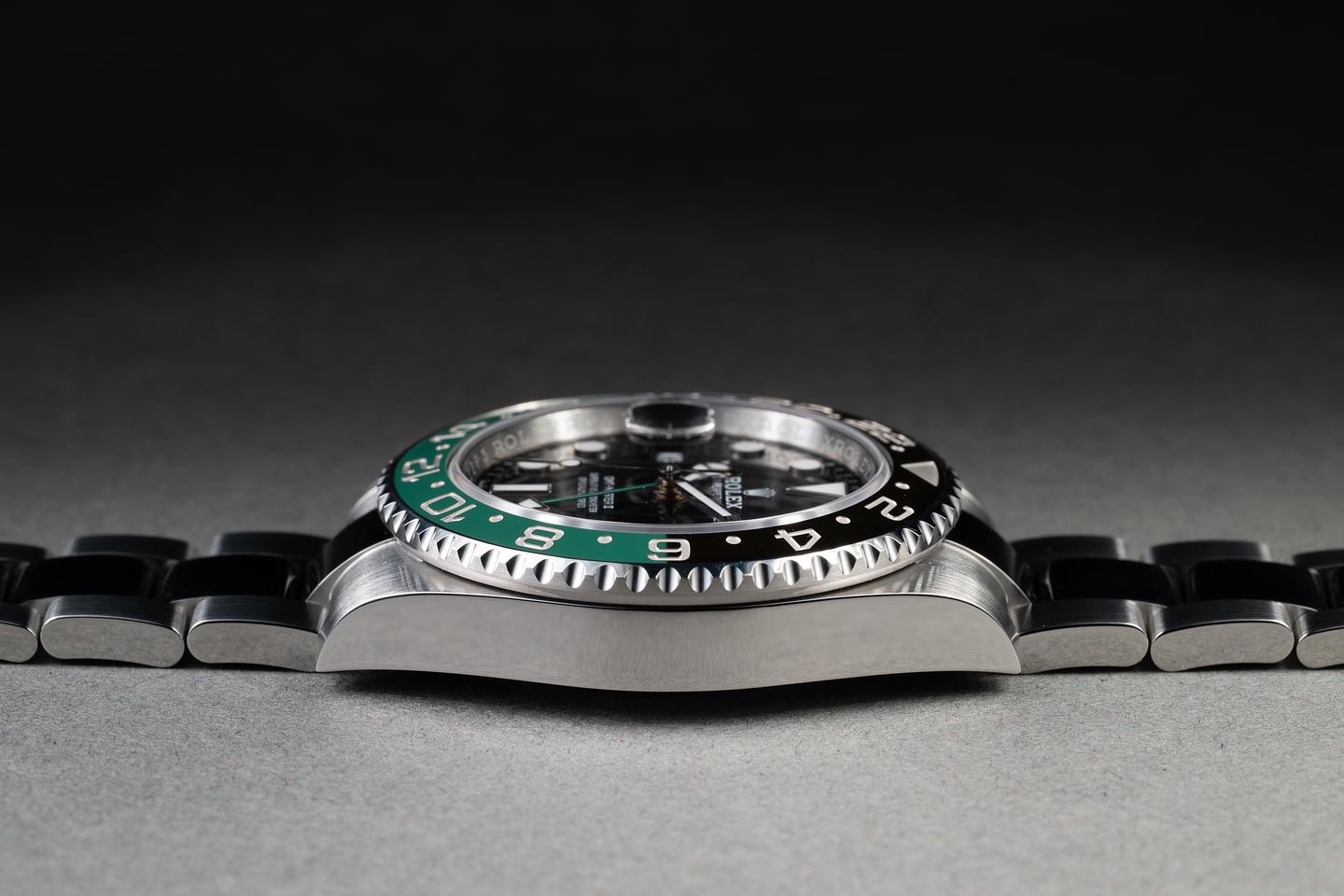 Case: The case is in near-mint, unworn condition. The black and green ceramic bezel insert is mint.