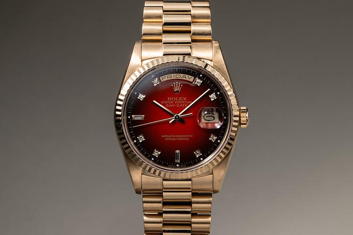 1988 Rolex Day-Date 18238A Red Diamond Vignette Dial with Papers