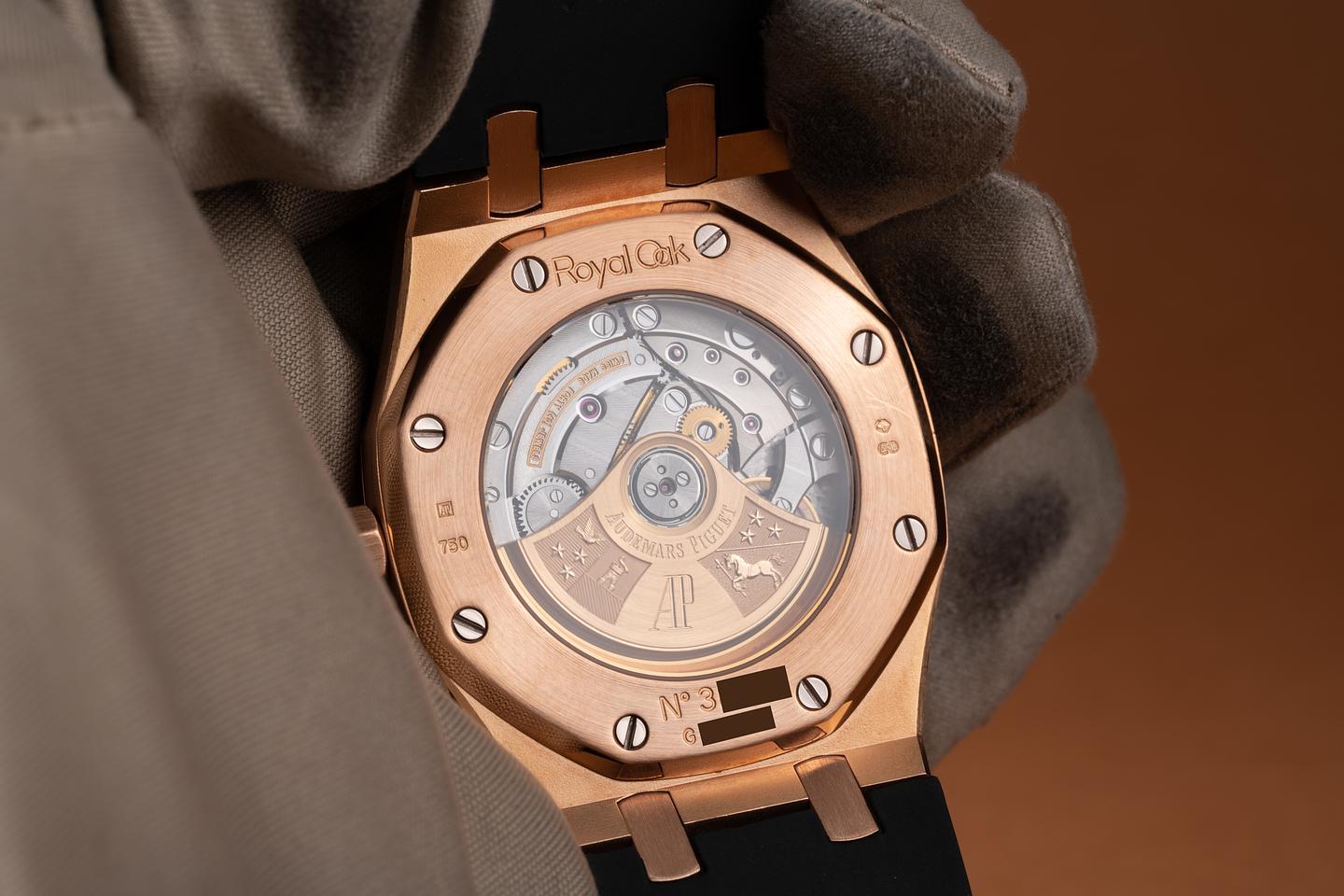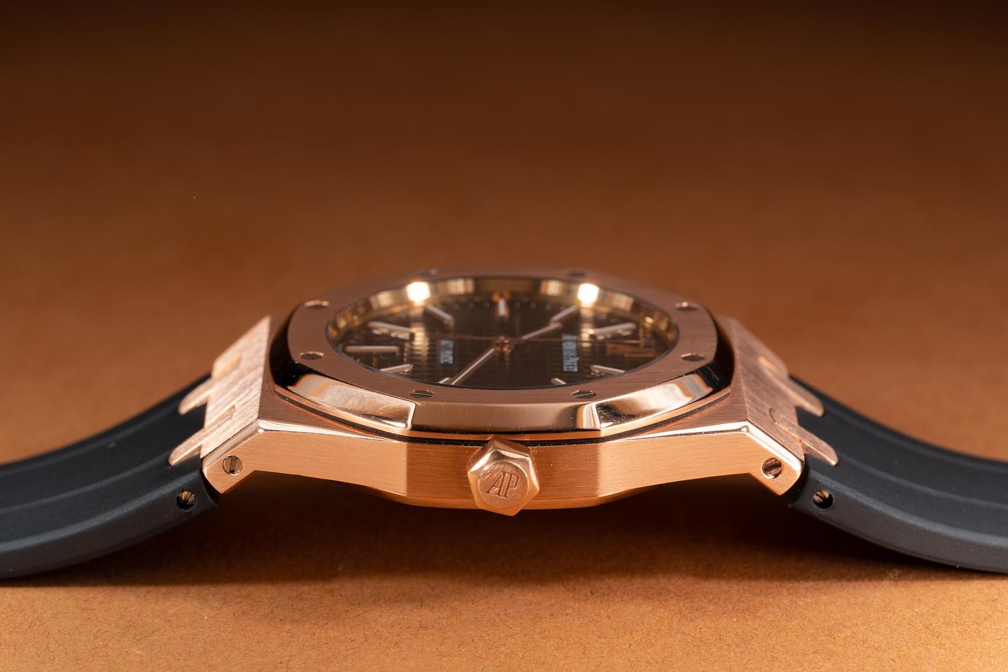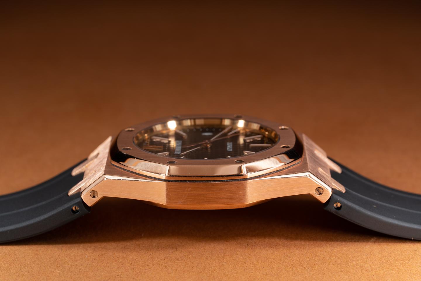 Case: The 18k rose gold 39mm case is excellent showing prominent bevels and only light wear from use. The 18k rose gold bezel is also in excellent condition showing only light wear from use.