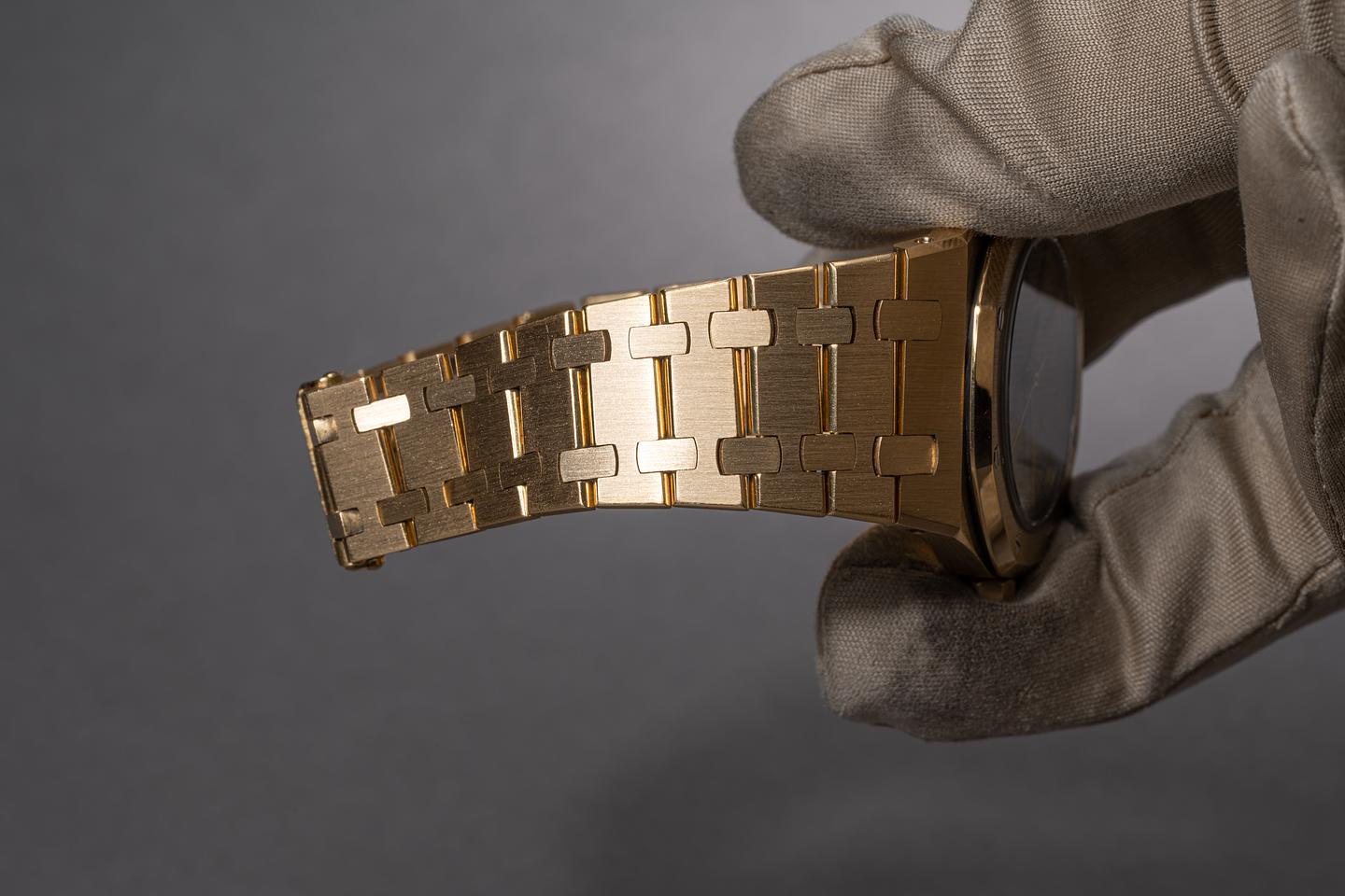 Bracelet: The 20 link 18k yellow gold Royal Oak bracelet is excellent showing some light stretch for its age. The bracelet will first up to a 6.75 inch wrist.