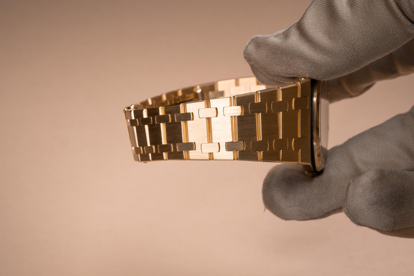 Bracelet: The 21 link 18k yellow gold Royal Oak bracelet is excellent showing no perceivable stretch.