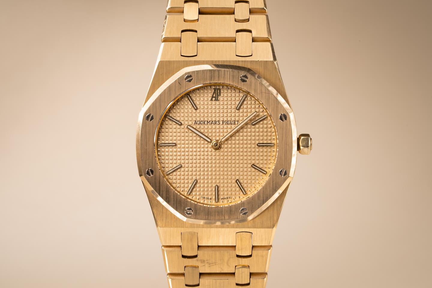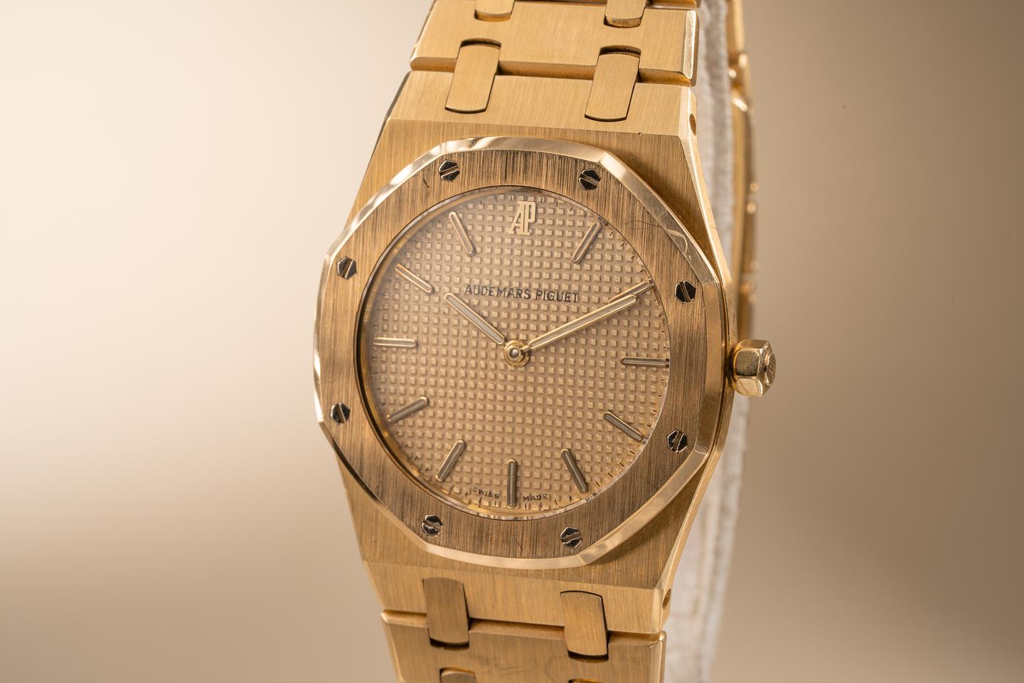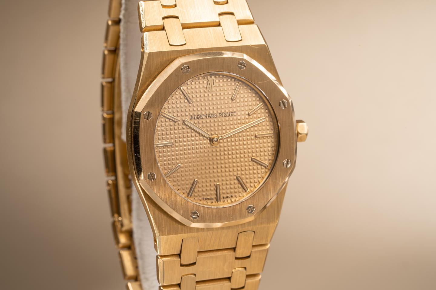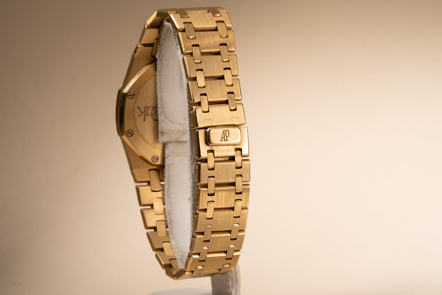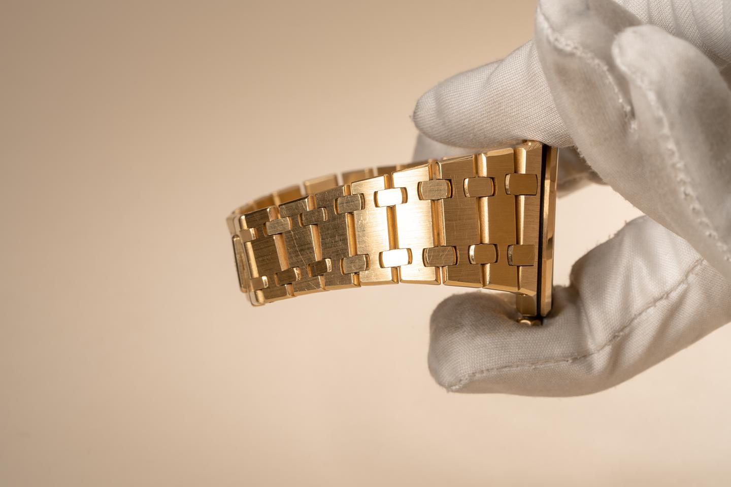 Bracelet: The 18 link 18k gold AP bracelet is excellent showing only light stretch. The bracelet will fit up to a 6.6 inch wrist.