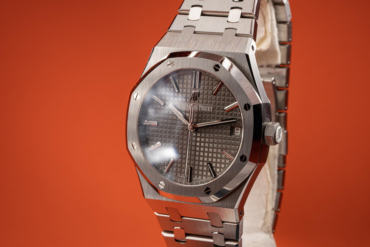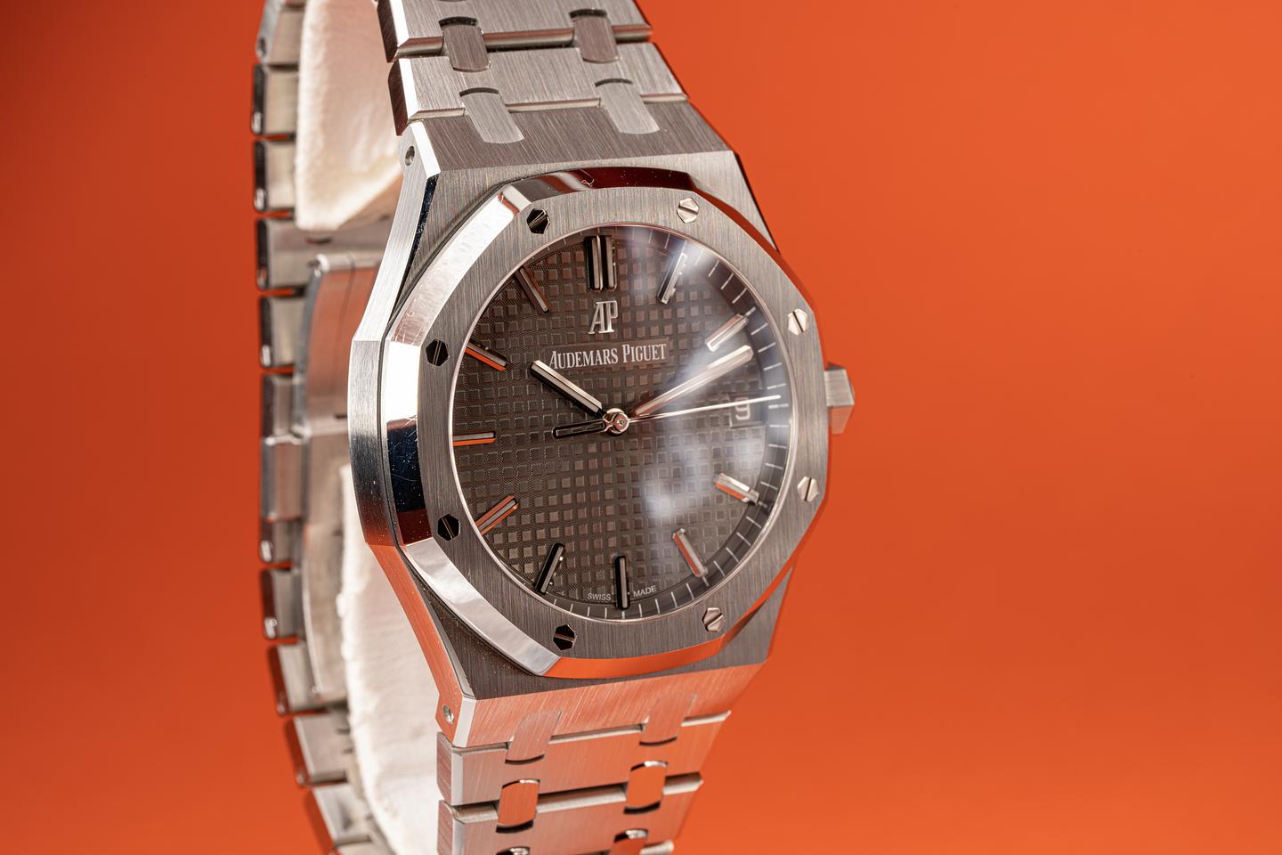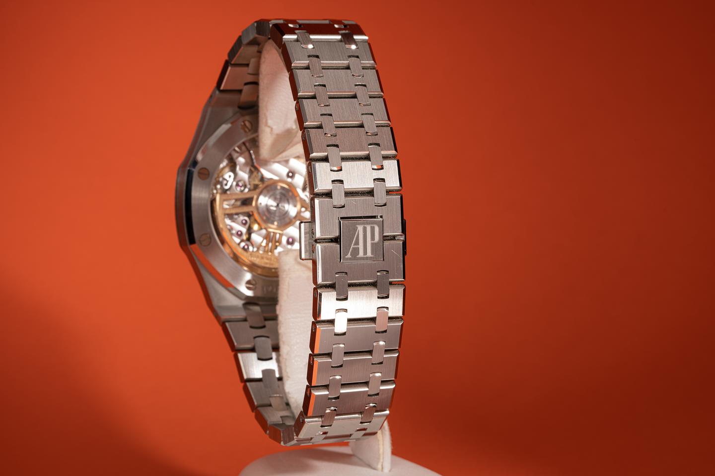 Bracelet: The 21 link stainless Royal Oak bracelet is excellent and shows very light wear overall. One link on the 12 o'clock side shows some light scratching.