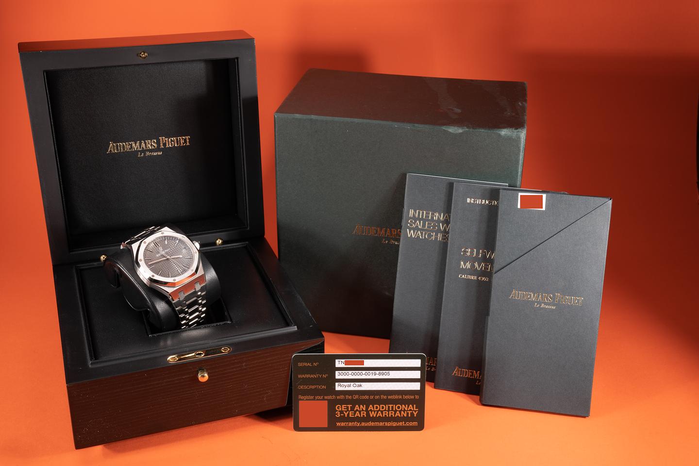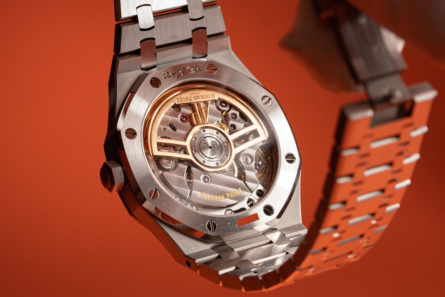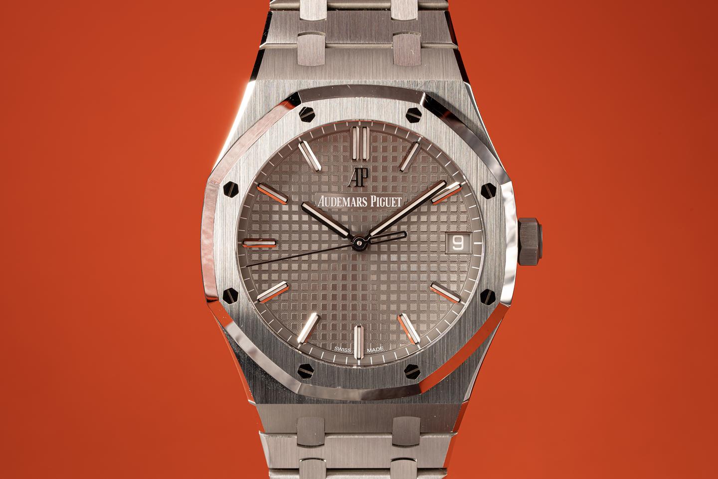 Bracelet: The 21 link stainless Royal Oak bracelet is excellent and shows very light wear overall. One link on the 12 o'clock side shows some light scratching.
