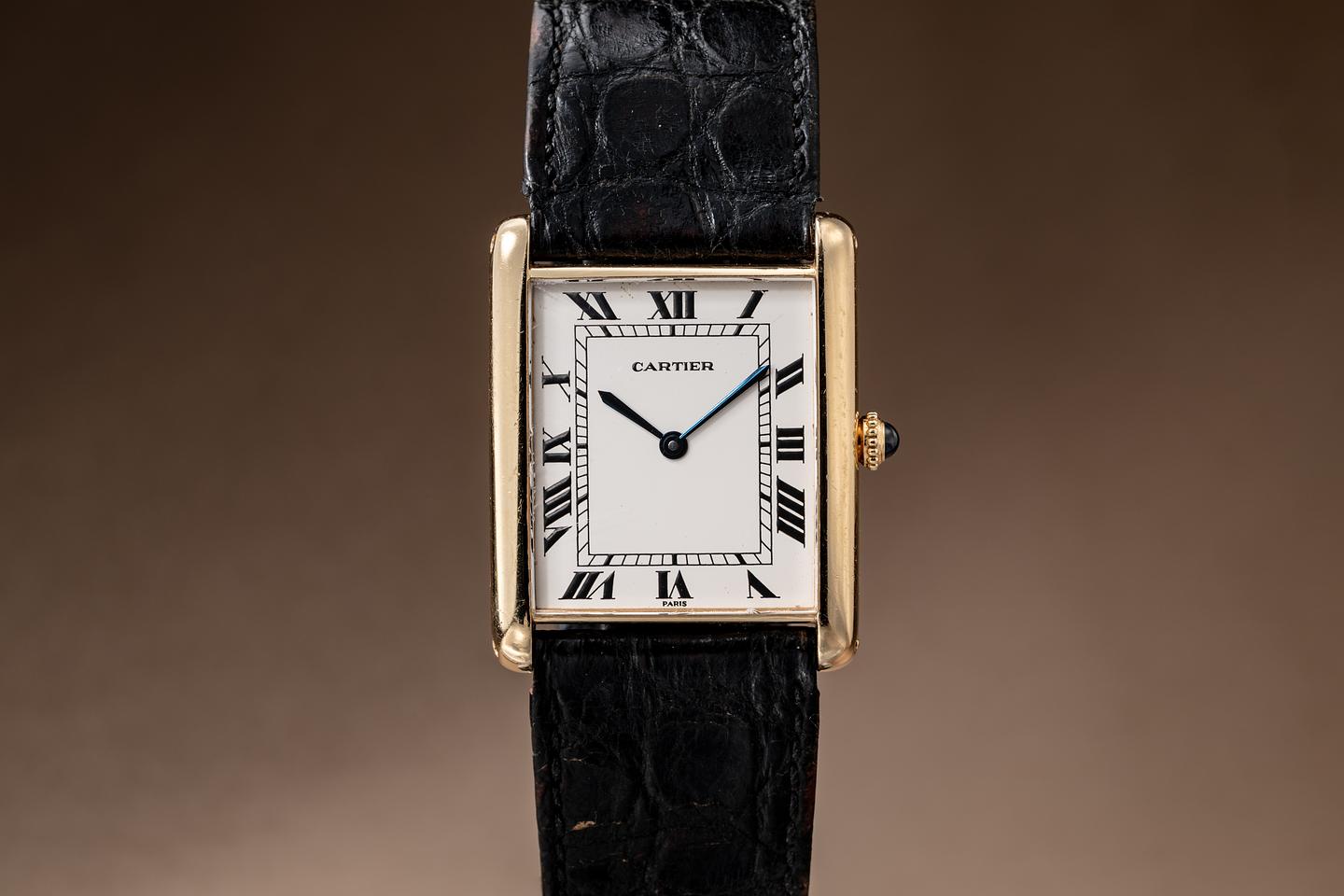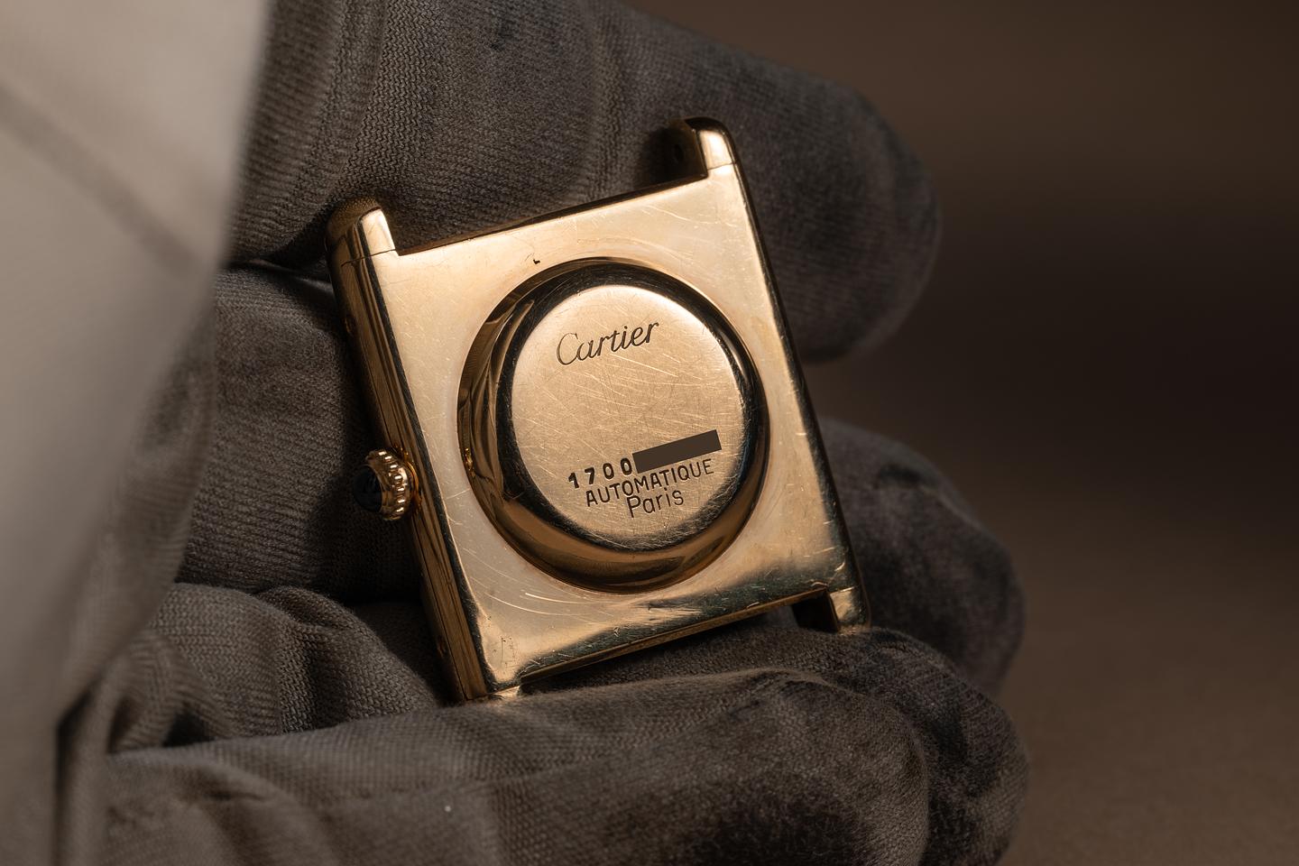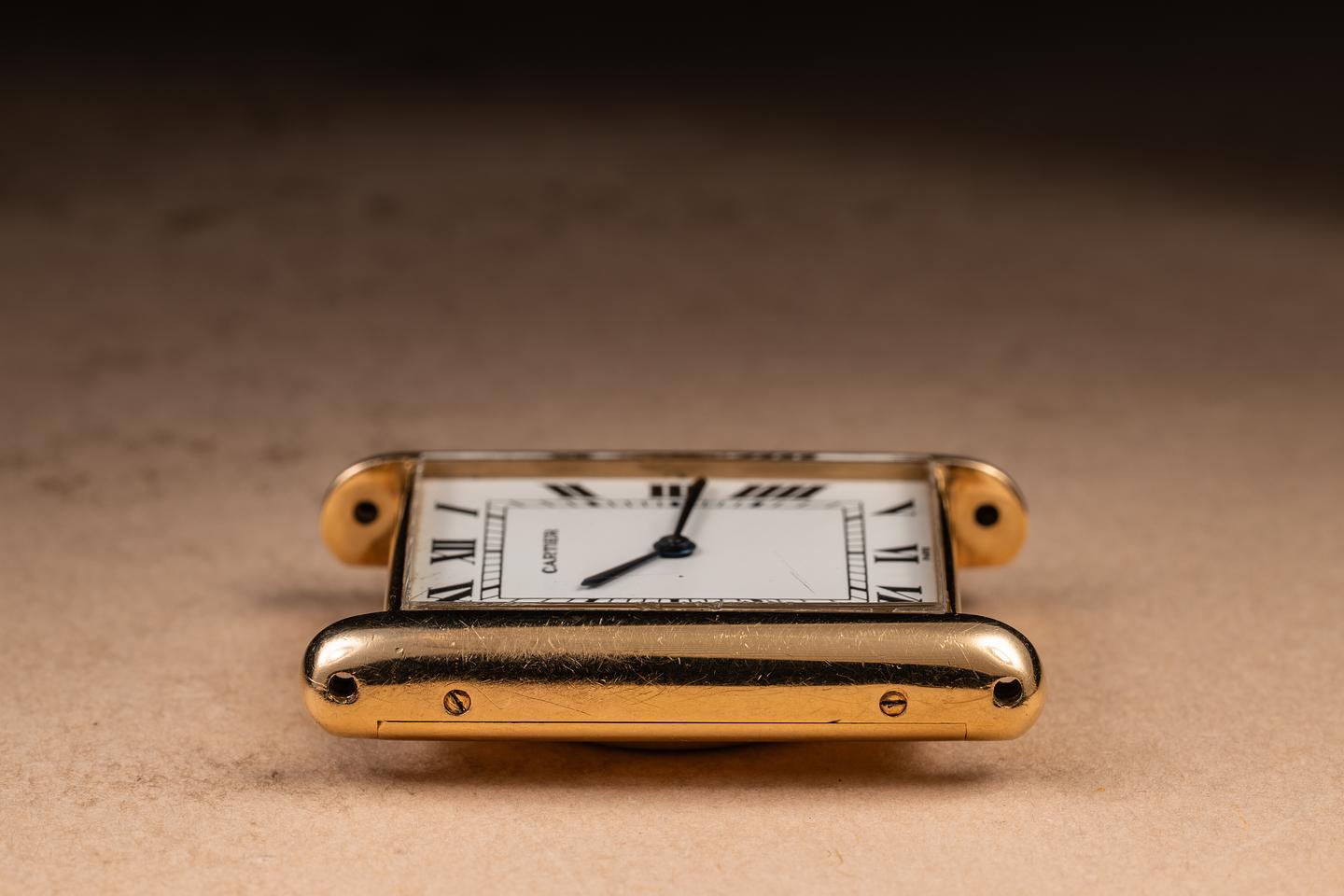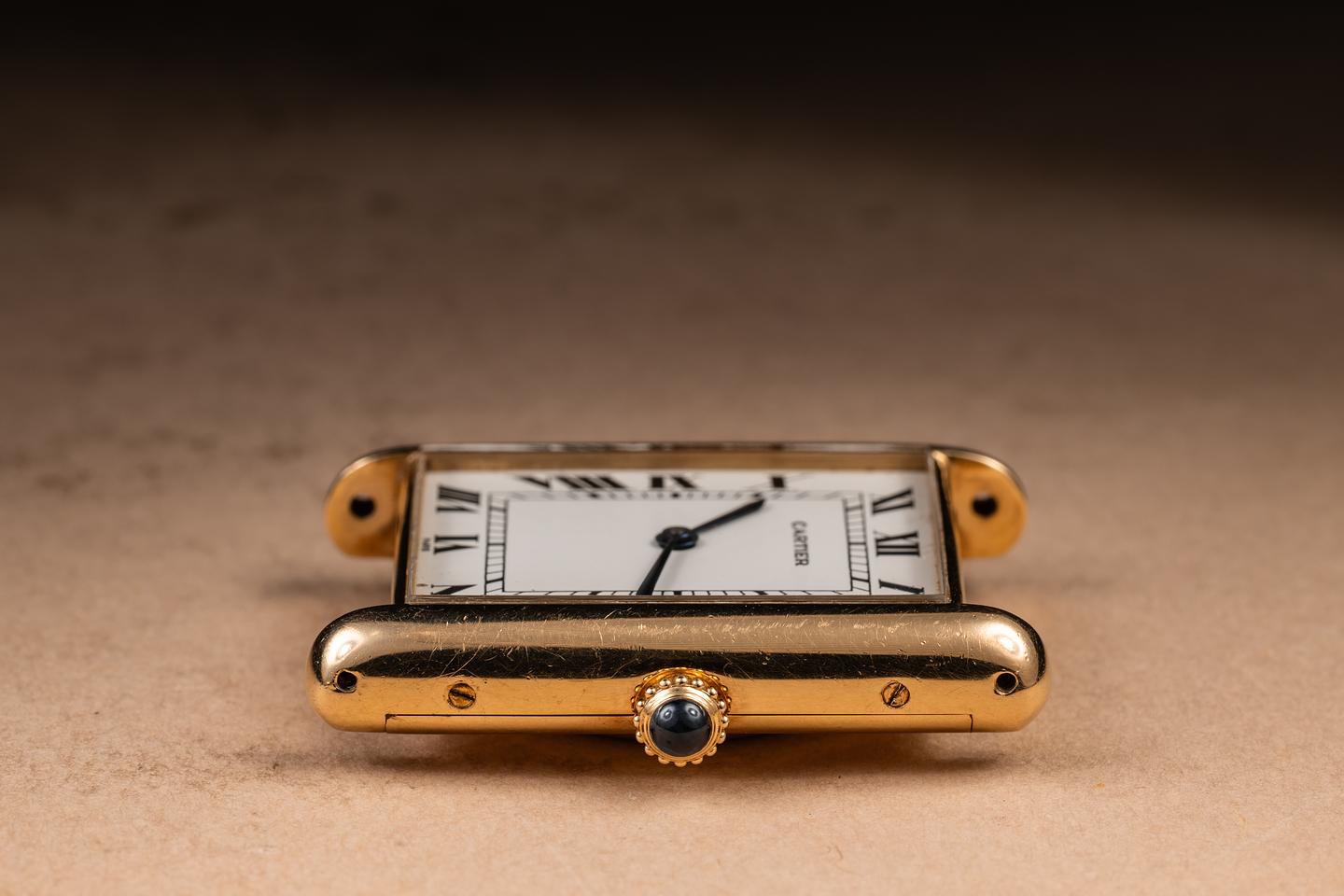 Bracelet: The black leather Cartier strap is very good, only showing natural wear. The 18k yellow gold Cartier buckle is excellent, showing only light wear from use. The leather strap will fit a wrist size up to 6.5 inches.