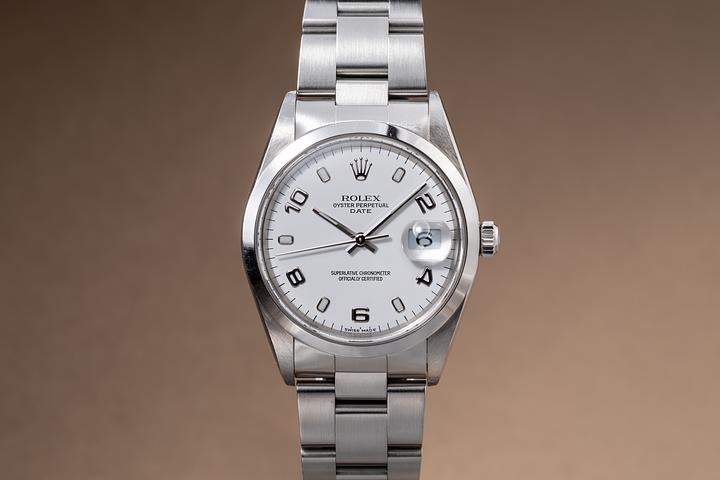 1999 Rolex Date 15200 white Arabic Dial with Papers