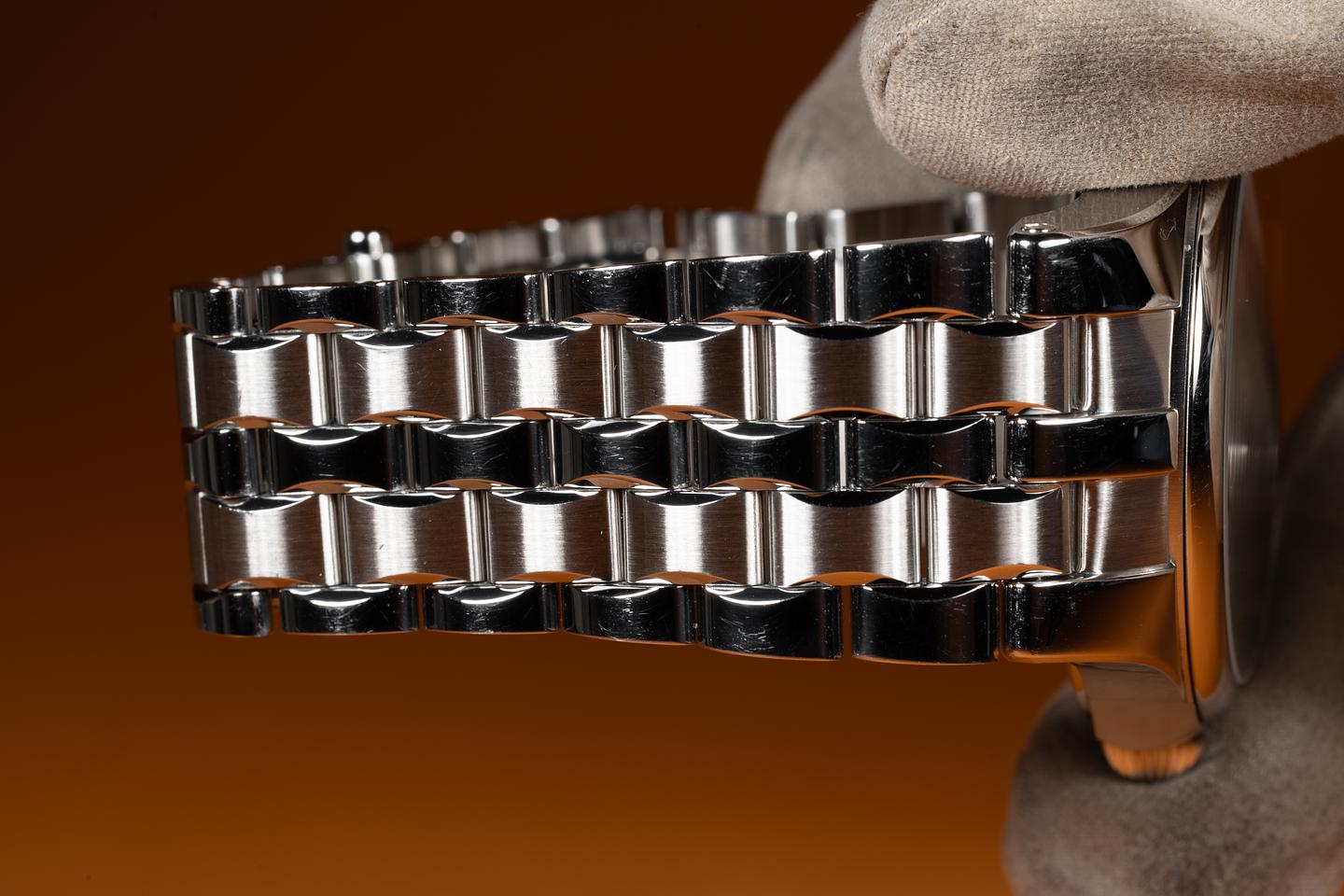 Case: The 40mm case is excellent showing only very light wear. The smooth bezel is also in excellent condition showing only light wear.