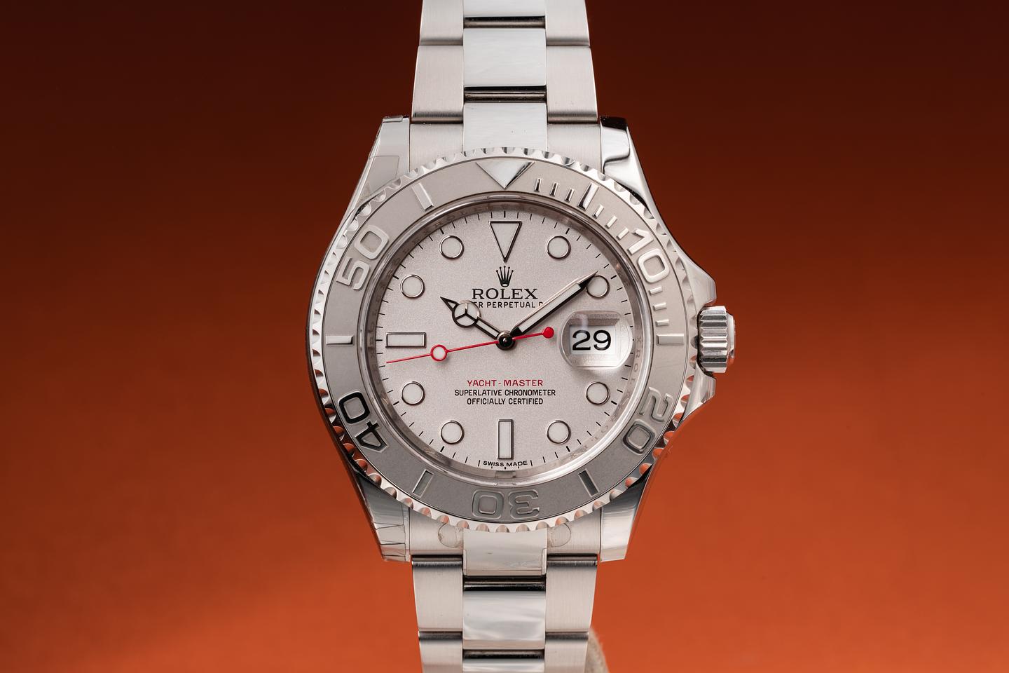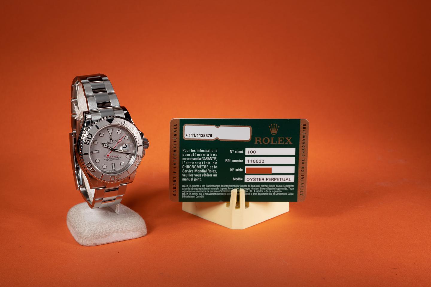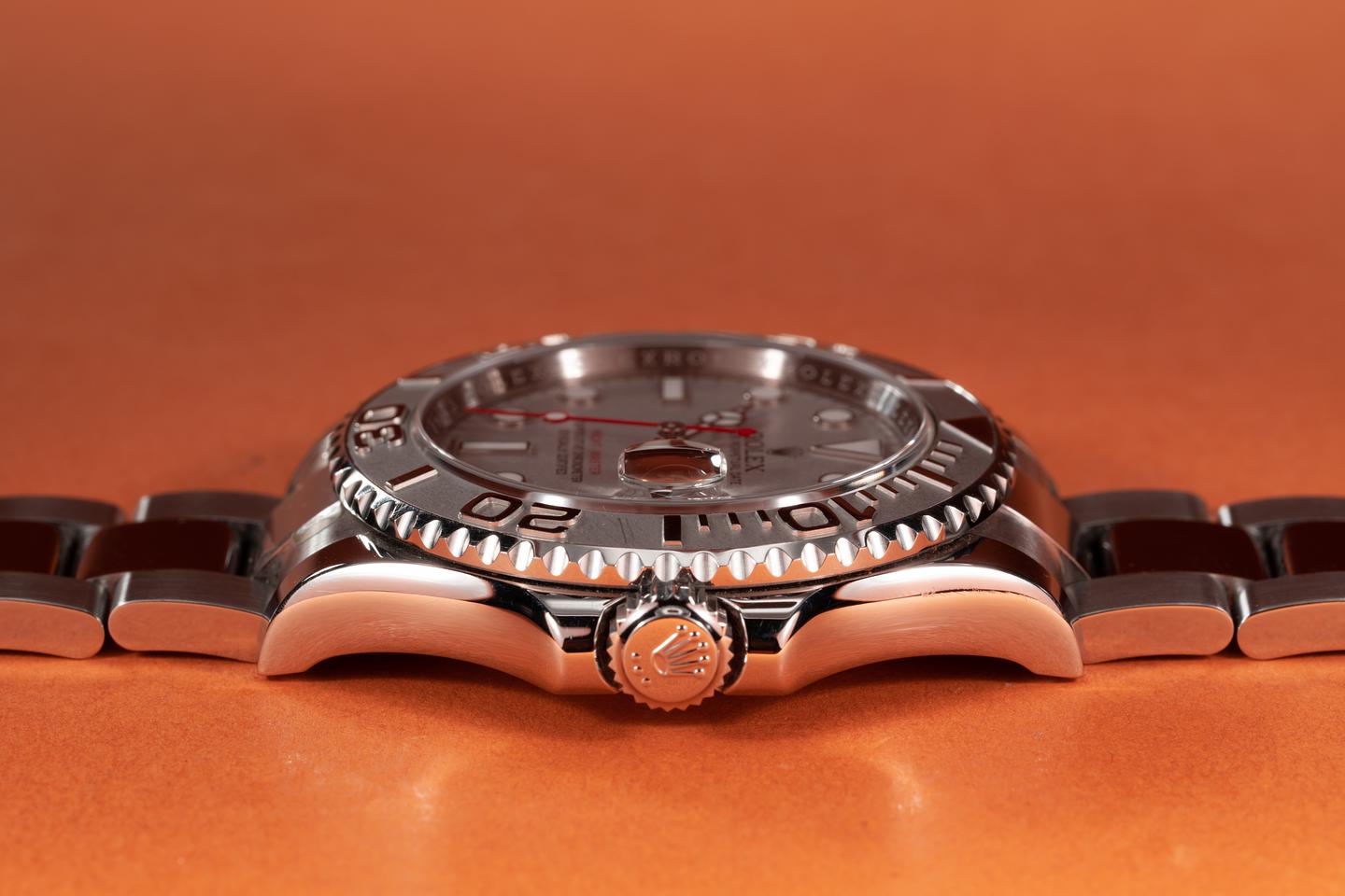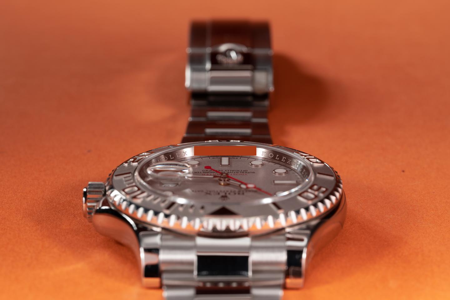 Case: The case is near mint with most of the factory protective e stickers still in place. The platinum bezel insert is also in near mint condition showing no visible wear.