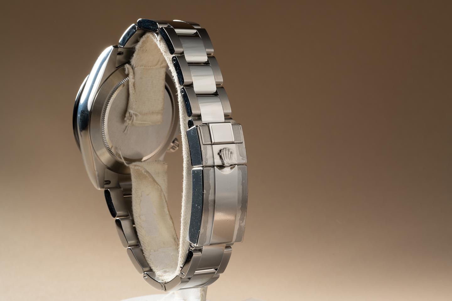 Bracelet: The 10-link Oyster bracelet is mint with the factory protective stickers still in place.