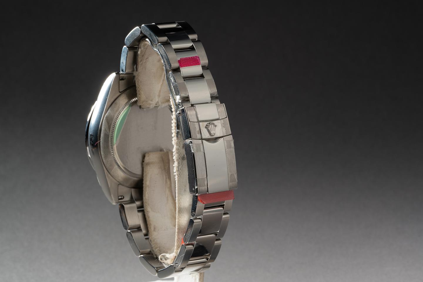 Bracelet: The 12 link Oyster bracelet is mint with the protective factory stickers still in place.